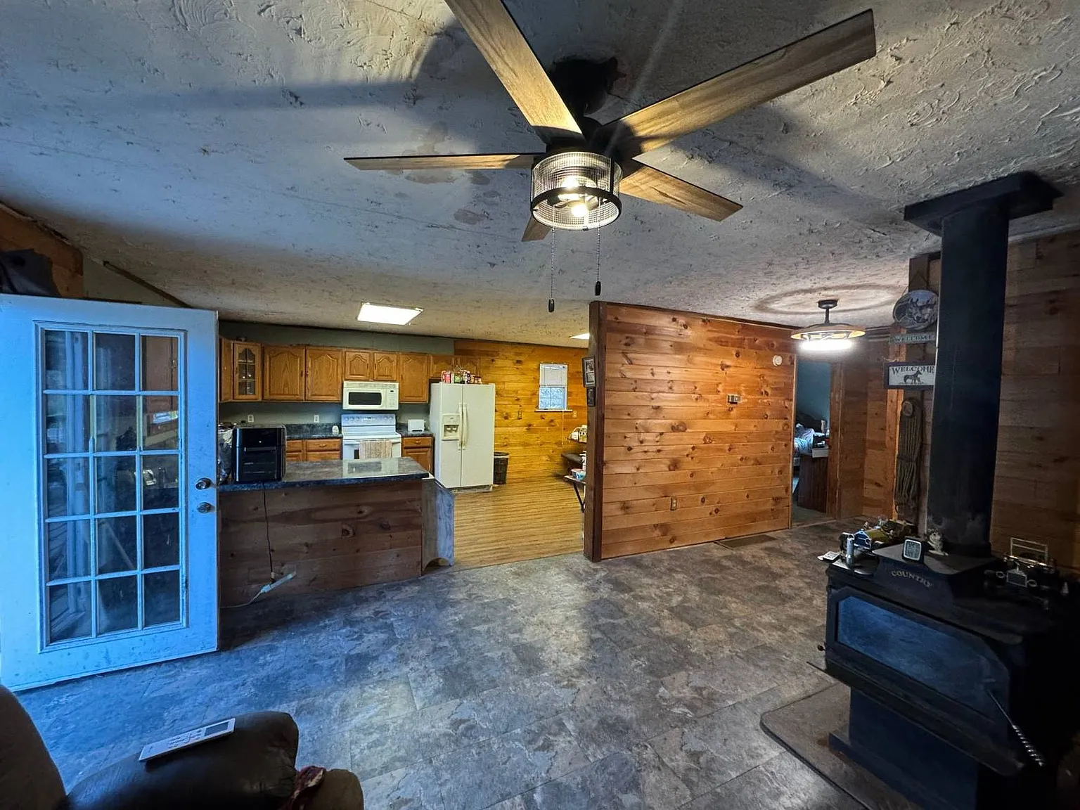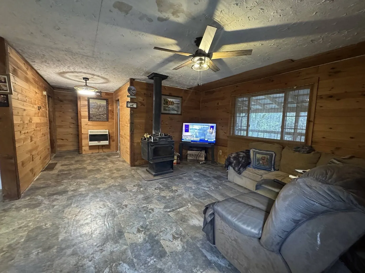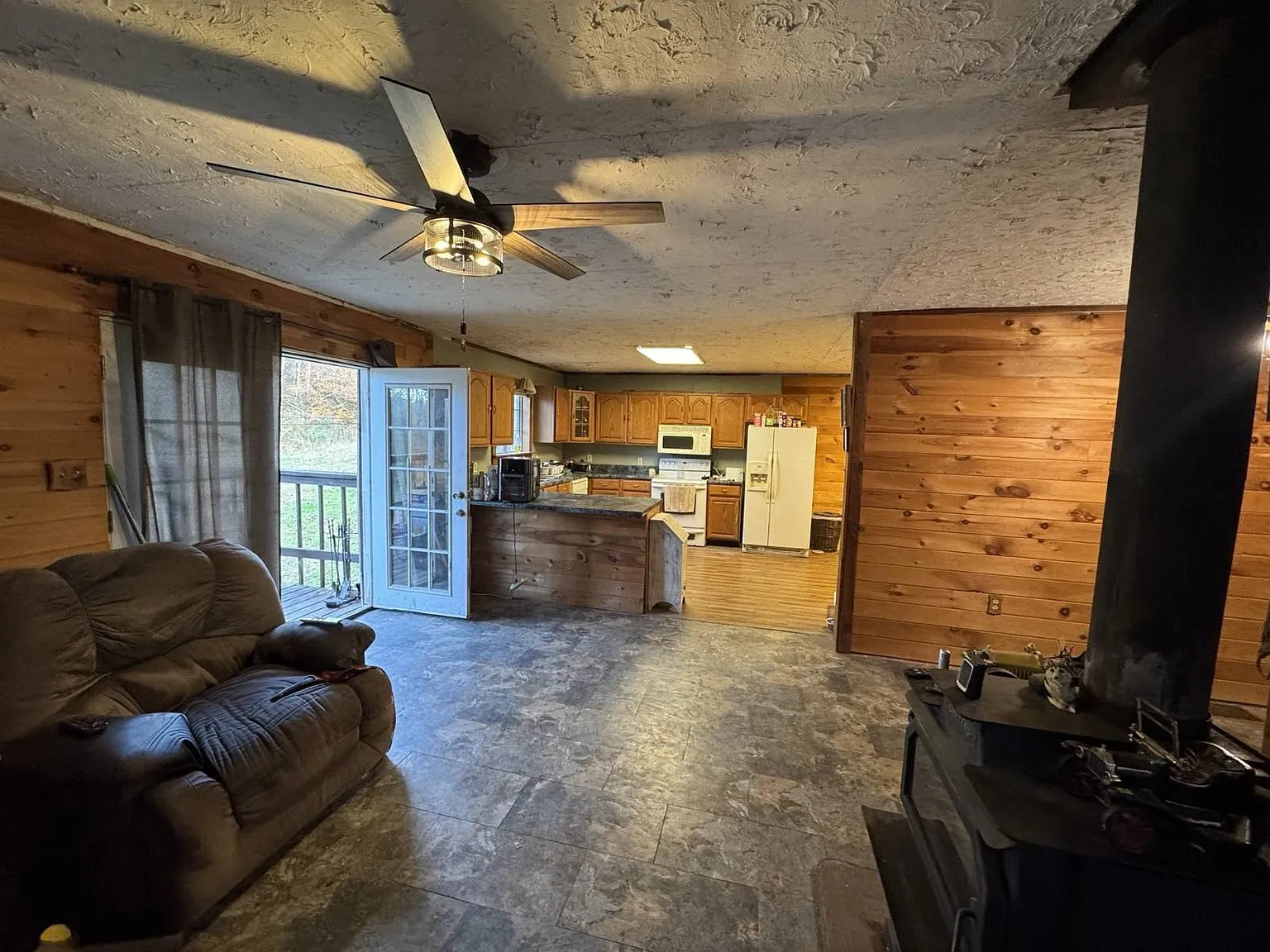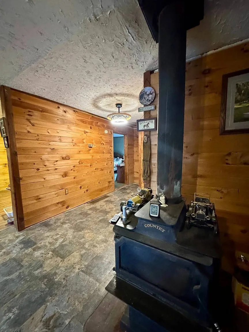 The home itself offers approximately 896 square feet of living space, built in 1991 with a cozy cabin-style feel. Inside, you’ll find an open layout combining the living area, kitchen, and dining space — ideal for simple country living. A wood-burning stove adds warmth and character, while propane heat provides additional comfort during colder West Virginia winters.