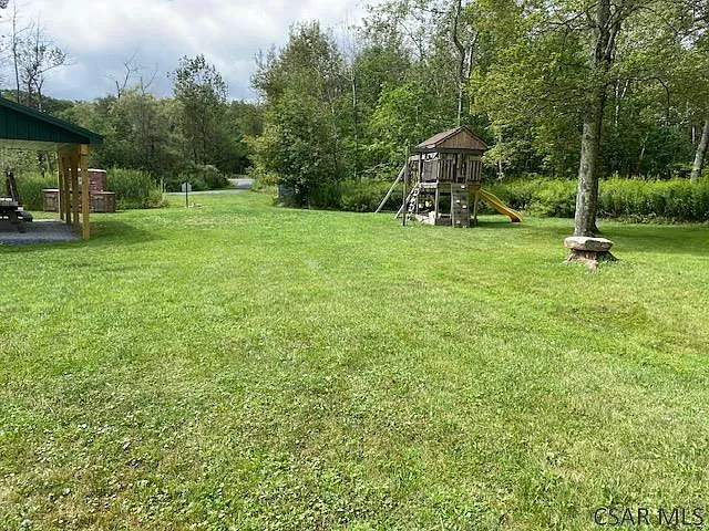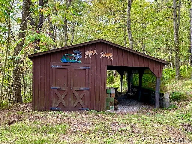 Nestled within the Folmont Community, on 27B-28A Old Farm, in Central City, Pennsylvania, is a rustic 1.5-story cottage set on 10.36 wooded acres, perfect for nature lovers, outdoor enthusiasts and investors, offering the kind of seclusion and natural beauty that makes it ideal as a weekend getaway, a hunting cabin, or a woodland retreat. Developed in 1979, the home carries a cozy character, with a loft bedroom overlooking the vaulted living area and a pair of striking stone fireplaces that anchor the interior with warmth and charm. The layout is simple but inviting, featuring two spacious bedrooms, one bathroom, and an open floor plan that maximizes space. Baseboard electric heat supplements the wood-burning fireplaces, while circular stairs and natural finishes add to the cabin feel. A full walk-out basement provides room for storage or the chance to expand the living space, giving this property plenty of potential for updates and personal touches. The surrounding 10+ acres are the real highlight of the property, with wooded surroundings that open the door to endless outdoor opportunities. From fishing and kayaking to hiking and seasonal hunting, the land and nearby private parks and ponds provide year-round adventure. Additional features include a deck, balcony, utility shed, and the convenience of well water, septic, and electric service already in place. If you are seeking a private escape with space to grow, this property offers both charm and potential. With a bit of TLC and vision, it can become an idyllic private retreat deep into the woods, where comfort meets the call of the outdoors. Don’t miss the opportunity to make it yours – schedule a private showing today!