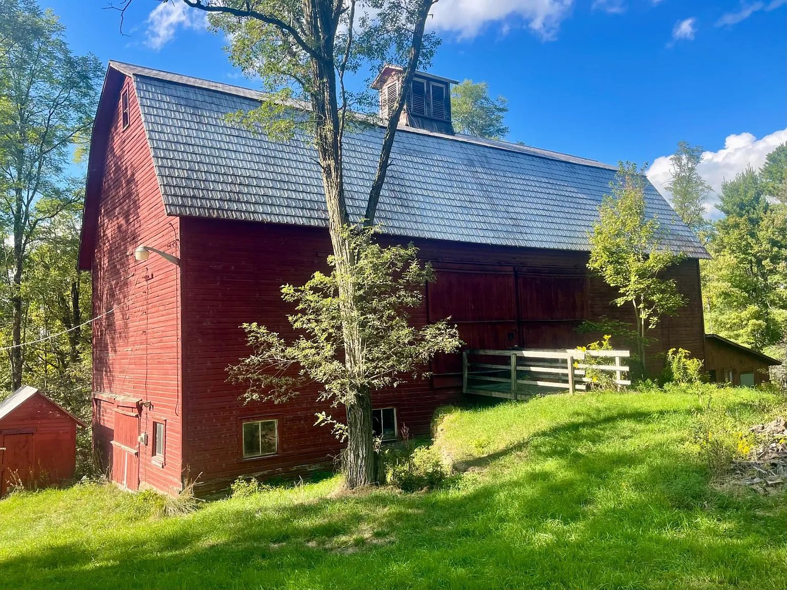 If you are seeking space, tranquility, and nature – discover the property on 418 Backus Road in Burlington Flats, New York, set on 5.51 tranquil acres, standing as a rare blend of history and opportunity. Developed in 1860, this historic home offers 2,400 square feet of living space, three bedrooms, two full bathrooms, and timeless charm with a solid foundation for restoration. The home’s wide-plank hardwood floors, large open kitchen, and wood-burning fireplace create a warm, inviting atmosphere that reflects its 19th-century craftsmanship while leaving room for modern updates. Inside, recent updates include new plumbing, upgraded electrical breakers, a pressure tank, snubber box, drywall, and updated kitchen lighting. The layout features spacious common areas that balance comfort with character, giving you the freedom to finish the renovation in your own style. Outside, the property’s appeal continues with a small pond that adds natural beauty and a peaceful backdrop. A massive 2,300-square-foot two-story barn provides ample room for storage, a workshop, or creative pursuits. The land itself is open yet private, surrounded by trees and with frequent wildlife sightings. Located along a maintained secondary road, the setting offers tranquility without isolation. Nearby, you’ll find Texas School House State Forest for outdoor recreation, as well as the towns of Oneonta, Norwich, and Utica for shopping and amenities. Cooperstown’s historic and cultural attractions lie within easy reach. With its solid foundation, scenic location, and historic charm, this property is ideal for anyone eager to restore a piece of American heritage while embracing the peace of country living. Don’t miss the opportunity to make this unique property yours – schedule a private showing today!