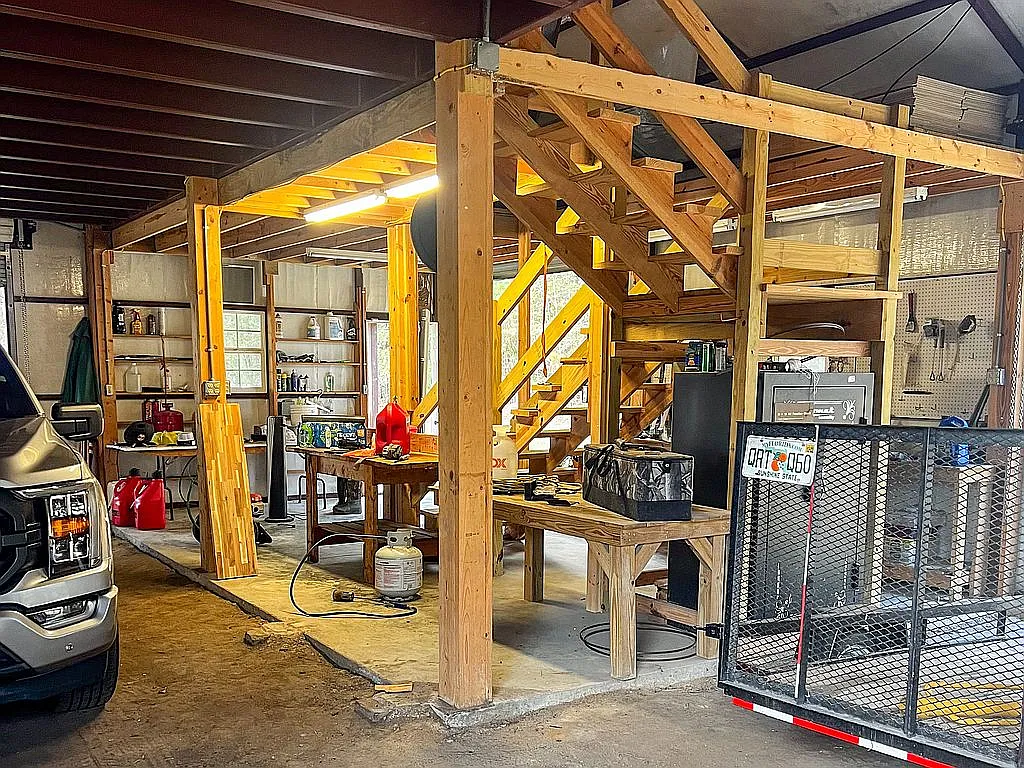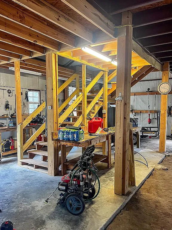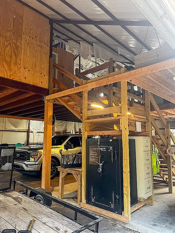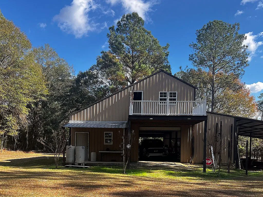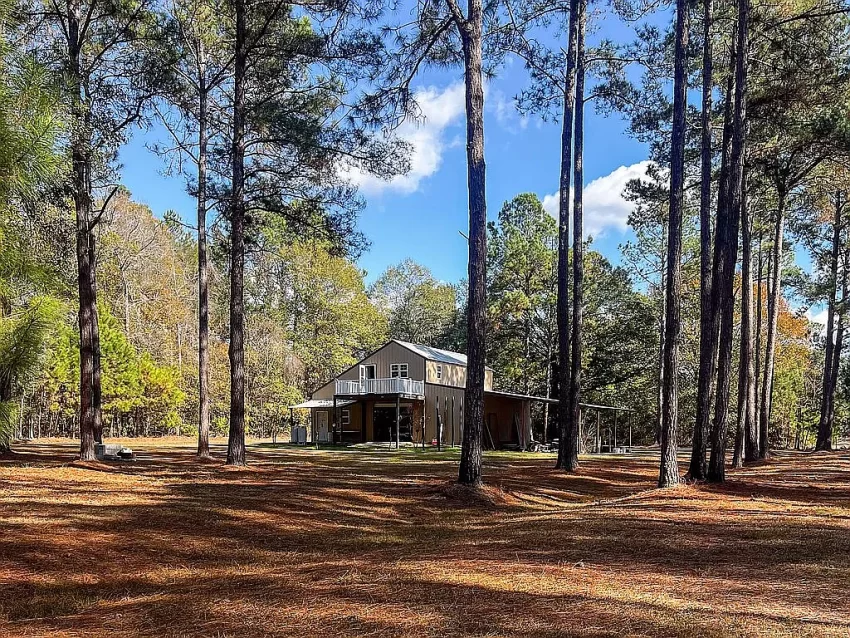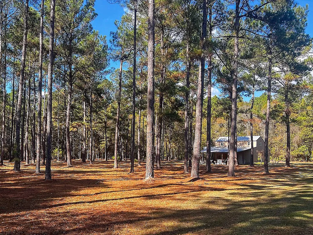 The property features mostly wooded acreage with mature pine trees, providing excellent seclusion and abundant wildlife—perfect for hunting, camping, or enjoying nature. A standout feature is the 40′ x 36′ two-story metal building already on site. The first floor is designed for workshop use or vehicle and equipment storage, while the second level includes approximately 250 square feet of finished living space, completed in 2024, with additional room for storage or future expansion.