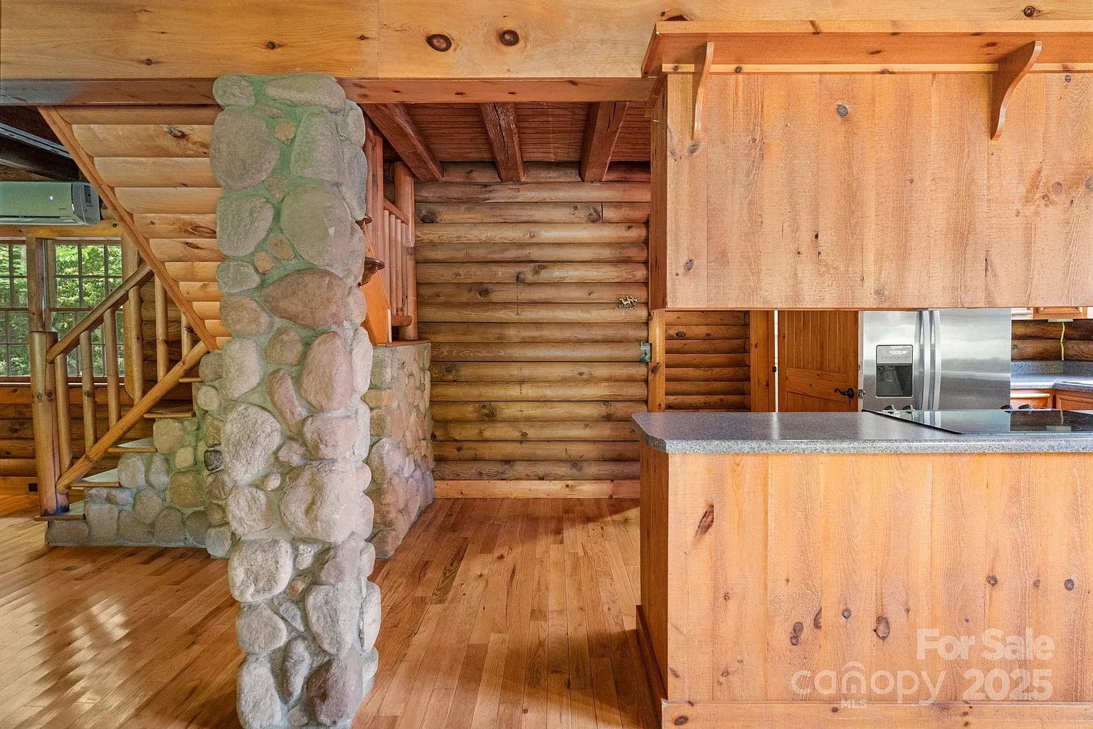 This log cabin-style home sits on over 24 acres of private land, offering a perfect blend of wooded areas, open meadows, and natural water features. It’s a property designed for those who value space and serenity.