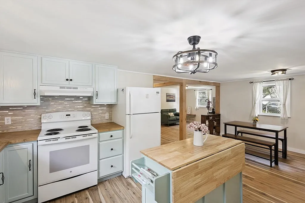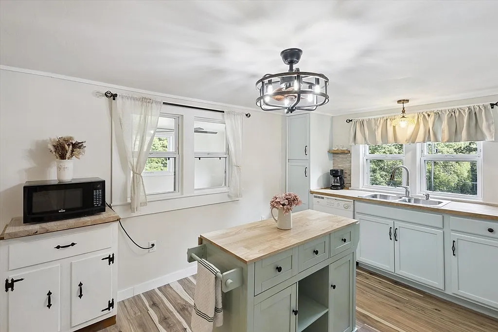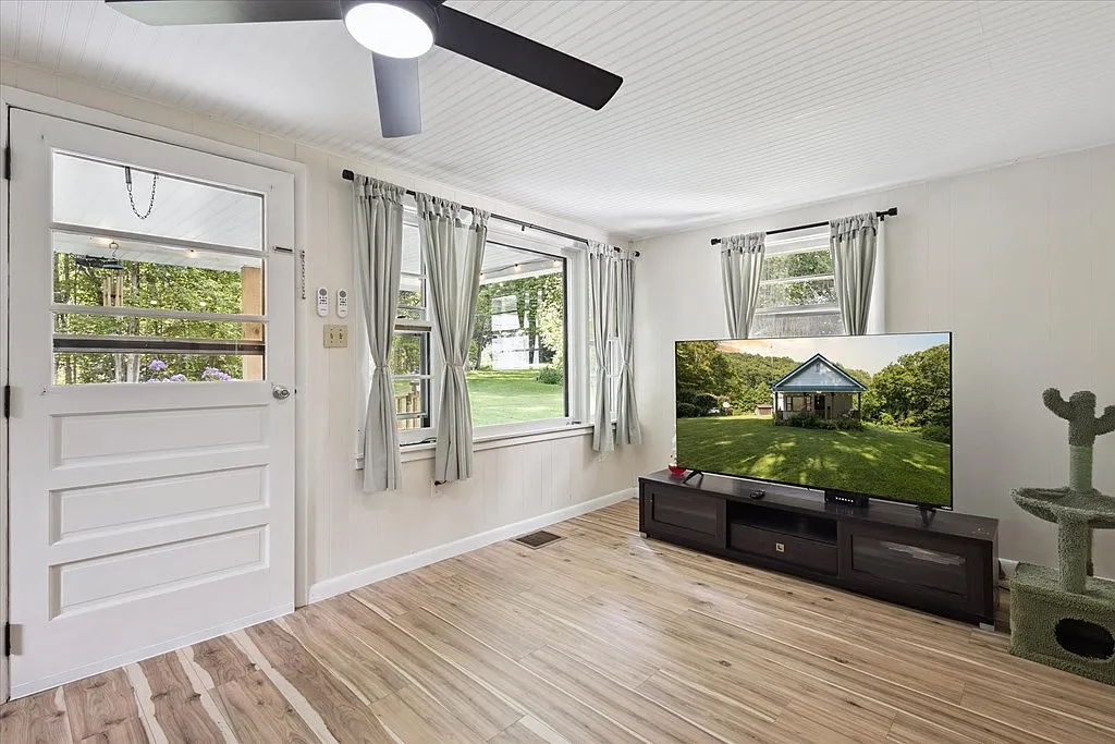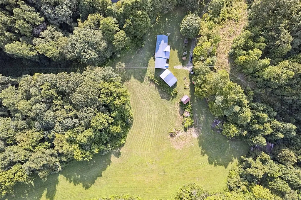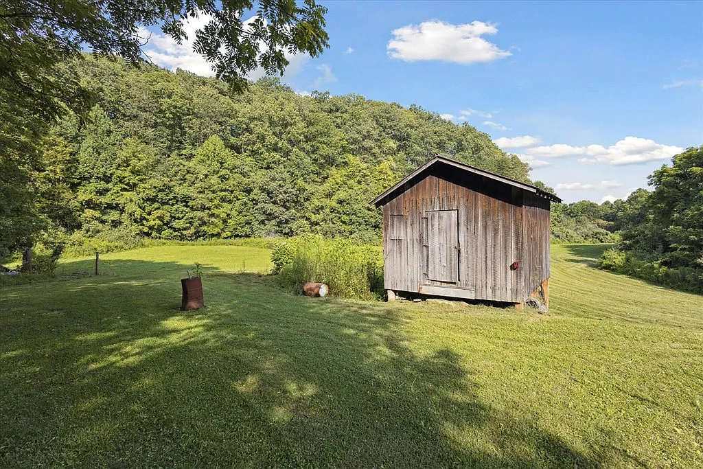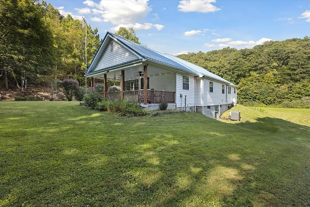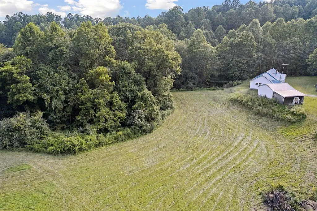 Nestled on 24.15 serene acres surrounded by breathtaking mountain scenery, on 210 Sweetwood Lane in Cleveland, Virginia, this remodeled ranch is perfect for anyone seeking privacy, tranquility, self-sufficiency and a quiet getaway. Developed in 1947, the home offers 1,413 square feet of living space welcoming you through a practical mudroom. Inside you’ll find three spacious bedrooms, one full bathroom, fresh paint, new LVP flooring, and a remodeled kitchen featuring butcher block countertops, a modern backsplash, and a spacious island for convenience. The cozy den includes a wood stove and built-in shelving, creating a warm space to unwind during the colder months. Down the hall are three comfortable bedrooms, with one currently housing the laundry setup for convenience. Step out to the covered front porch where outdoor ceiling fans keep the air moving as you enjoy the sounds of nature and wide-open mountain views. Outside, the property offers a mix of cleared and wooded land with endless potential. Two natural springs serve the home and feed a small fishing pond below the ridge. A large field is ready for hay or crops, while the wooded sections invite exploration and wildlife watching. Additional outbuildings, including a barn and sheds, provide ample storage for tools, equipment, or livestock. If you are seeking a move-in ready home with privacy, acreage, and the spirit of country living – this peaceful Russell County retreat delivers. Don’t miss the opportunity to make it yours – schedule your private showing today!