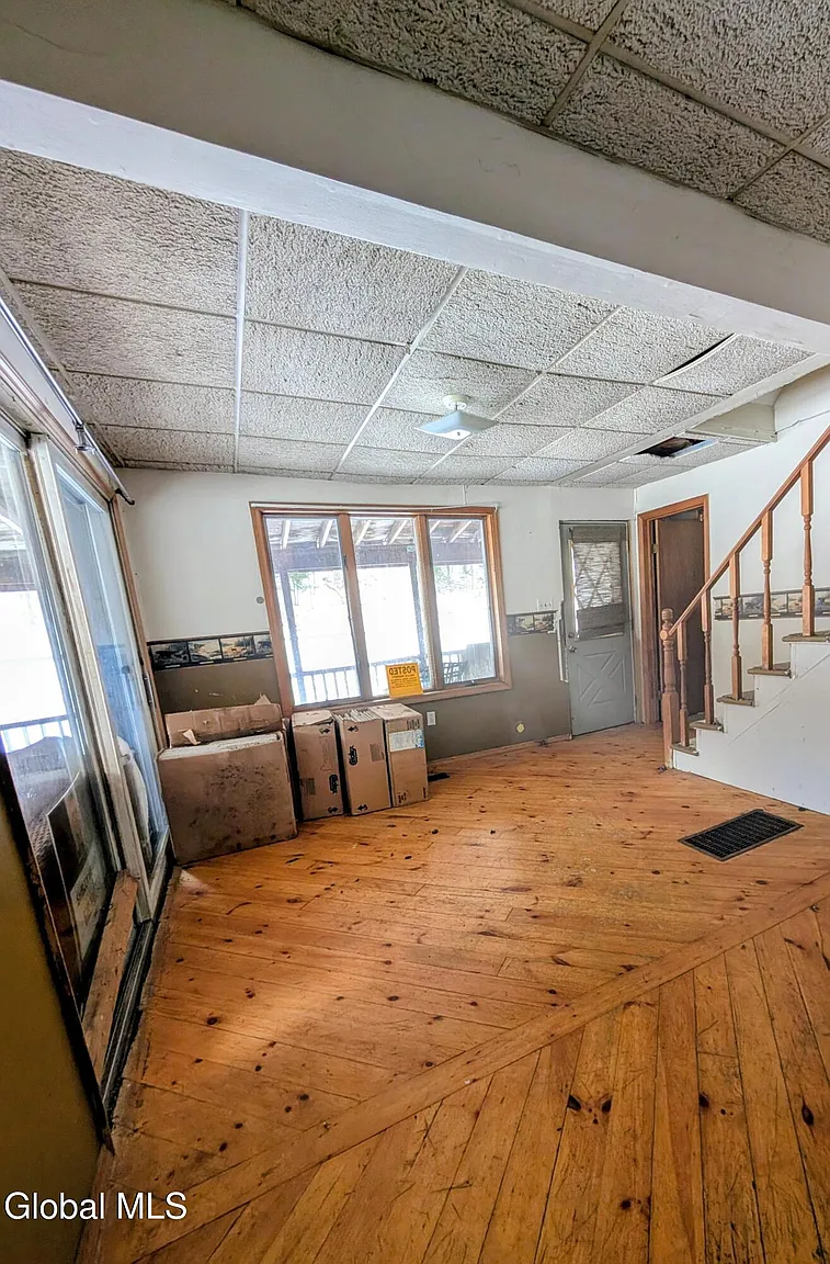 Inside, the home features solid wood and hardwood floors, giving a glimpse of its original character and craftsmanship.