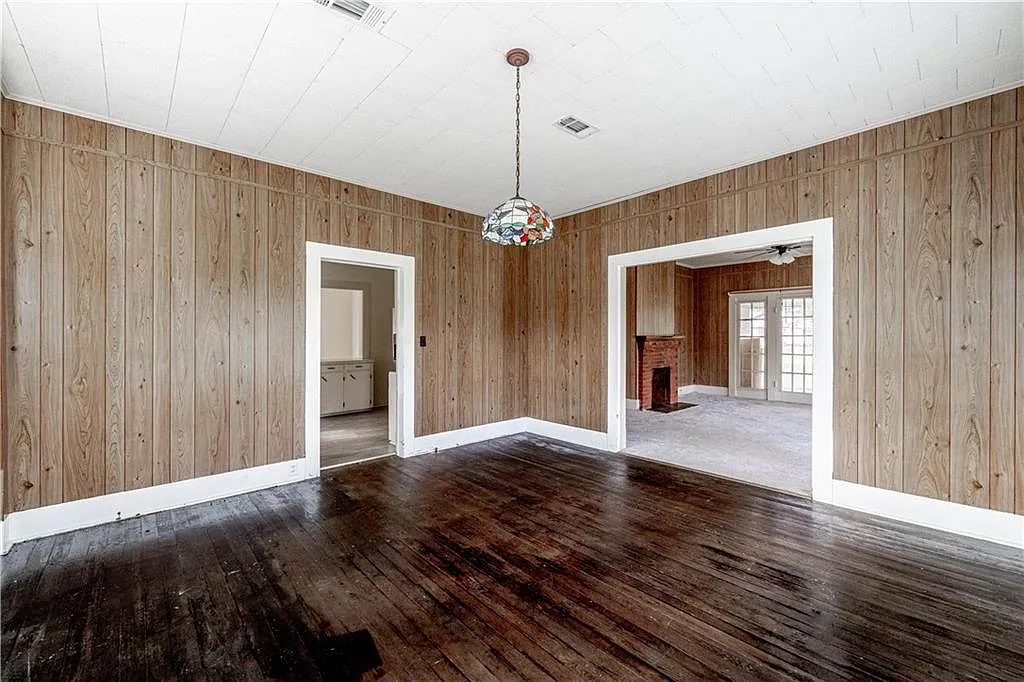 One of the most unique features of the home is the solid cypress shiplap hidden behind the interior paneling, which could be restored to showcase the home’s historic craftsmanship.