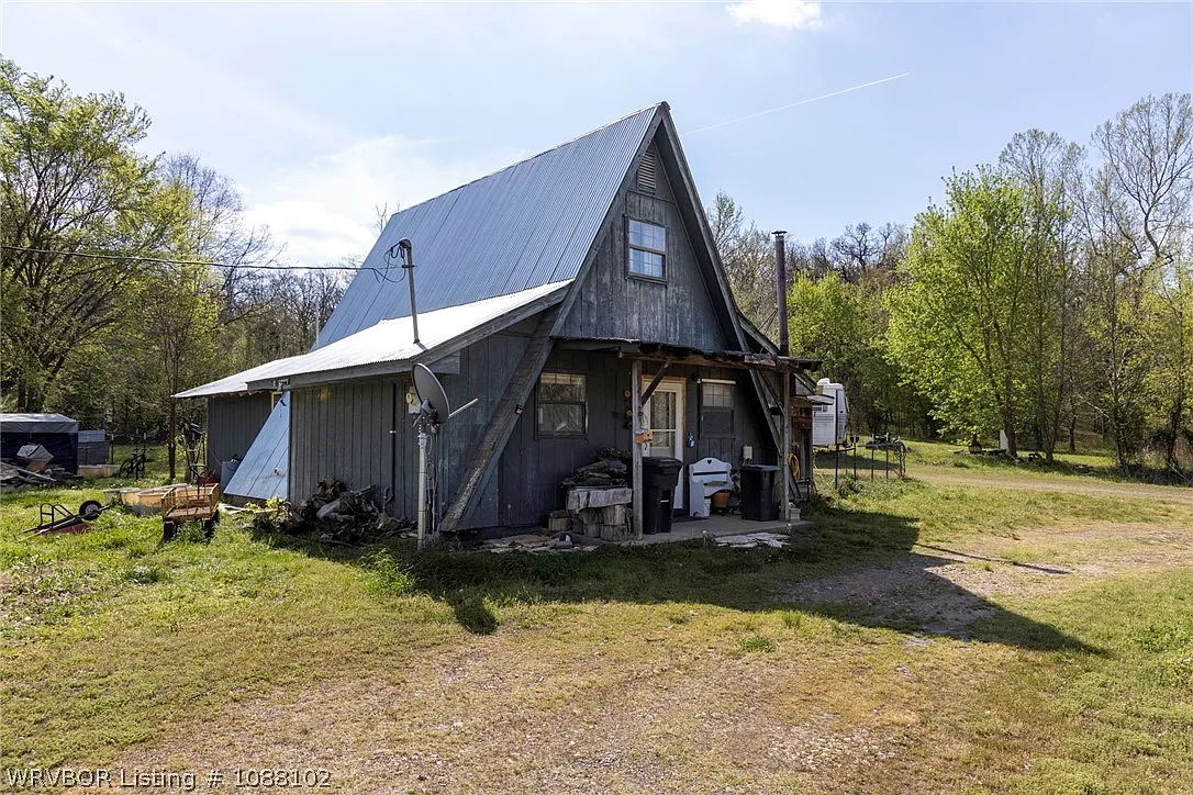 This property includes an A-frame style cabin along with over 30 acres of mixed land, making it suitable for both living and expansion.
