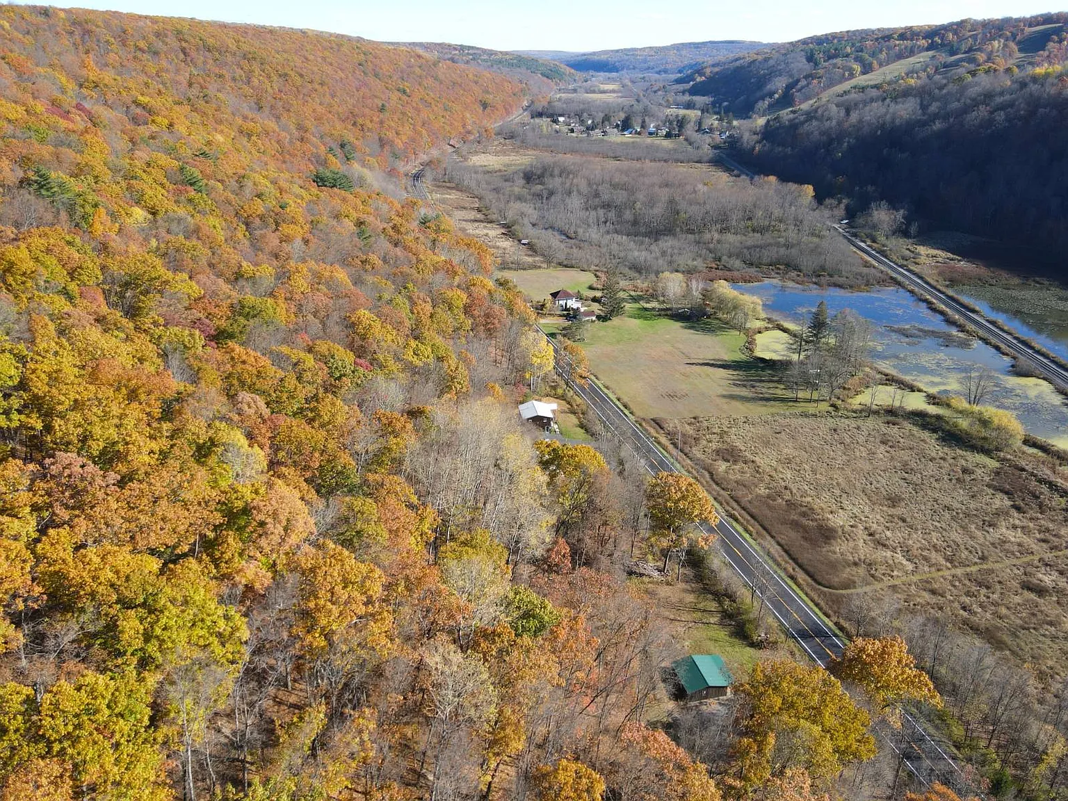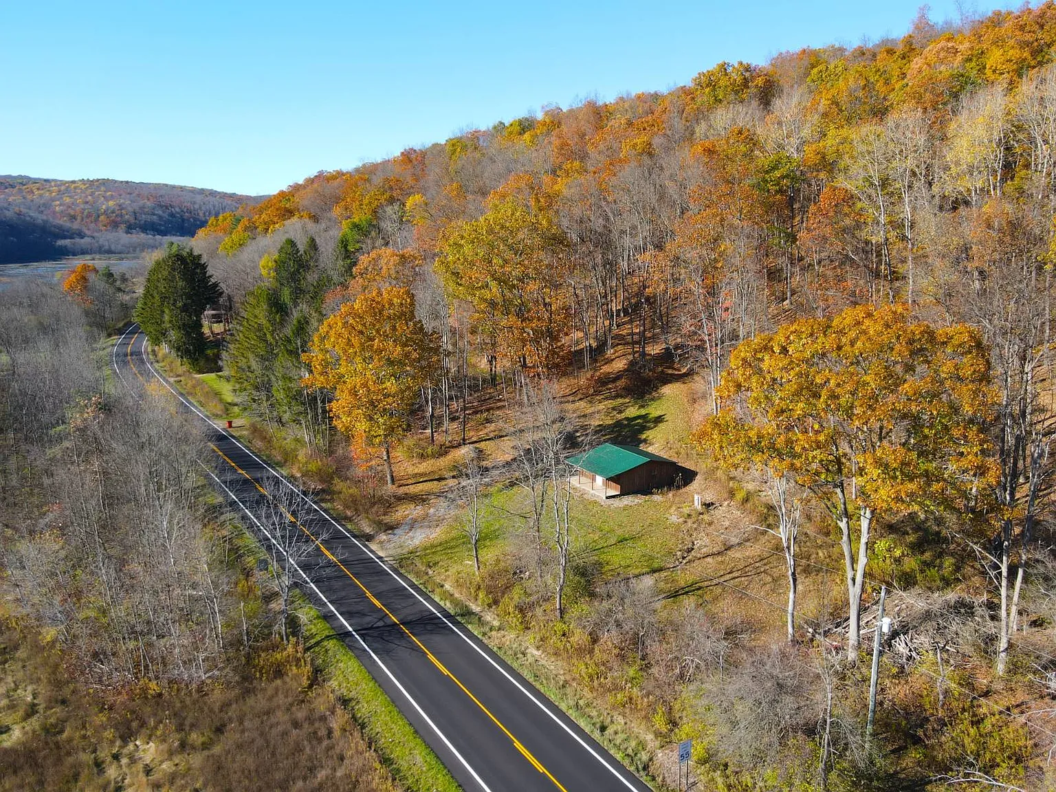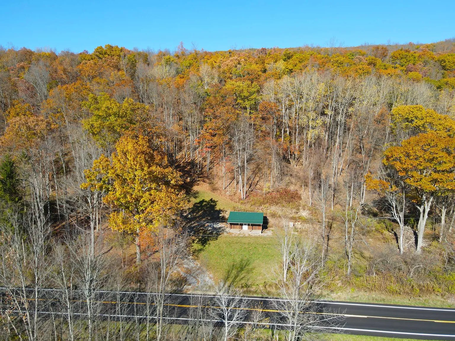 If you are seeking seclusion, space, and endless potential for development and outdoor recreation, the property on 11230 State Route in Swain, New York, delivers all of that and much more. Set on 33.32 acres, the land offers a peaceful retreat surrounded by mixed hardwoods, elevated terrain, and wide views overlooking wetlands and distant hillsides. The land provides remarkable privacy and natural beauty, making it ideal for a future full-time residence or a recreational getaway. The heart of the property is graced with a 24’x24′ cabin with an 8’x24′ covered porch, positioned perfectly towards tranquil morning views overlooking the wetlands below. The cabin is almost complete, with electric service, two bedrooms framed in, and kitchen cabinets on site, ready for placement. Finishing the drywall, adding a well, and installing a septic system would bring the structure to full residential use, or it can remain a comfortable base for hiking, hunting, and weekend escapes. The surrounding acreage consists of mixed hardwoods, including a healthy stand of oak producing abundant mast that attracts local wildlife, such as deer and turkey. With 230 feet of frontage, a private driveway, and direct proximity to both state and municipal land, outdoor adventure truly starts right at the doorstep. Within easy reach of Nunda, Hornell, Canaseraga, and minutes from Swain Ski Resort, this scenic parcel delivers a rare blend of potential, seclusion, and year-round activities. If you’re seeking a nature escape, a hunting basecamp, or a land for future development, this property offers a beautiful place to bring your vision.