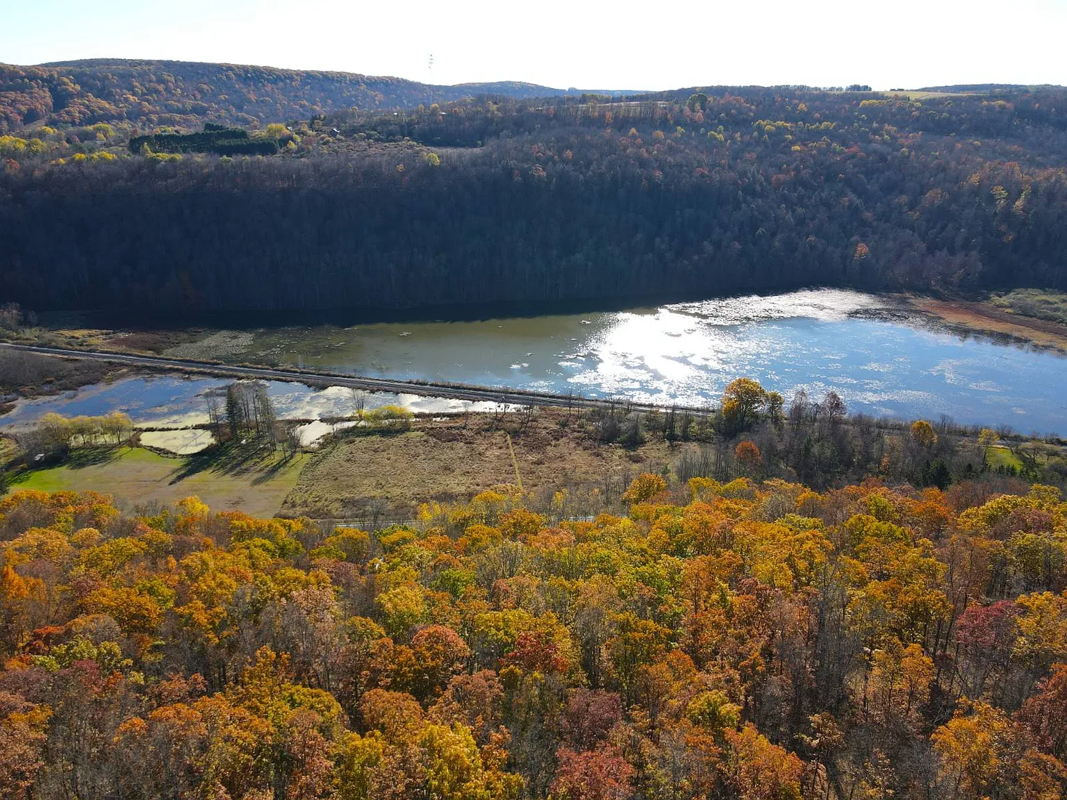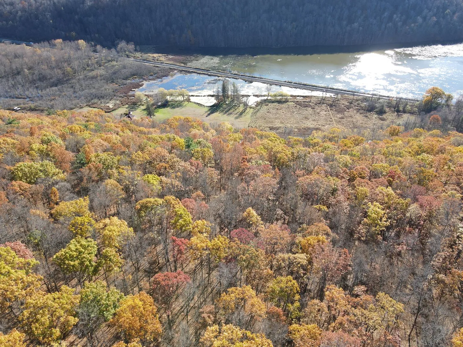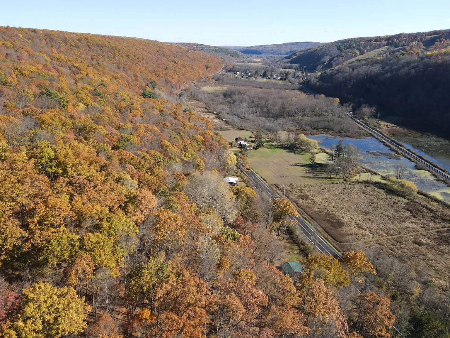 If you are seeking seclusion, space, and endless potential for development and outdoor recreation, the property on 11230 State Route in Swain, New York, delivers all of that and much more. Set on 33.32 acres, the land offers a peaceful retreat surrounded by mixed hardwoods, elevated terrain, and wide views overlooking wetlands and distant hillsides. The land provides remarkable privacy and natural beauty, making it ideal for a future full-time residence or a recreational getaway. The heart of the property is graced with a 24’x24′ cabin with an 8’x24′ covered porch, positioned perfectly towards tranquil morning views overlooking the wetlands below. The cabin is almost complete, with electric service, two bedrooms framed in, and kitchen cabinets on site, ready for placement. Finishing the drywall, adding a well, and installing a septic system would bring the structure to full residential use, or it can remain a comfortable base for hiking, hunting, and weekend escapes. The surrounding acreage consists of mixed hardwoods, including a healthy stand of oak producing abundant mast that attracts local wildlife, such as deer and turkey. With 230 feet of frontage, a private driveway, and direct proximity to both state and municipal land, outdoor adventure truly starts right at the doorstep. Within easy reach of Nunda, Hornell, Canaseraga, and minutes from Swain Ski Resort, this scenic parcel delivers a rare blend of potential, seclusion, and year-round activities. If you’re seeking a nature escape, a hunting basecamp, or a land for future development, this property offers a beautiful place to bring your vision.