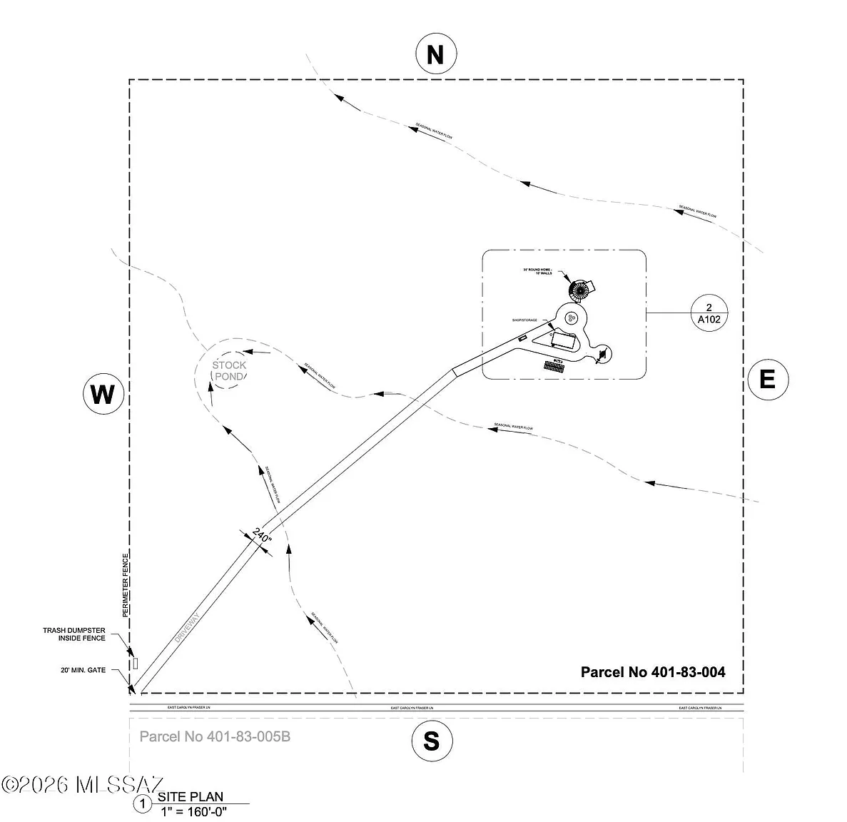 A seasonal stock pond attracts wildlife, adding life and movement to the landscape.