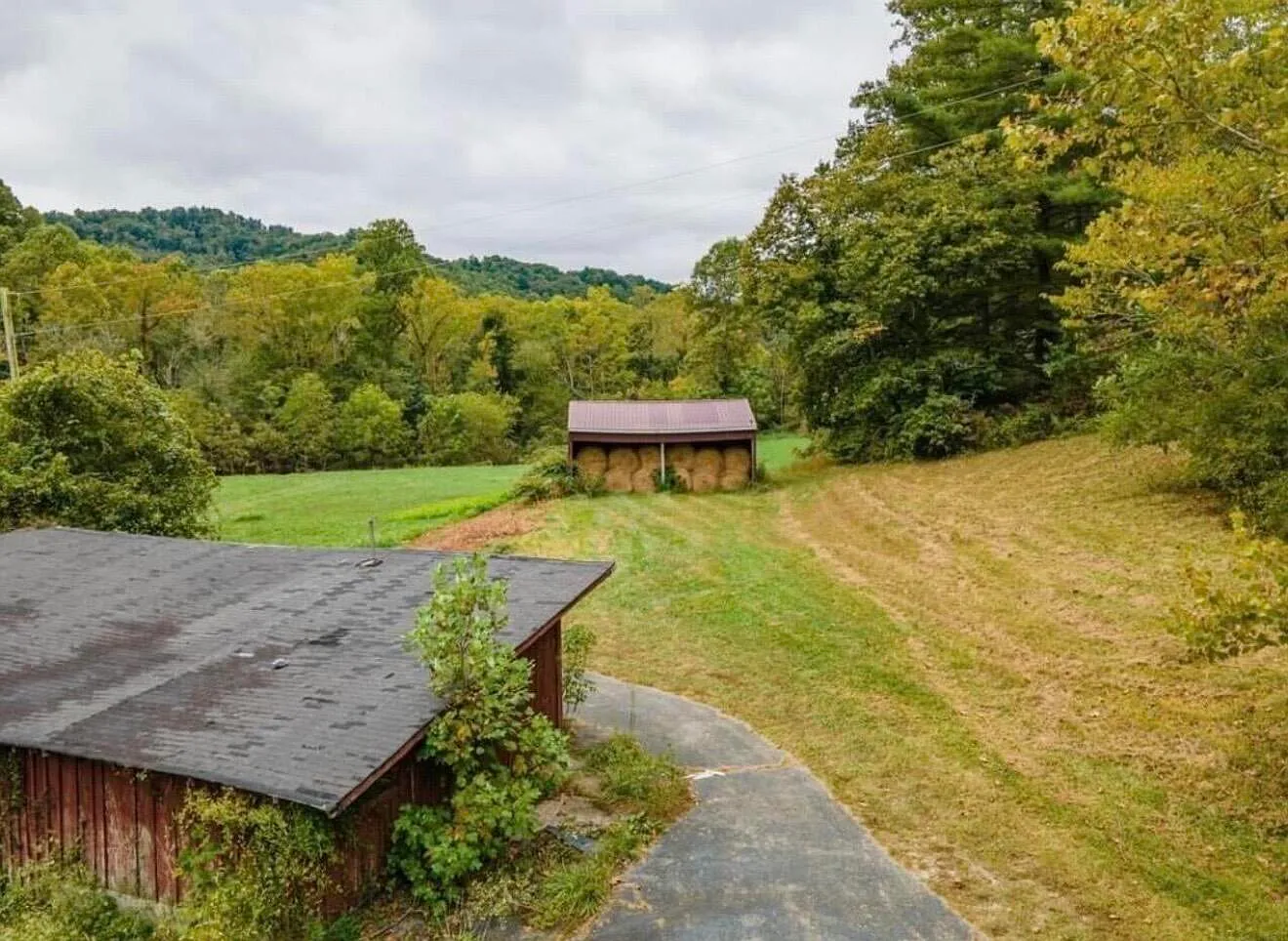 Existing structures such as barns and sheds add immediate functionality without the need for new construction.