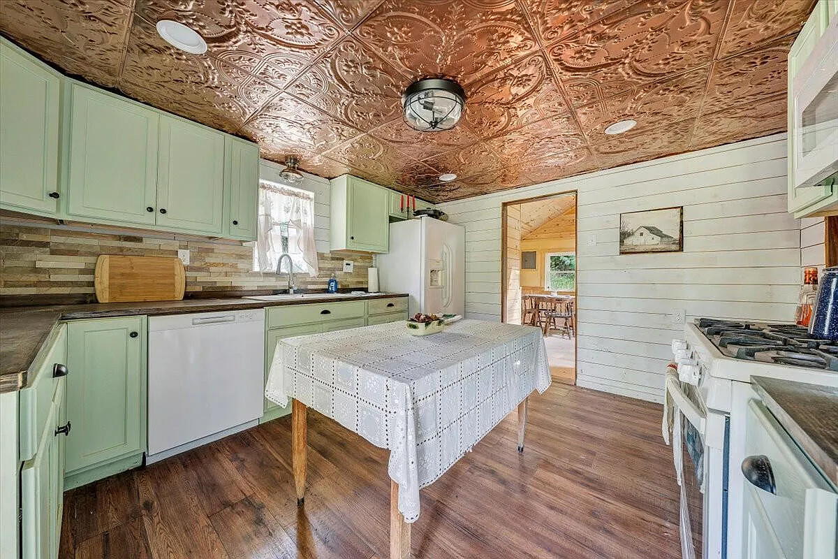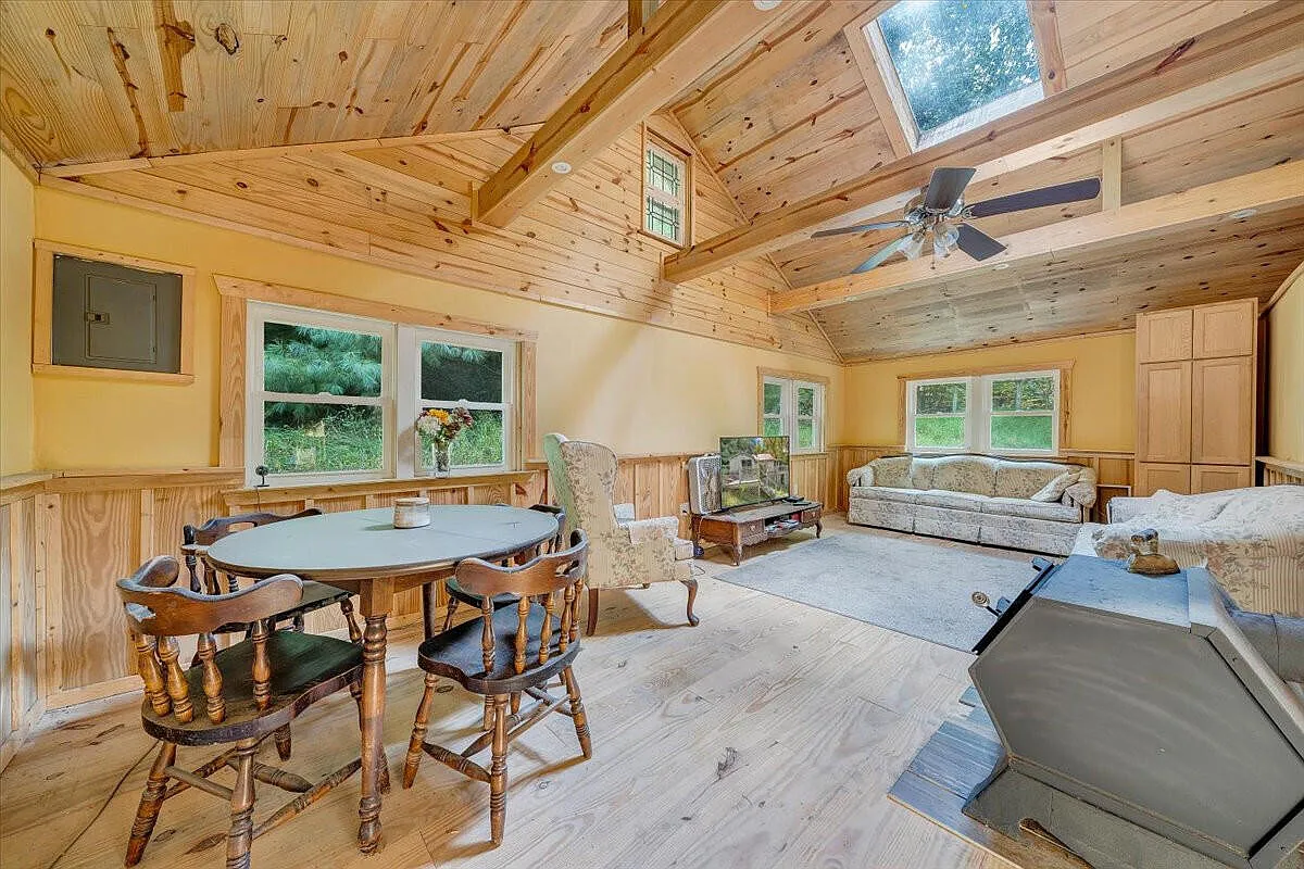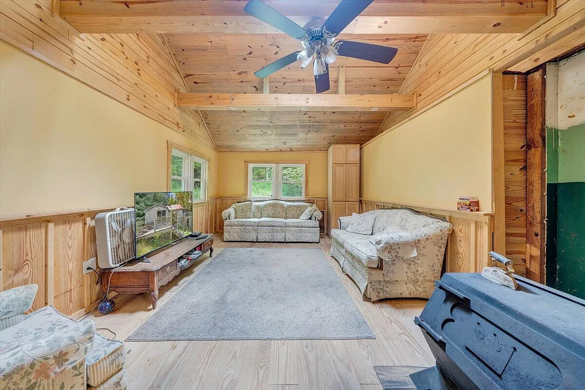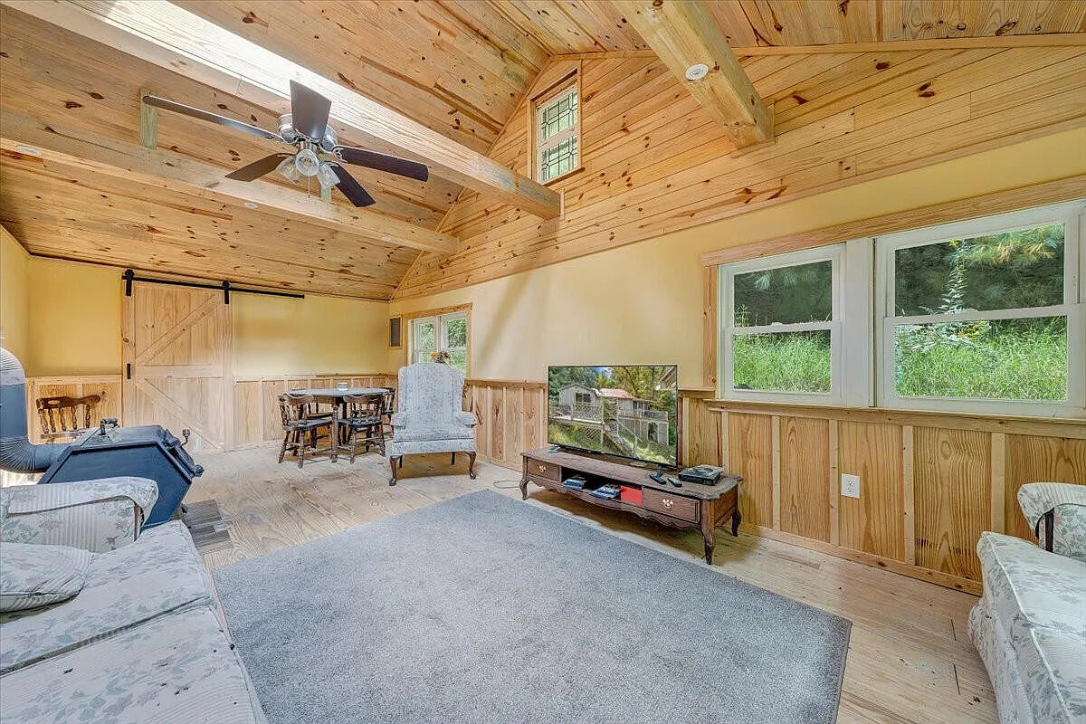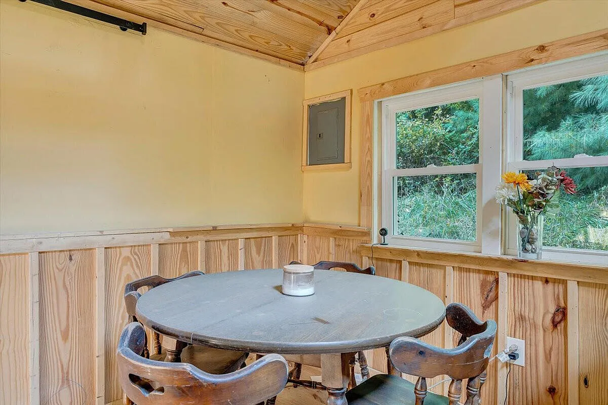 Set on 2.27 scenic acres in the charming town of Hot Springs, Virginia, on 110 Mountain View Road, this 1940 home offers comfort, privacy, and room to grow. The house carries timeless character and modern updates, with 1,046 square feet of living space designed for simplicity. Inside, the layout flows naturally from the living room to the kitchen and dining area, creating a welcoming space for daily living. The kitchen is equipped with modern appliances and plenty of cabinet storage, while the cozy dining nook makes meals feel right at home. Both bedrooms have a restful atmosphere, and the full bath featuring a tub/shower combination is conveniently located. Additional features include insulated windows, laminate flooring, and a wood heating system, with a crawl space basement for utility access. Outside, the property spans across 2.27 acres of gently sloping land, offering mountain views, seclusion, and endless opportunities for gardening, recreation, or creating your own outdoor retreat. A detached garage and carport provide parking and storage, while the covered porch and deck invite you to sit back and enjoy the peaceful surroundings. Sold as-is for a captivating price, this property blends privacy with proximity, located just a short drive to shops, restaurants, and outdoor recreation. Whether you’re looking for a year-round residence or a quiet getaway, this home offers the setting and space to make it your own. Don’t miss the opportunity to make it yours – schedule your private showing today!