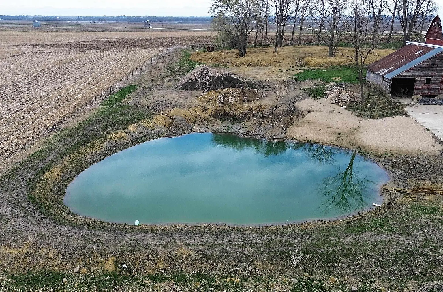 A pond on the property adds both visual appeal and potential for recreation or relaxation.
