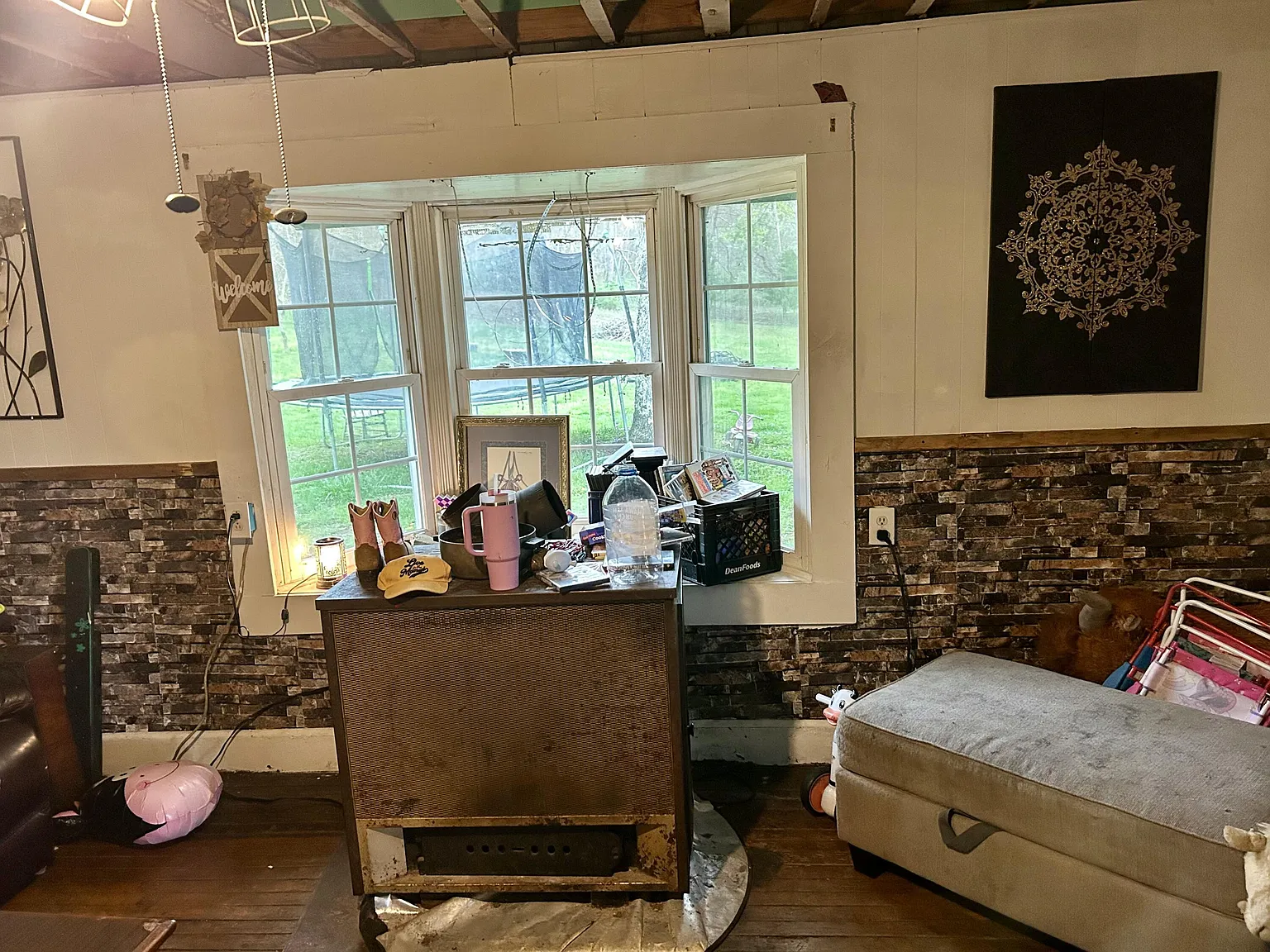 The single-family home features 2 bedrooms and 1 bathroom with about 1,485 square feet of living space. The layout includes a living area, kitchen, and bonus room, providing flexibility for updates or customization. The home has electric and water already connected and is being sold as-is, making it a solid option for renovation, rental use, or a weekend country retreat.