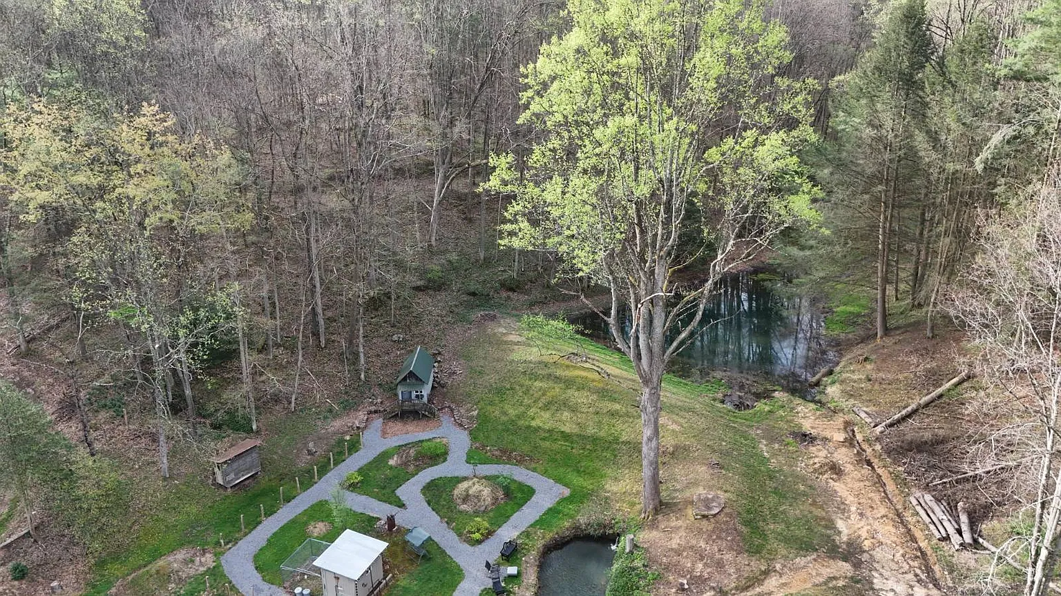 With additional structures and land features, the property is well-suited for a homestead, retreat, or recreational property.