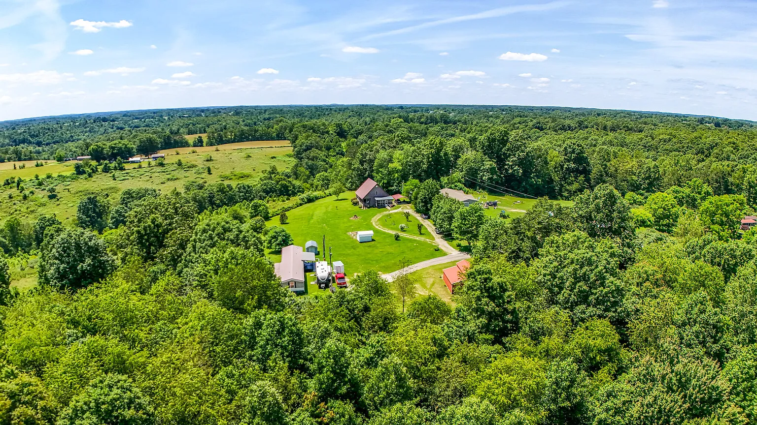 If you are seeking a full-time country home, a quiet weekend retreat, or a small hobby farm, discover the property on 624 Saul Begley Road in Annville, Kentucky, offering a unique blend of rustic charm and modern comfort. Developed in 2013, the home offers 1,423 square feet of thoughtfully maintained living space featuring two bedrooms and two bathrooms. Inside, you’ll find a spacious kitchen with ample counter space and storage, opening into a separate dining area. Large windows allow the flow of natural light and frame stunning views of the surrounding woods. The primary bedroom is located on the main level, while the upper floor connects a second bedroom to a cozy sleeping loft through a unique passageway. In addition, the home includes a heat pump and electric heat for year-round comfort, along with an oven, refrigerator, washer/dryer, and a range. Outside, you’ll find peaceful surroundings and enjoy scenic natural views from the comfort of your covered front porch, or unwind on the screened side porch. A classic red barn sits close to the house, offering both utility and charm, while additional sheds provide storage for tools and outdoor gear. The land itself offers open areas perfect for gardening or keeping animals. Sold as-is, this property is a unique opportunity to own a tranquil escape in Kentucky. Don’t miss the opportunity to make it yours – schedule your private showing today.
