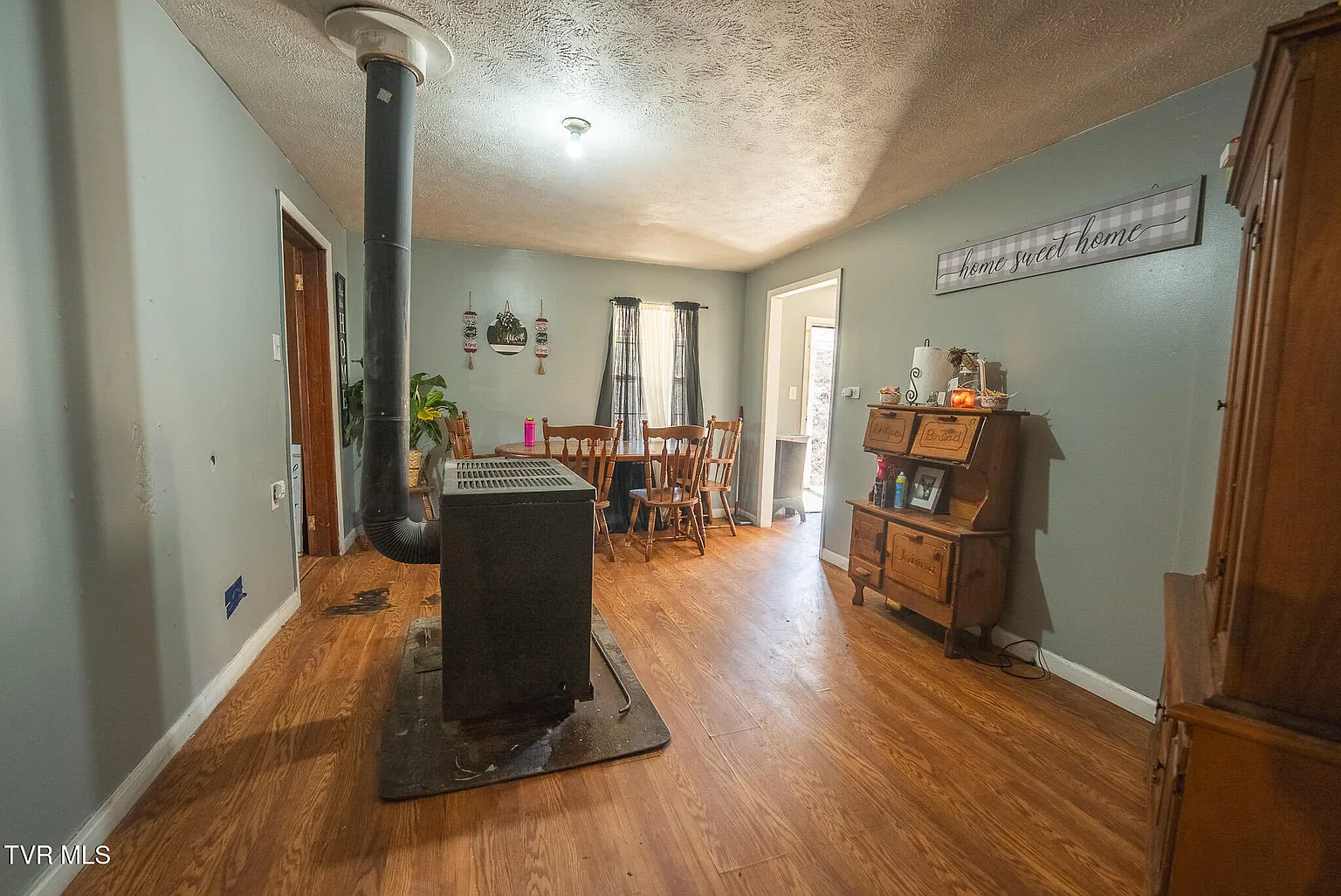 Heating options include electric and wood heat, providing flexibility.