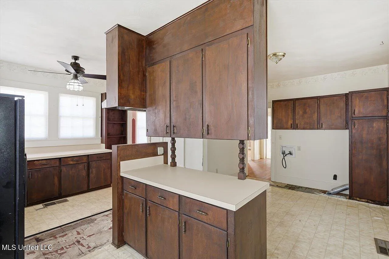 Nestled on a generous 1.5-acre lot minutes from the center of Mendenhall, Mississippi, on 308 N West Street, this Tudor Revival home offers flexible space, a classic character, and ample space for customization. Developed in 1950, the home offers 1,901 square feet of living space featuring three spacious bedrooms and two full bathrooms, blending opportunity for updates and personalization with timeless design. Inside, you’ll find a main level with a welcoming, bright living room, a formal dining room, and a uniquely arranged kitchen with abundant cabinet space, a kitchen island, and a cozy breakfast nook. The upper floor layout opens up to three additional rooms that can serve as bedrooms or be transformed into a home office, playroom, or a second lounge. The variety of rooms here, along with the bathroom, allows the home to adjust easily to different preferences. Outside, a lovely rear porch overlooks the backyard and a once-loved in-ground swimming pool area. While the pool will need restoration, it presents an exciting opportunity to reimagine a private backyard oasis. The property also includes a one-car garage and sits on a spacious city lot with mature surroundings. With a unique Tudor style, expansive lot, and solid foundation, this home is perfect for anyone seeking space, character, and long-term potential in a convenient Mendenhall location. Don’t miss the opportunity to make it yours – schedule your private showing today!