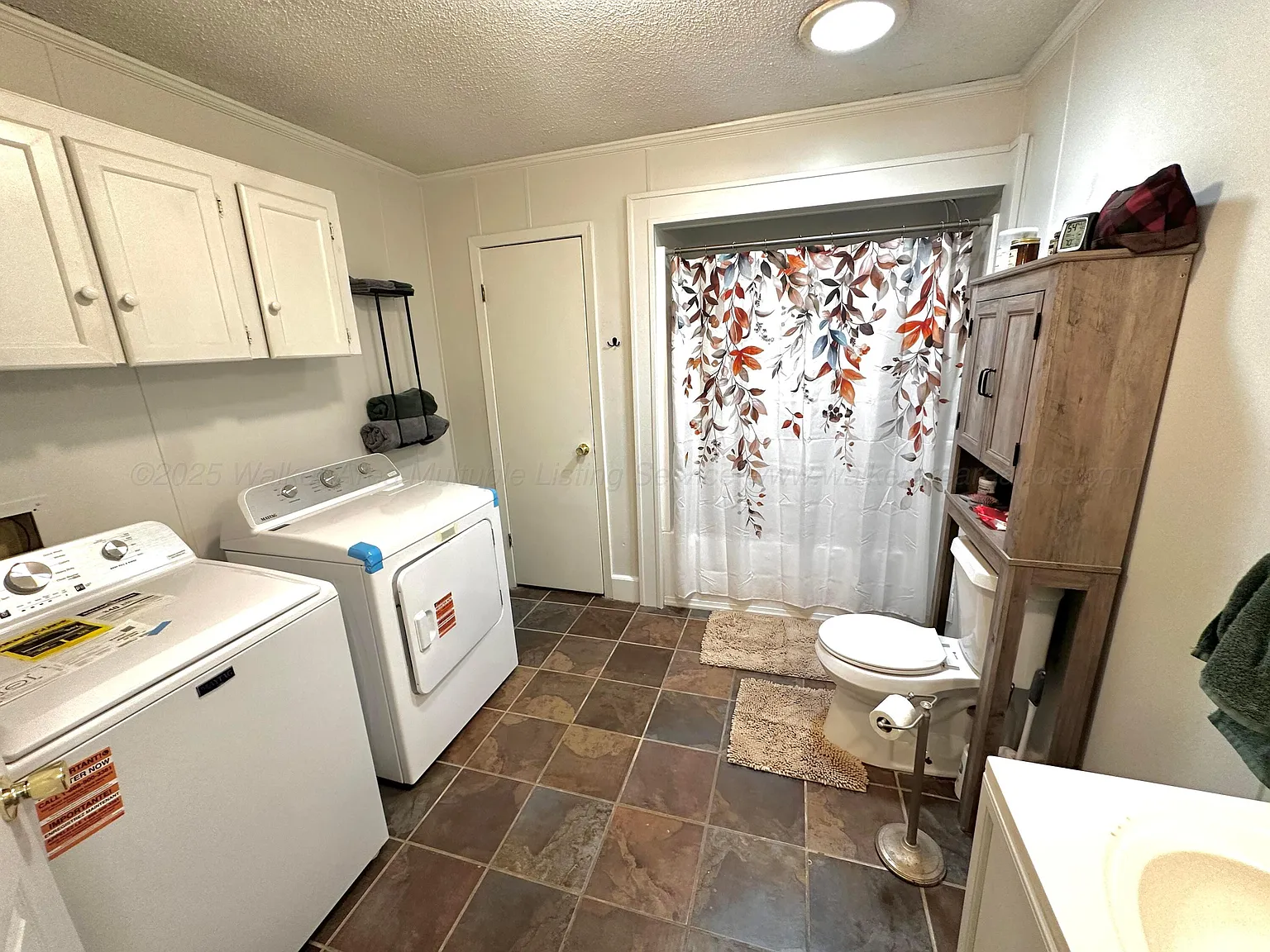 The home features a large bathroom that includes a combined laundry area, helping maximize space and functionality.