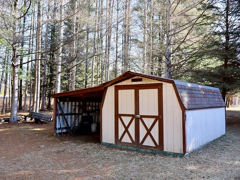Additional shed structures are also located on the property, offering space for tools, equipment, or outdoor gear.