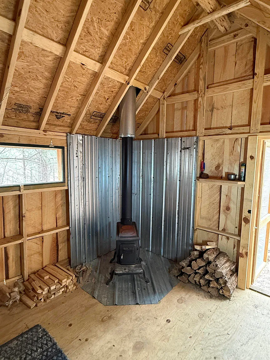 A Dry Cabin with wood stove provides a simple retreat or creative space.