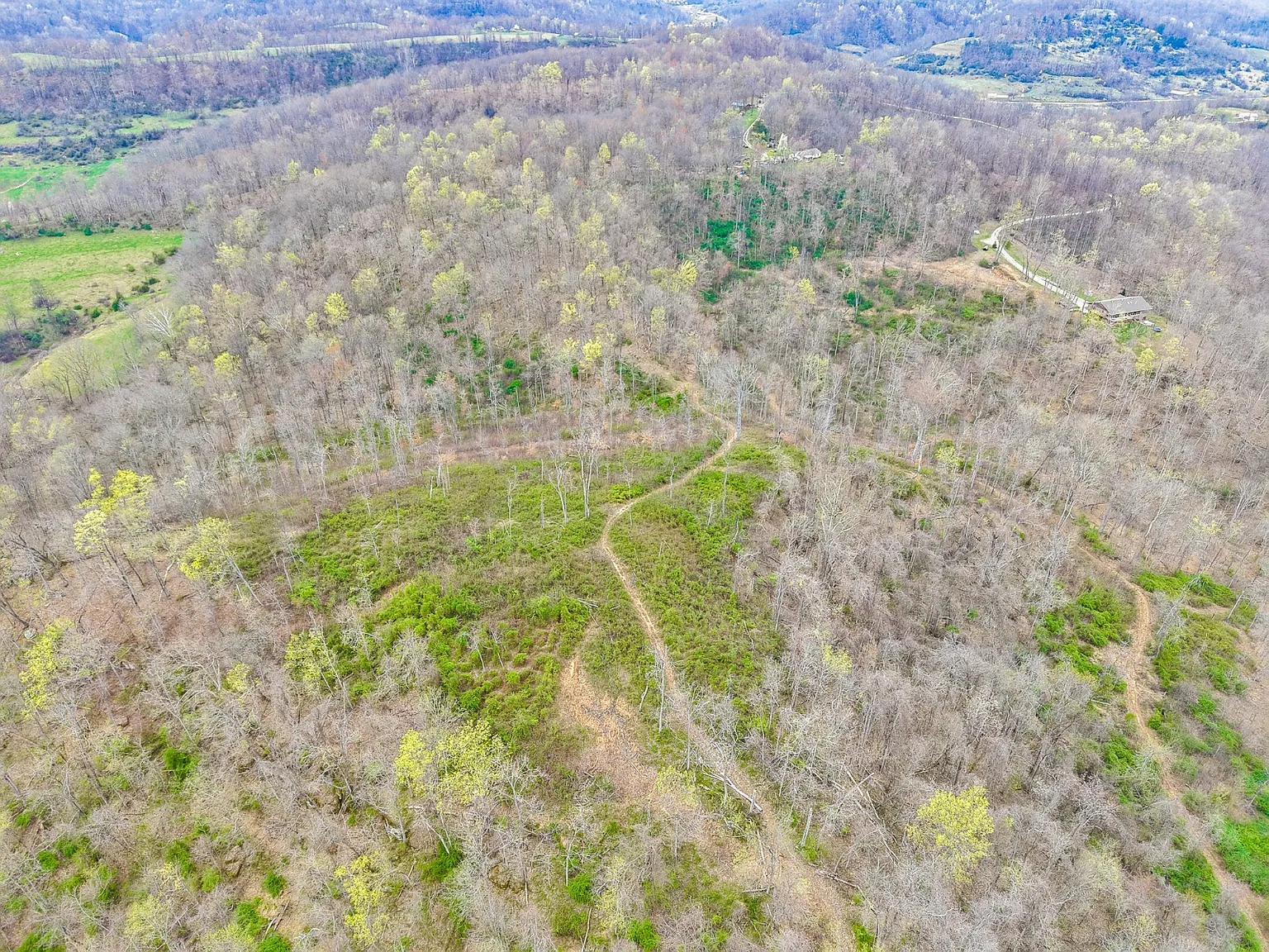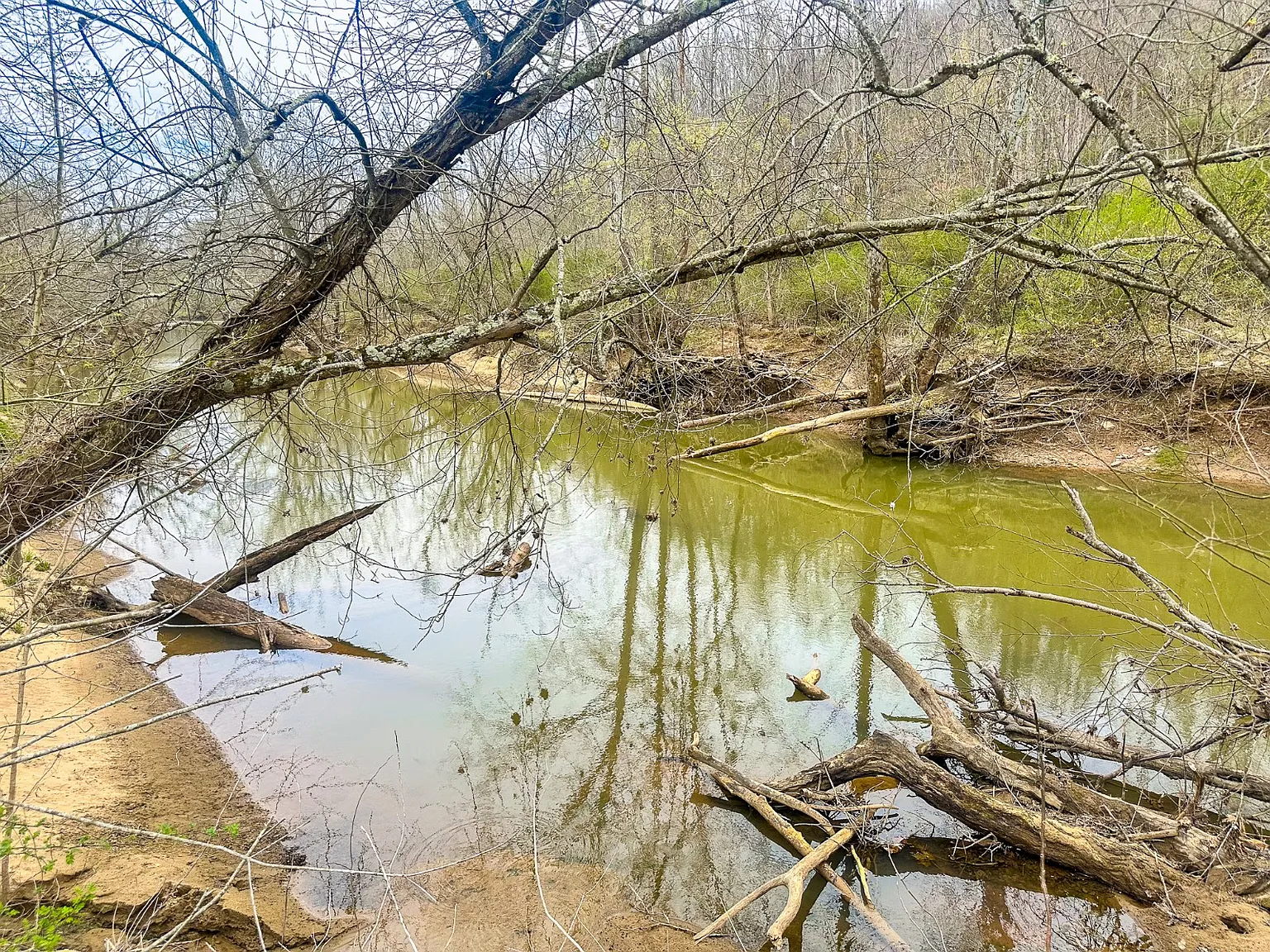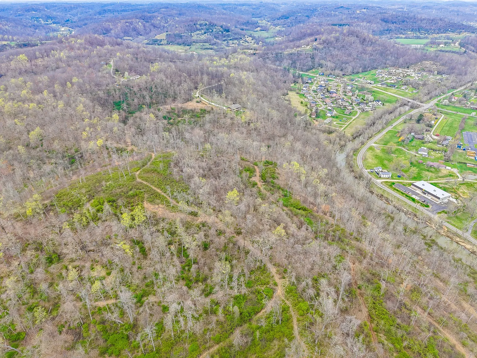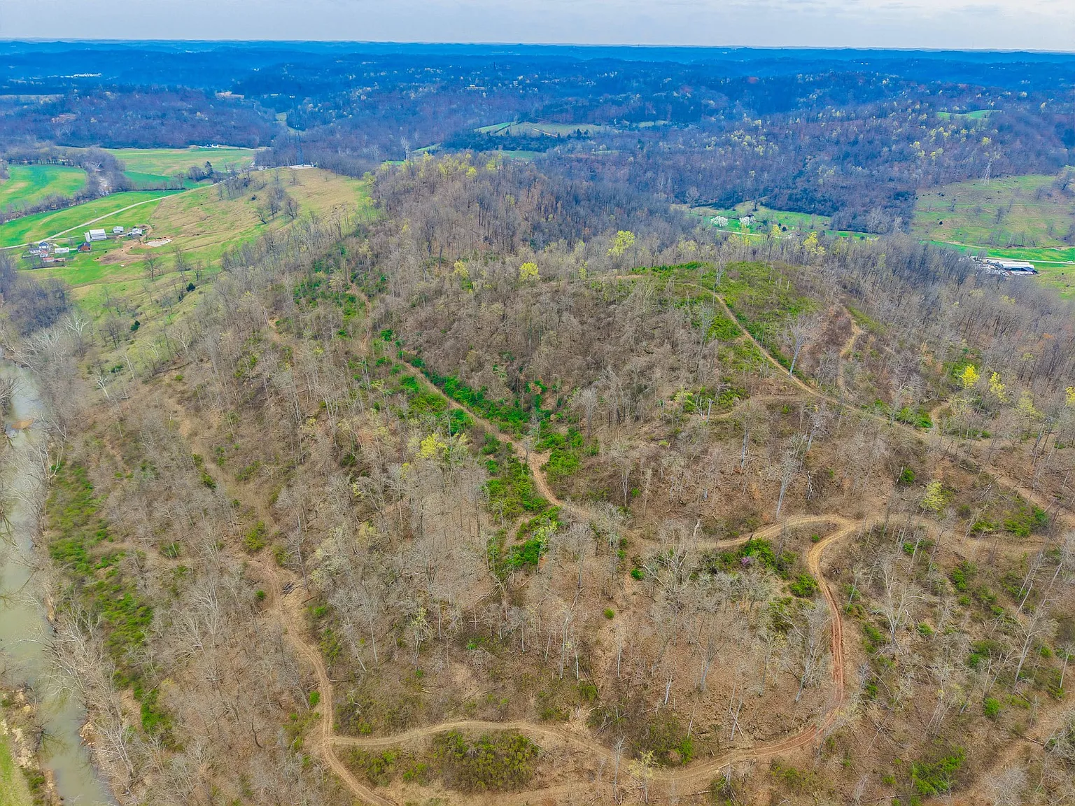 Nestled at the end of a quiet road outside Chesapeake, on 253 Township Road 157 in South Point, Ohio, this rustic log home sits on an incredible 44.7-acre lot of rolling Ohio countryside. Developed in 1980, the home offers 1,336 square feet of living space, combining privacy, natural beauty, and endless outdoor potential. Inside, you’ll find a simple and charming layout featuring two large bedrooms, one full bathroom, and a cozy living area anchored by warm wood tones throughout. Recent updates have been made, but there is still room for a personal finishing touch. The outside land offers endless potential for recreation and hobbies, with nearly 900 feet of frontage along the scenic Symmes Creek, providing direct access to fishing, kayaking, and wildlife watching. A recent timber cut encouraged thick brush growth, creating ideal cover for turkey and deer, making it excellent for hunting. Rolling hills and reopened trails invite exploration by foot, e-bike, ATV, or 4×4, making this a true playground for nature lovers. Conveniently located in a peaceful setting, yet close to essentials, local stores, gas stations, and the Collins Career Center, the property feels secluded but is not far from whatever you need. Whether seeking a weekend escape, a hunting base, or a quiet place to settle, this creekside property delivers unmatched space and opportunity. Schedule your private showing today and experience its natural beauty and endless potential firsthand!