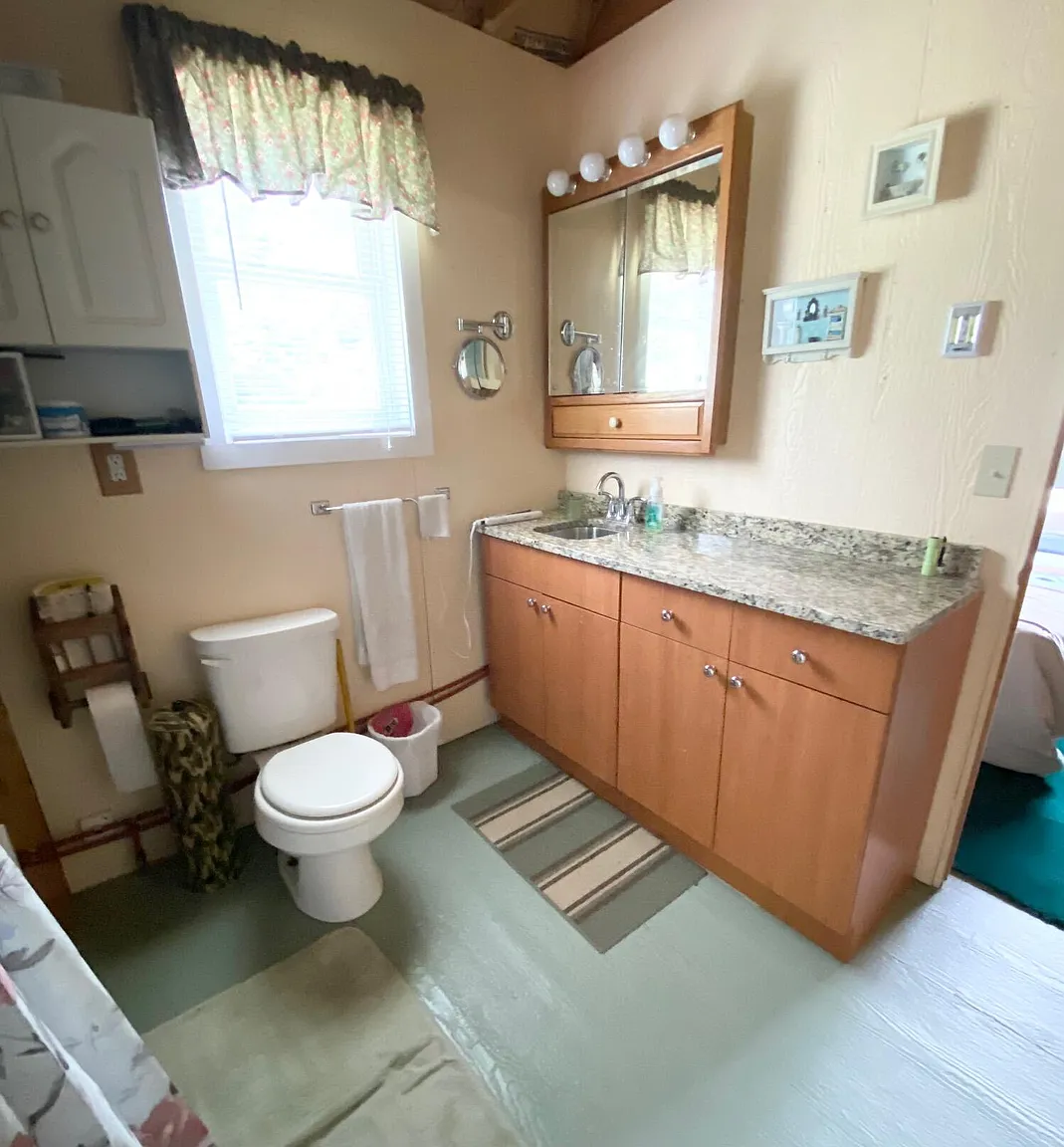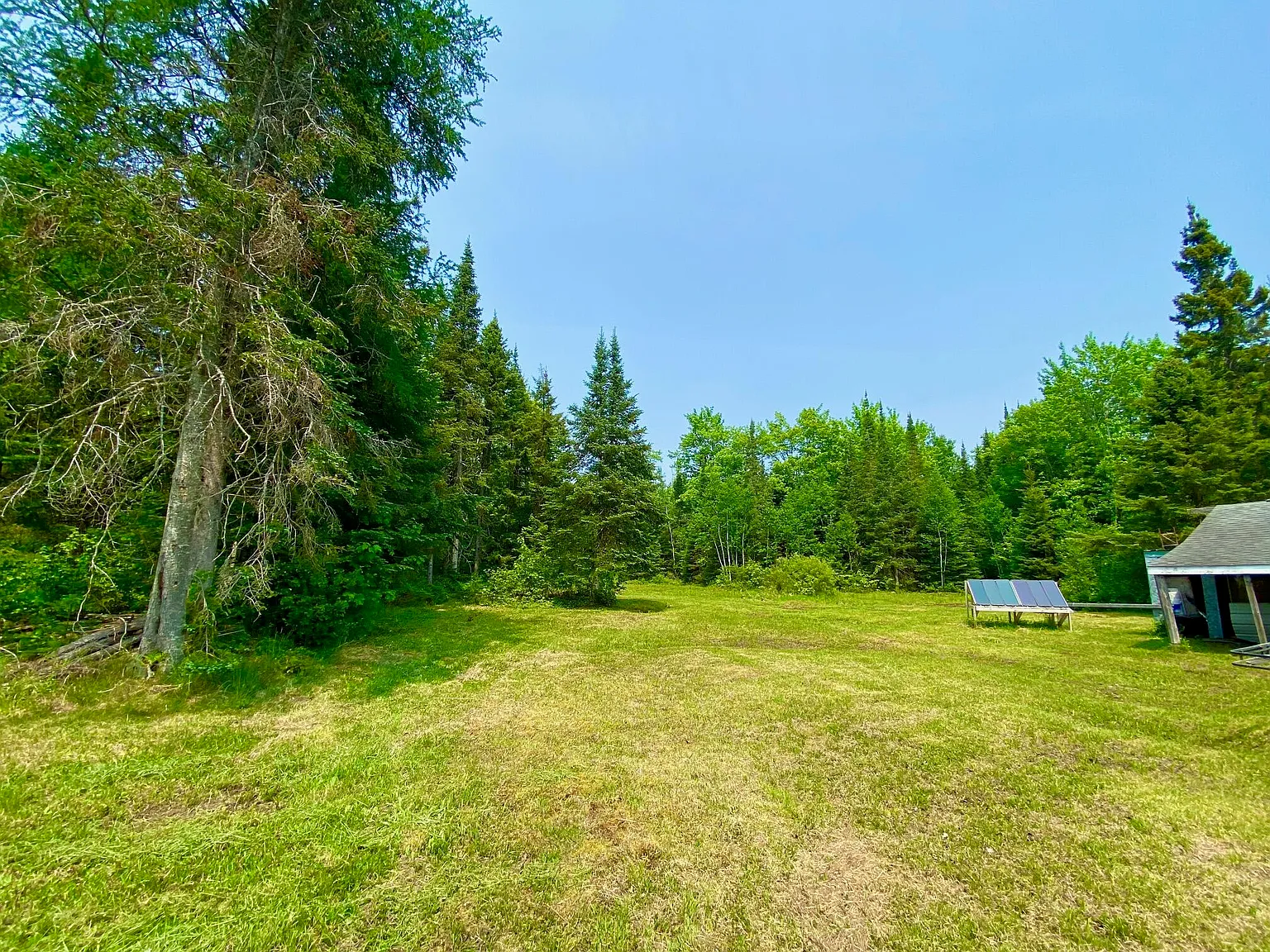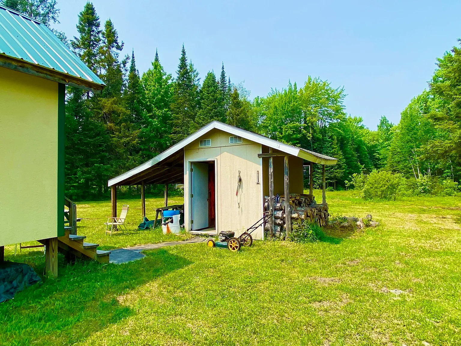 Water is handled with a 5″ flowing well providing fresh water, plus indoor plumbing. Power comes from a Honda generator, and the cabin includes both a wood stove and a wall furnace for warmth through fall and winter. The listing is truly turn key, with furnishings, linens, appliances, a solar array, and even a boat with outboard motor included.