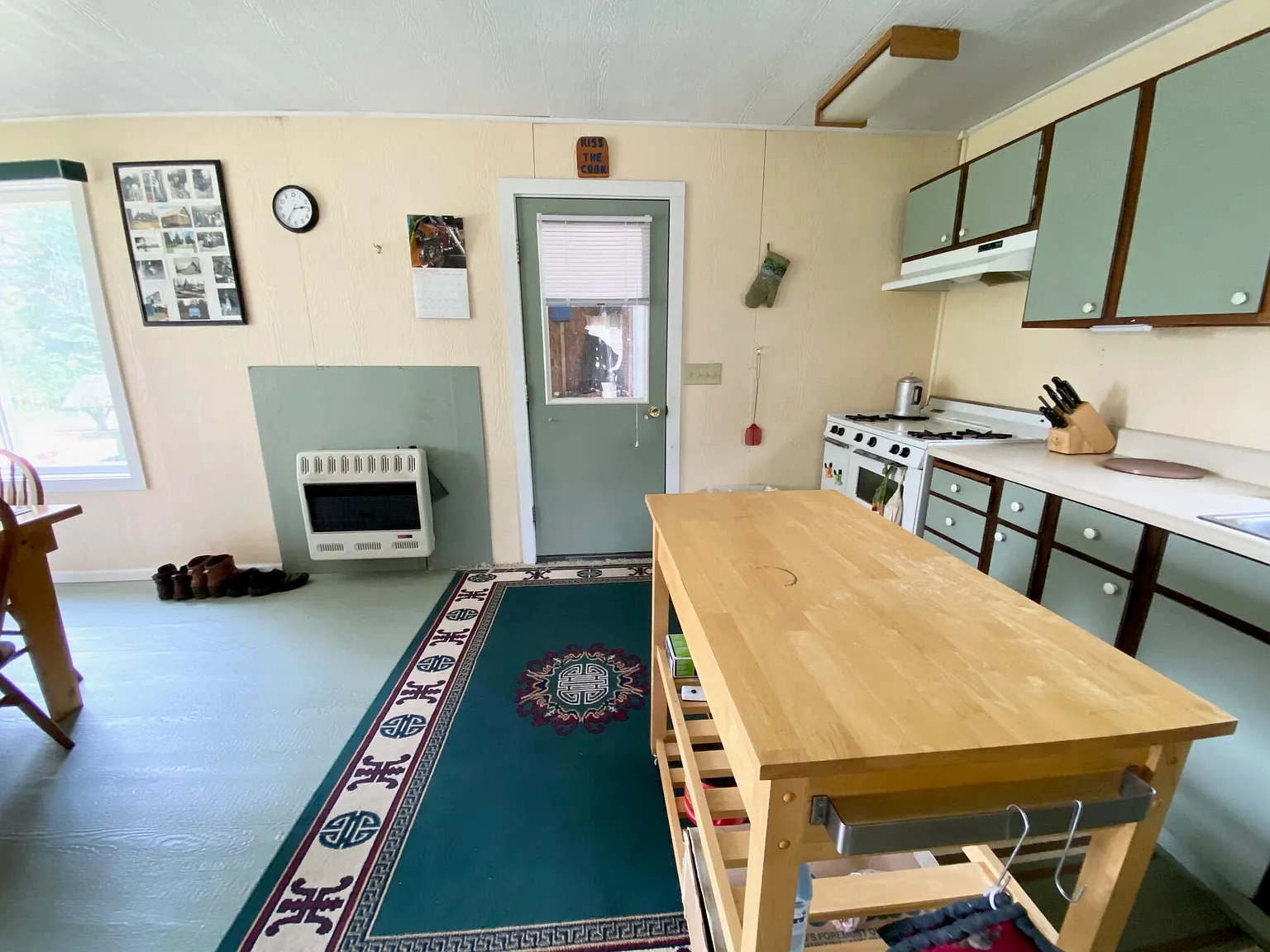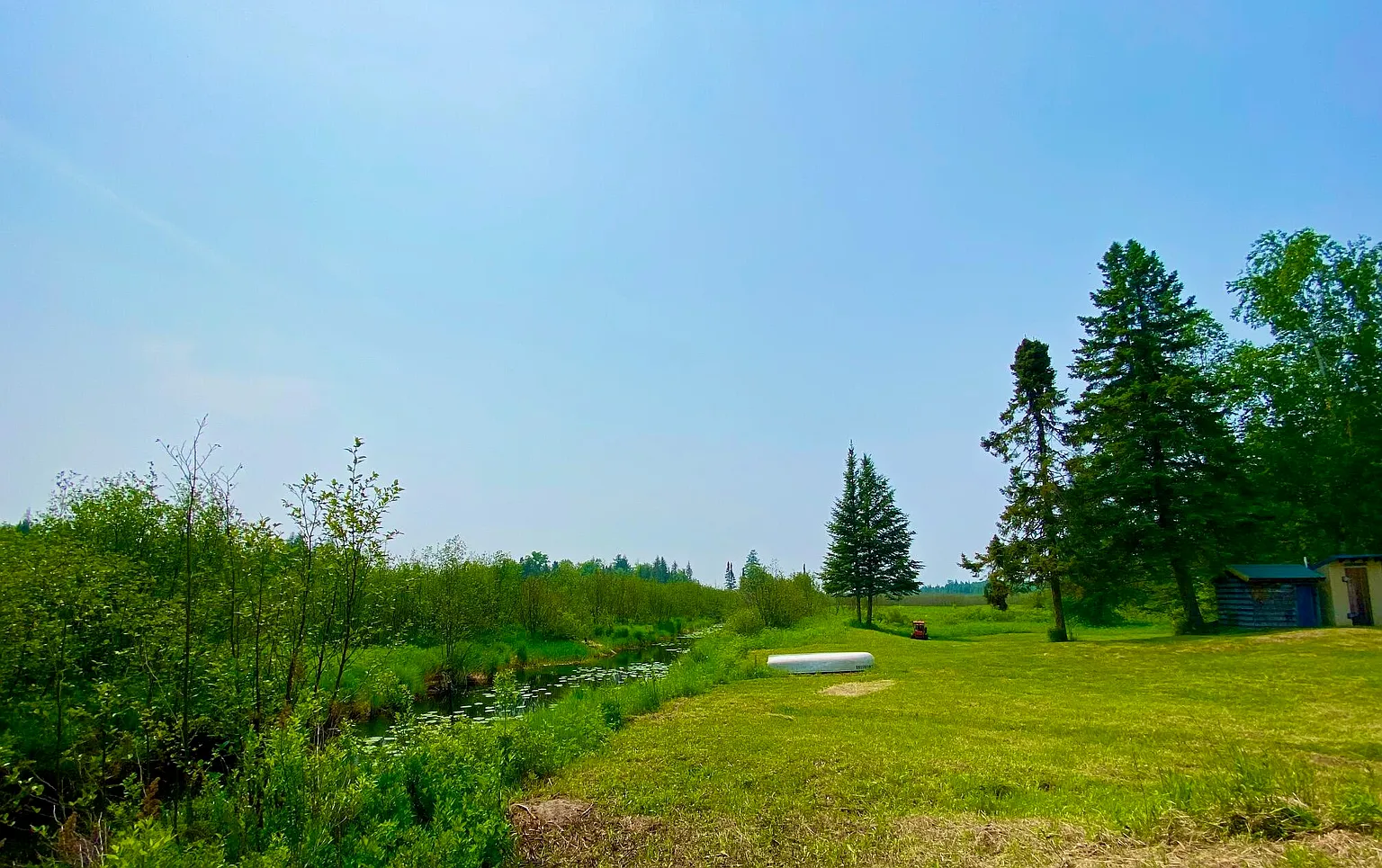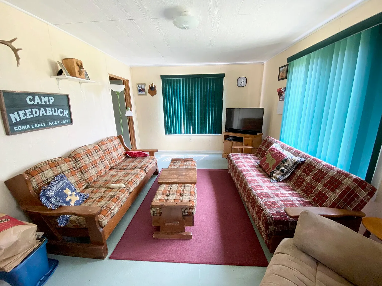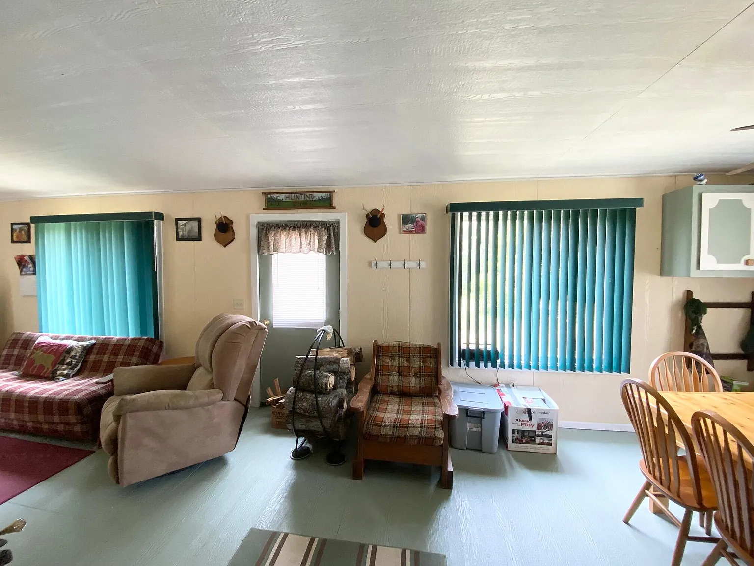 Water is handled with a 5″ flowing well providing fresh water, plus indoor plumbing. Power comes from a Honda generator, and the cabin includes both a wood stove and a wall furnace for warmth through fall and winter. The listing is truly turn key, with furnishings, linens, appliances, a solar array, and even a boat with outboard motor included.