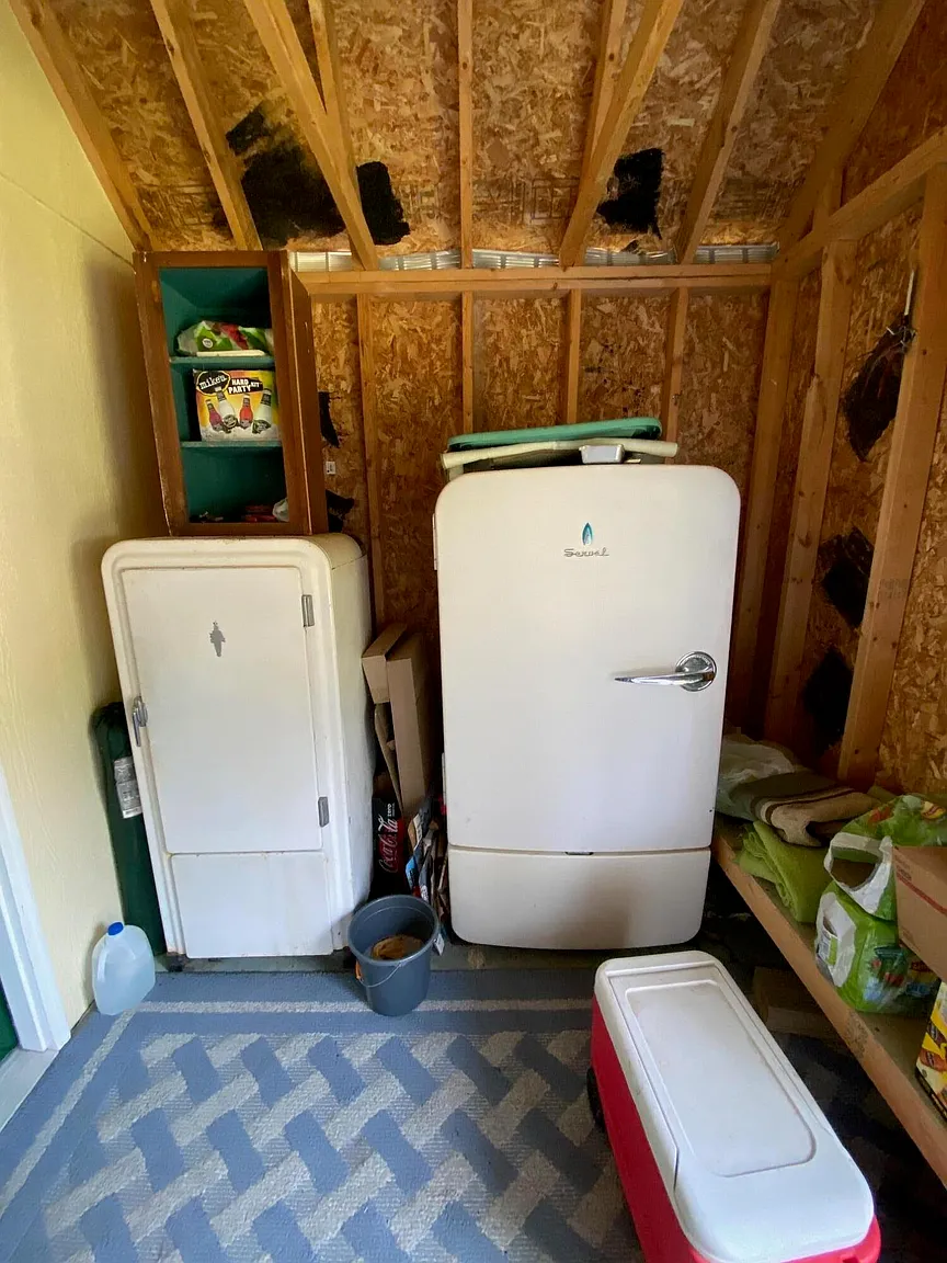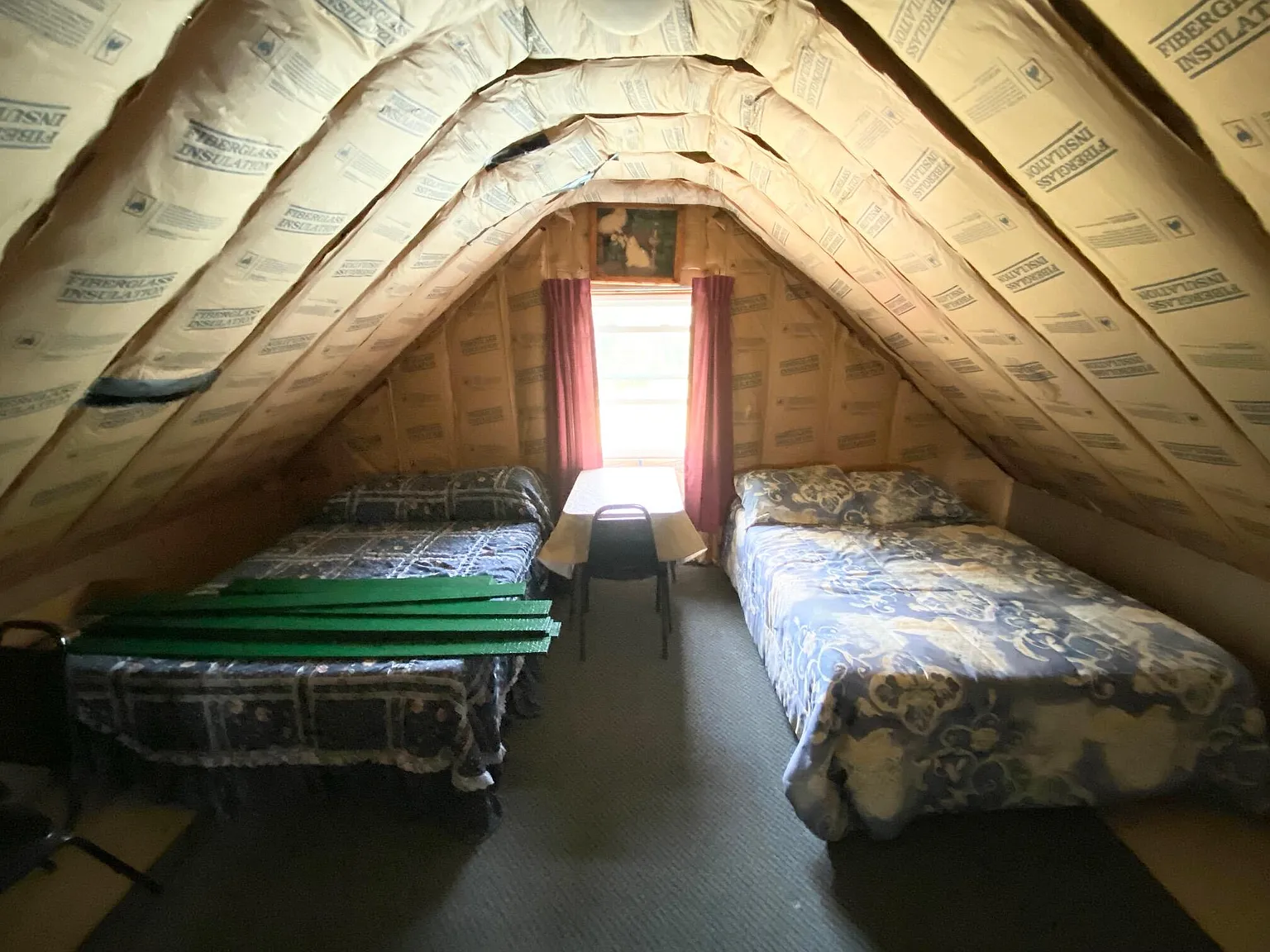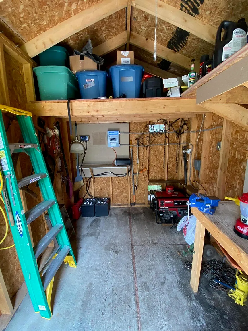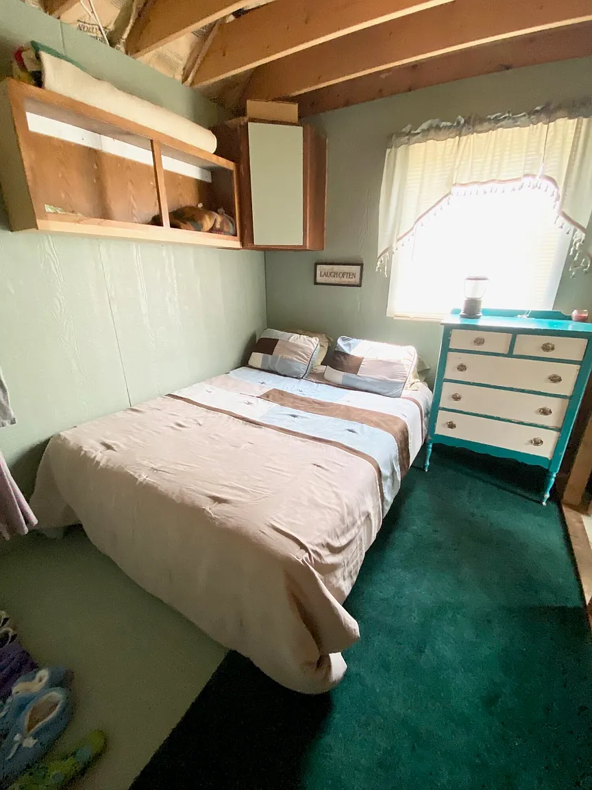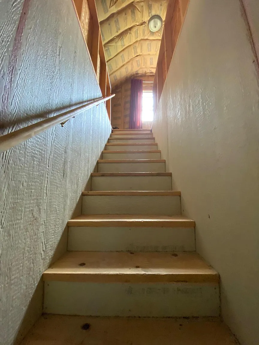 The property features a 24’ x 32’ cabin built for year-round use, completely off grid yet thoughtfully equipped. Inside you’ll find a full kitchen, a spacious dining and living area, a bathroom, and a first-floor bedroom. Upstairs is open and designed for sleeping and storage, with beds for 6+.
