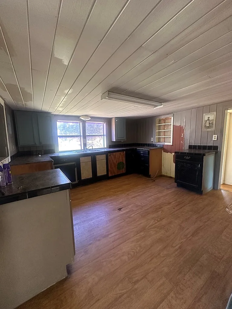 Step inside and you’ll notice the character right away. The front portion of the home still features original hardwood floors from its early cabin days, adding warmth and authenticity to the space.