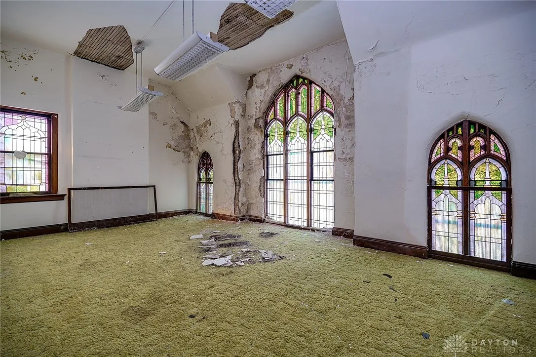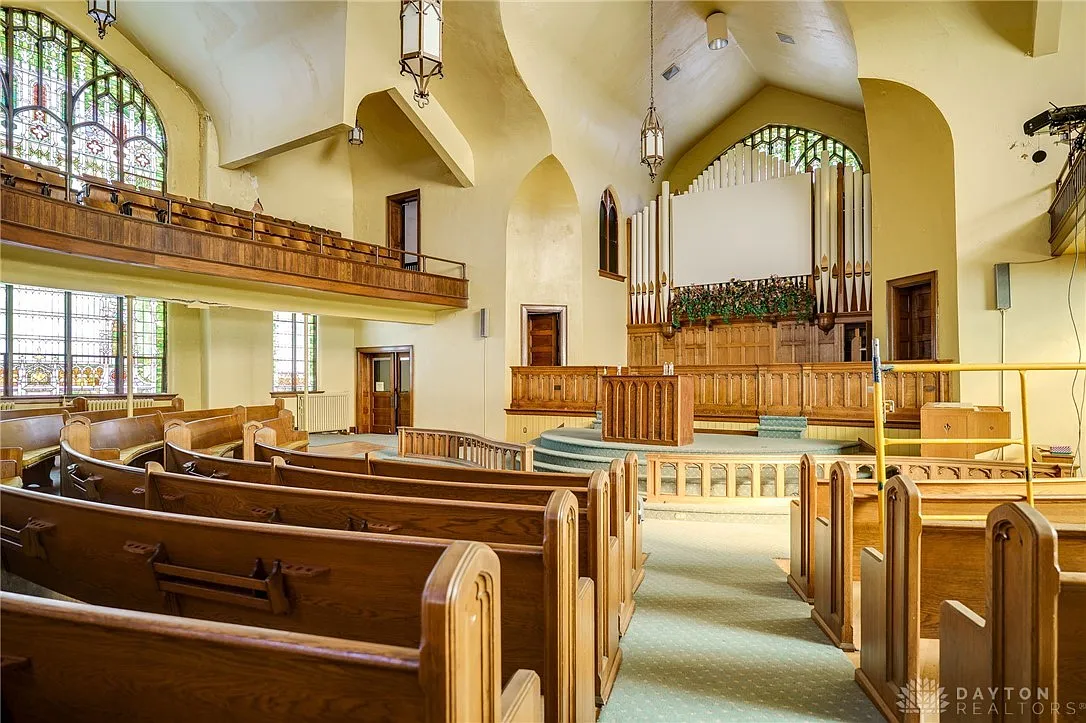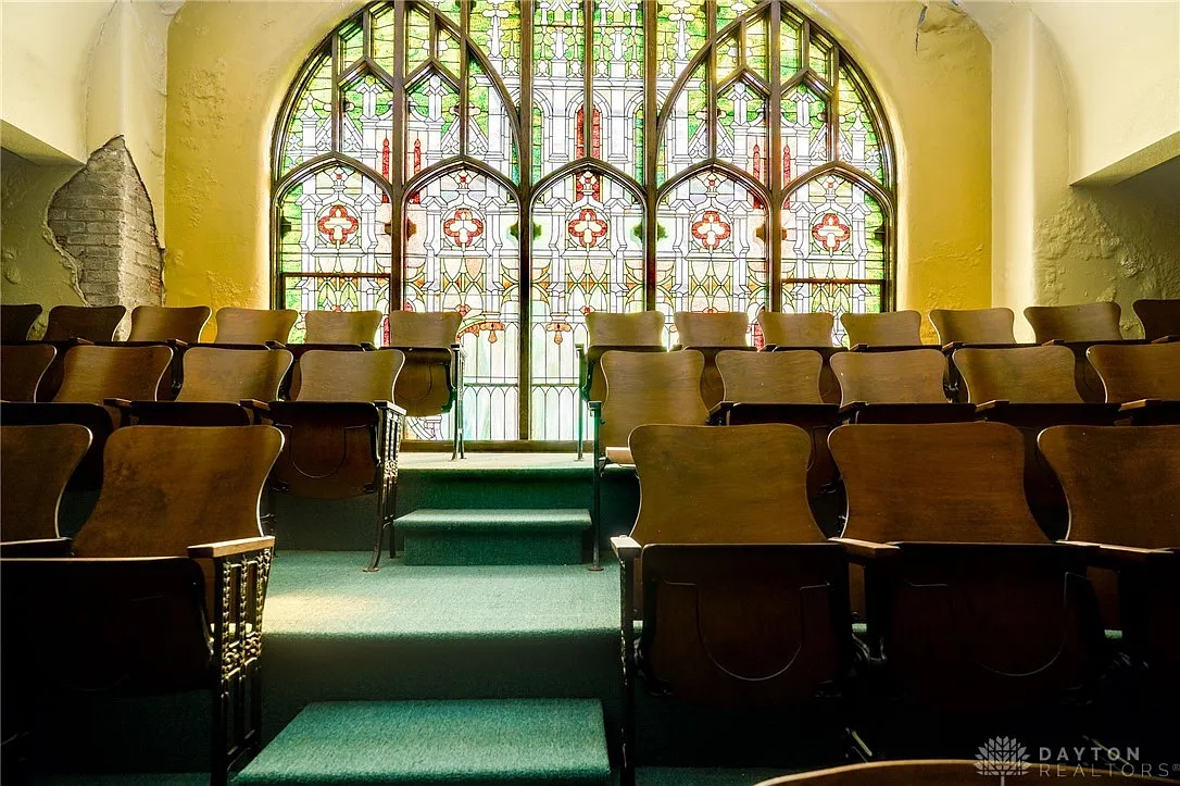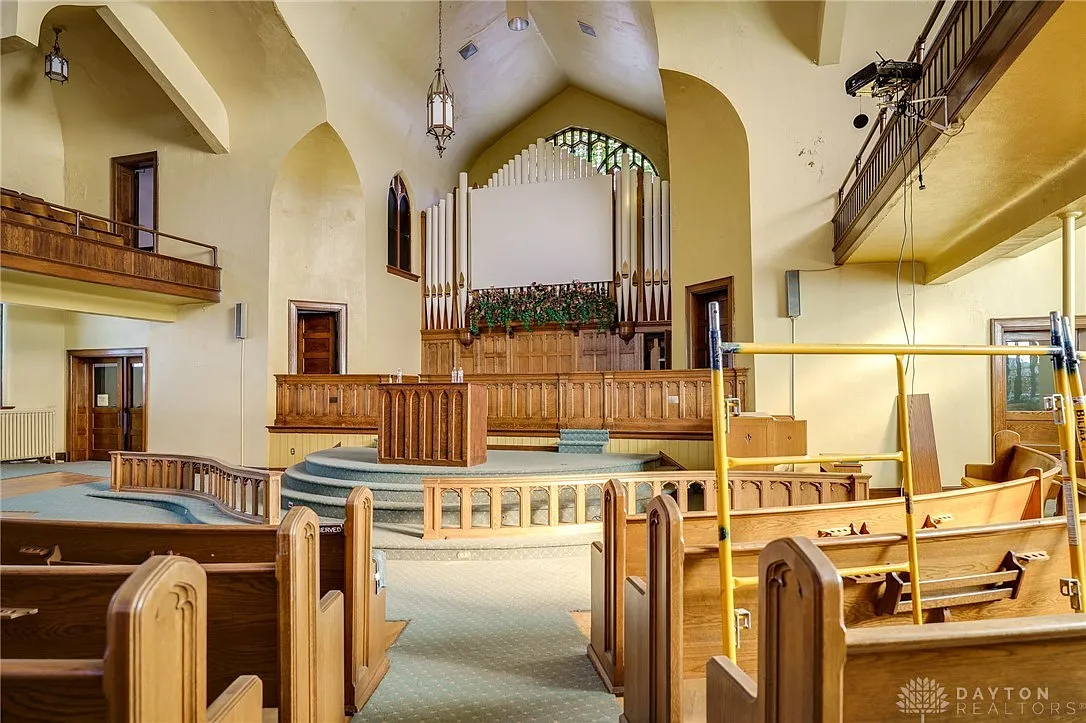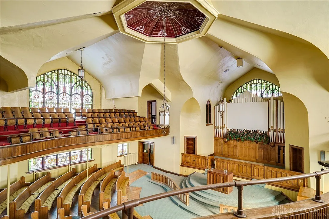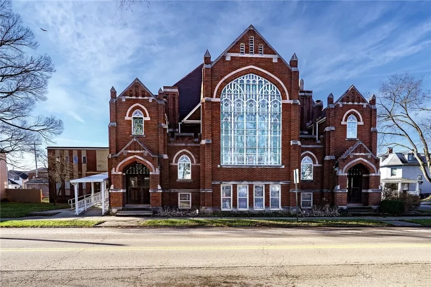 This historic 1914 church stands as a striking architectural landmark, offering over 11,400 square feet of space and an exceptional opportunity for restoration or creative repurposing. Zoned Traditional TRM-E, the property allows for multiple potential uses, making it ideal for investors, developers, or visionaries seeking a truly unique project. Buyers are encouraged to verify zoning, permitted uses, and requirements directly with the City of Piqua. Inside, the building features a dramatic sanctuary space filled with character, along with additional rooms that could be reimagined for residential, community, or mixed-use purposes. The layout includes two bedrooms, four bathrooms, a lower-level kitchen, and expansive open areas that provide flexibility for future design concepts. Original brick and stone construction give the structure a strong historic presence that’s difficult to replicate. The property is being sold as-is, with code violations on file. The roof and interior require repairs, and all utilities are currently turned off. Kitchen appliances are included and conveyed as-is, with no warranties. The sale also includes a land-lease agreement with a neighboring property, with the leased portion belonging to the church parcel. Priced to reflect the work needed, this is a rare chance to breathe new life into a distinctive historic property. Whether restored, adapted, or transformed entirely, this space offers scale, history, and serious potential for the right buyer.