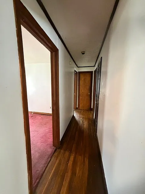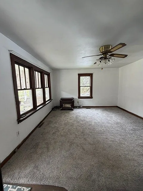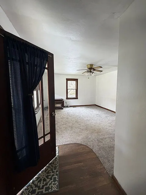 The interior features a mix of carpet and hardwood flooring, offering a starting point for upgrades.