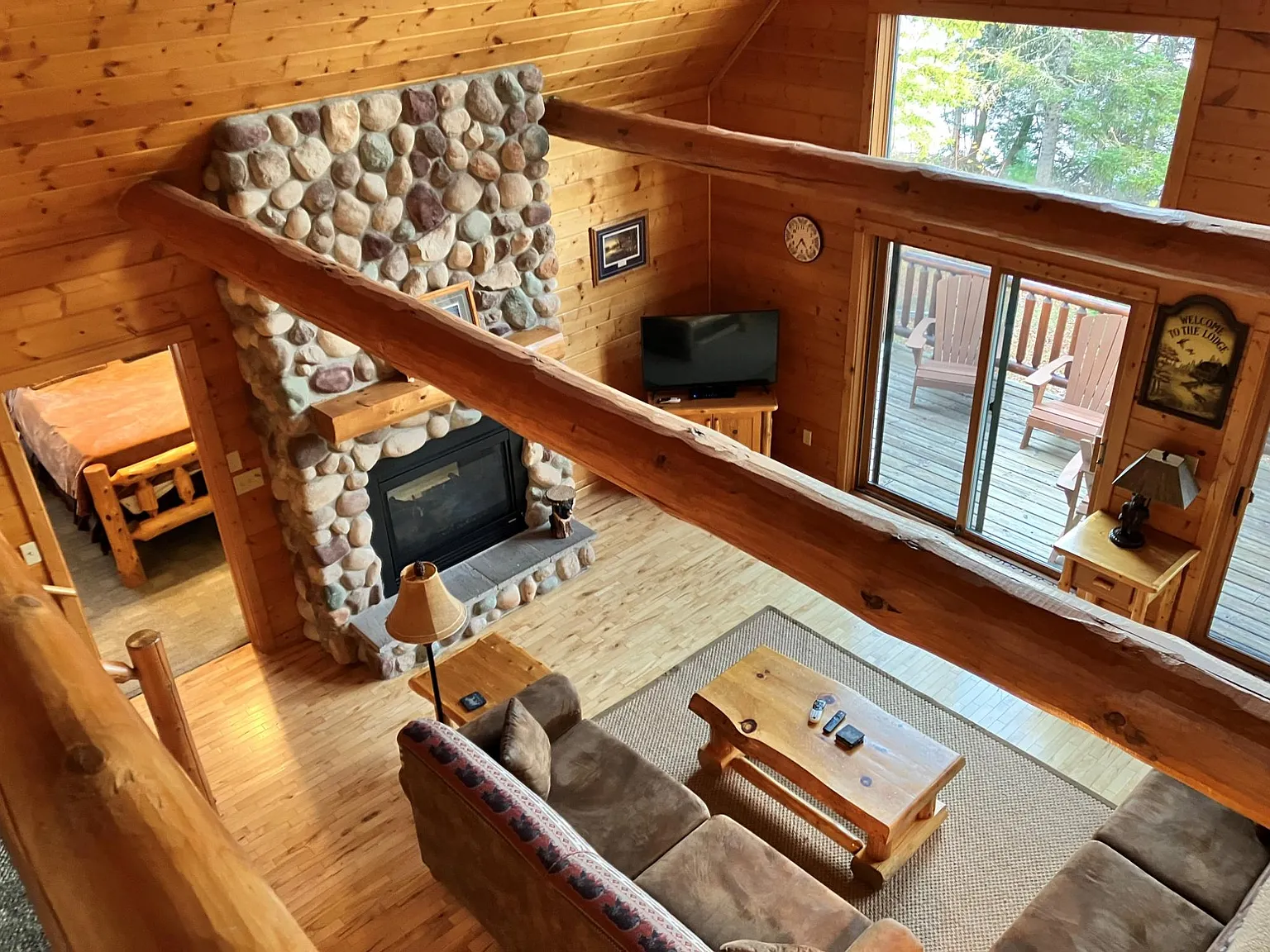 Nature lovers, outdoor enthusiasts, explorers, and investors alike – discover the property on 6586 Knuth Lane in Land O’ Lakes, Wisconsin, nestled on 26 wooded acres along the peaceful shores of Landing Lake, offering a 1/10 fractional ownership in the Bear’s Den log home. This beautifully maintained 3BR/2BA chalet-style condo provides 720 feet of shared sand-frontage and a fixed week in July, with additional seasonal and rotating weeks throughout the year. Inside, the home opens to a warm and inviting great room anchored by a gas fieldstone fireplace and vaulted ceilings. The main level features an open kitchen and dining area, two bedrooms, and two full baths, along with a spacious screened porch that makes summer evenings effortless. Upstairs, a third bedroom adds privacy for guests. With 1,627 square feet of furnished living space, central air, propane heat, and classic log-siding charm, it’s ready for immediate enjoyment. Outside, a large lakeside deck overlooks the water, while the surrounding acreage offers walking trails, a firepit, a screened gazebo, and easy access to shared amenities including a pier, pontoon boat, paddle boat, kayak, canoe, and swim raft. A private storage unit and two outdoor parking spaces are included. Perfect for anyone seeking an affordable lakefront retreat with year-round recreation and low maintenance. Don’t miss the opportunity to make it yours – schedule a private tour and experience the scenic setting, natural beauty, and endless potential!