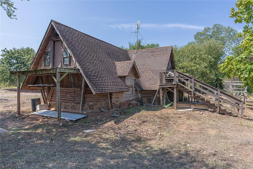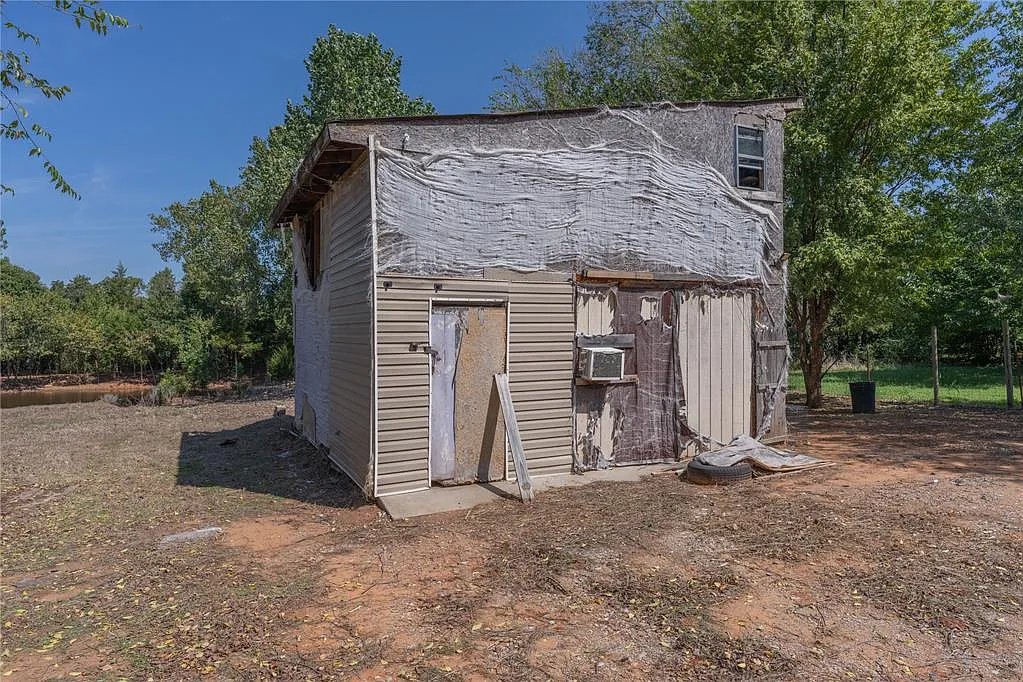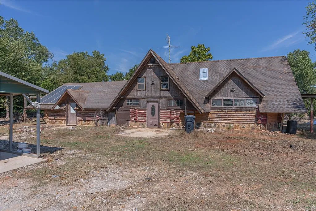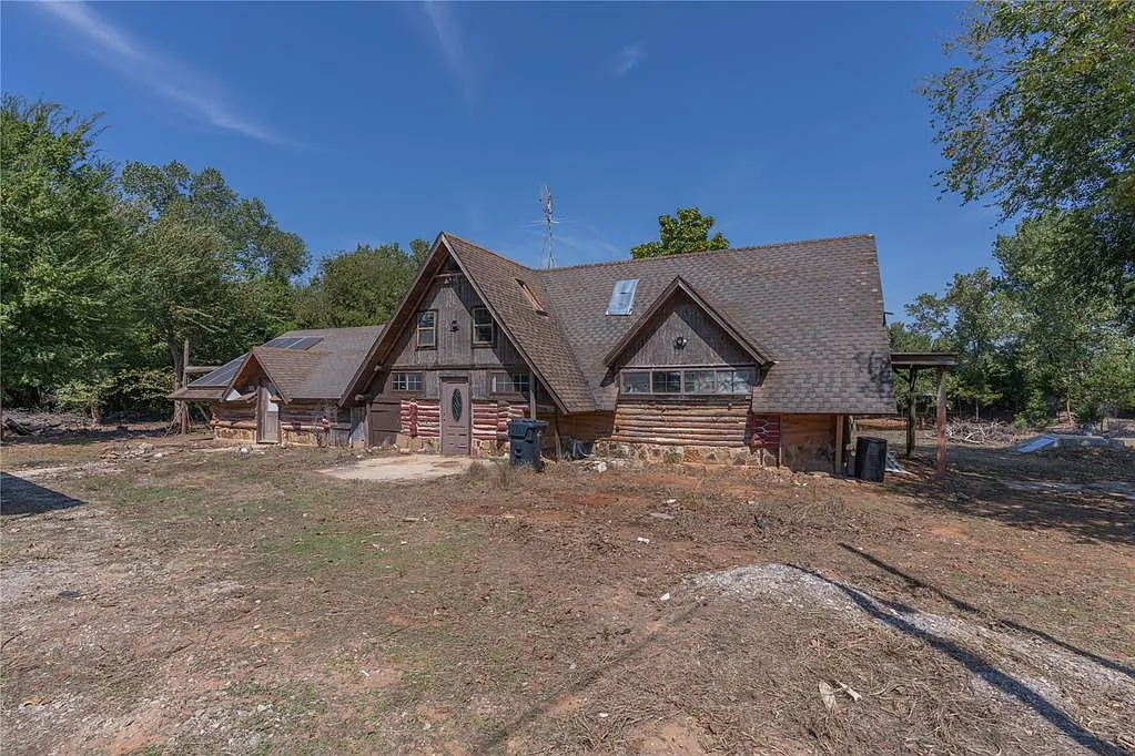 Nestled just under 25 miles from downtown Oklahoma City, on 2521 South Peebly Road in Choctaw, is a picturesque log-cabin-style home set on a 1.95-acre lot offering a rare blend of city convenience and country privacy. Developed in 1986, the house offers 2,298 square feet of interior space featuring three spacious bedrooms and two full bathrooms across two large stories. Inside, the layout has an open, rustic feel that suits its log construction. Heating and cooling systems are not currently in place. The interior offers a solid foundation for a custom renovation. The surrounding land is a true highlight. The 1.95-acre lot features a large pond ideal for fishing, a wooded setting offering privacy, and two outbuildings providing extra space for storage, equipment, and hobbies. An underground tornado shelter adds an additional layer of security. This property blends the freedom of rural living with the convenience of a short drive to the city. Whether you want a weekend escape, a primary residence, or a project to develop into something special, it’s a flexible opportunity in a desirable area. Sold as-is for a captivating price. Schedule a private showing today and experience the character, space, and potential firsthand!