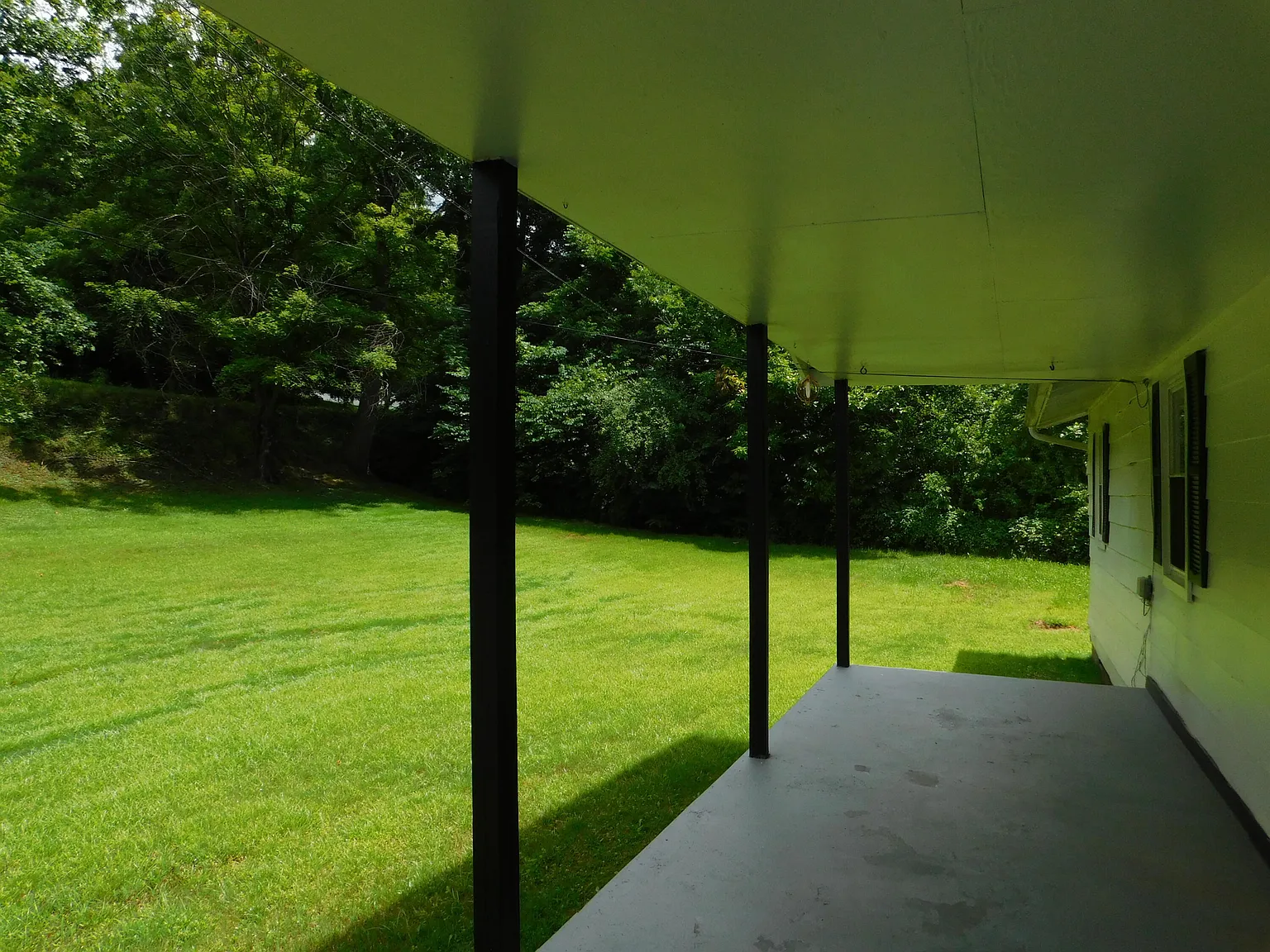 The outdoor space provides a peaceful setting with mountain and wooded views, creating a relaxing atmosphere that’s perfect for rural living.