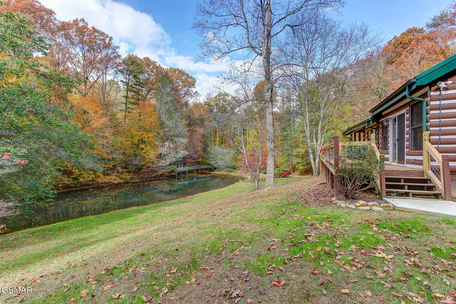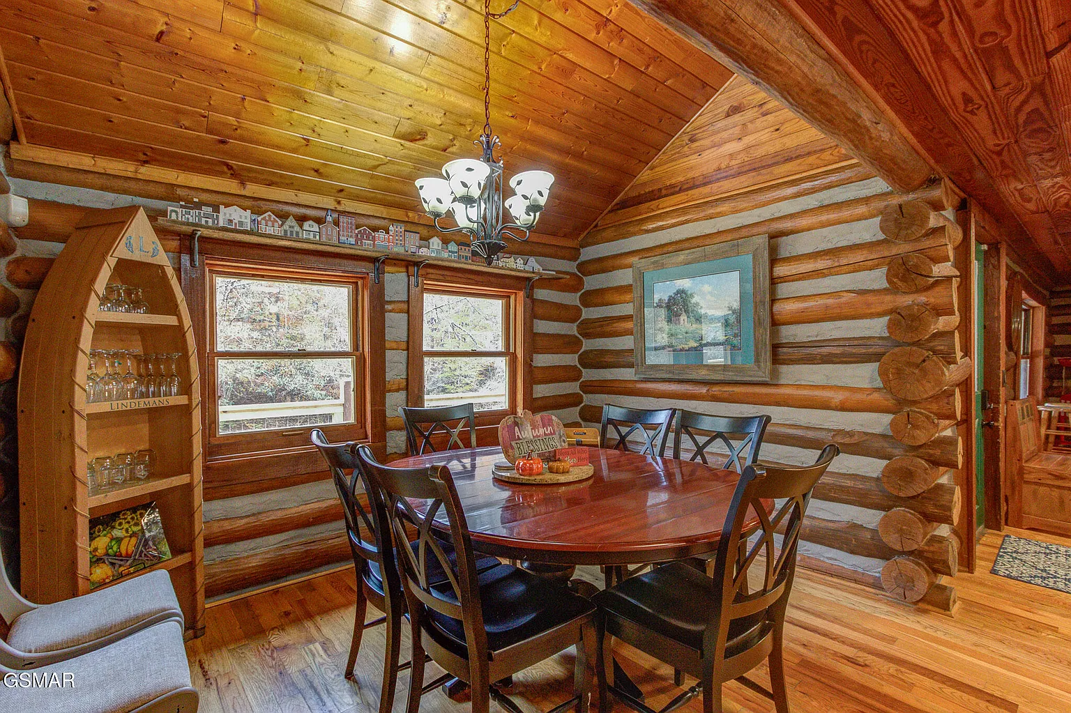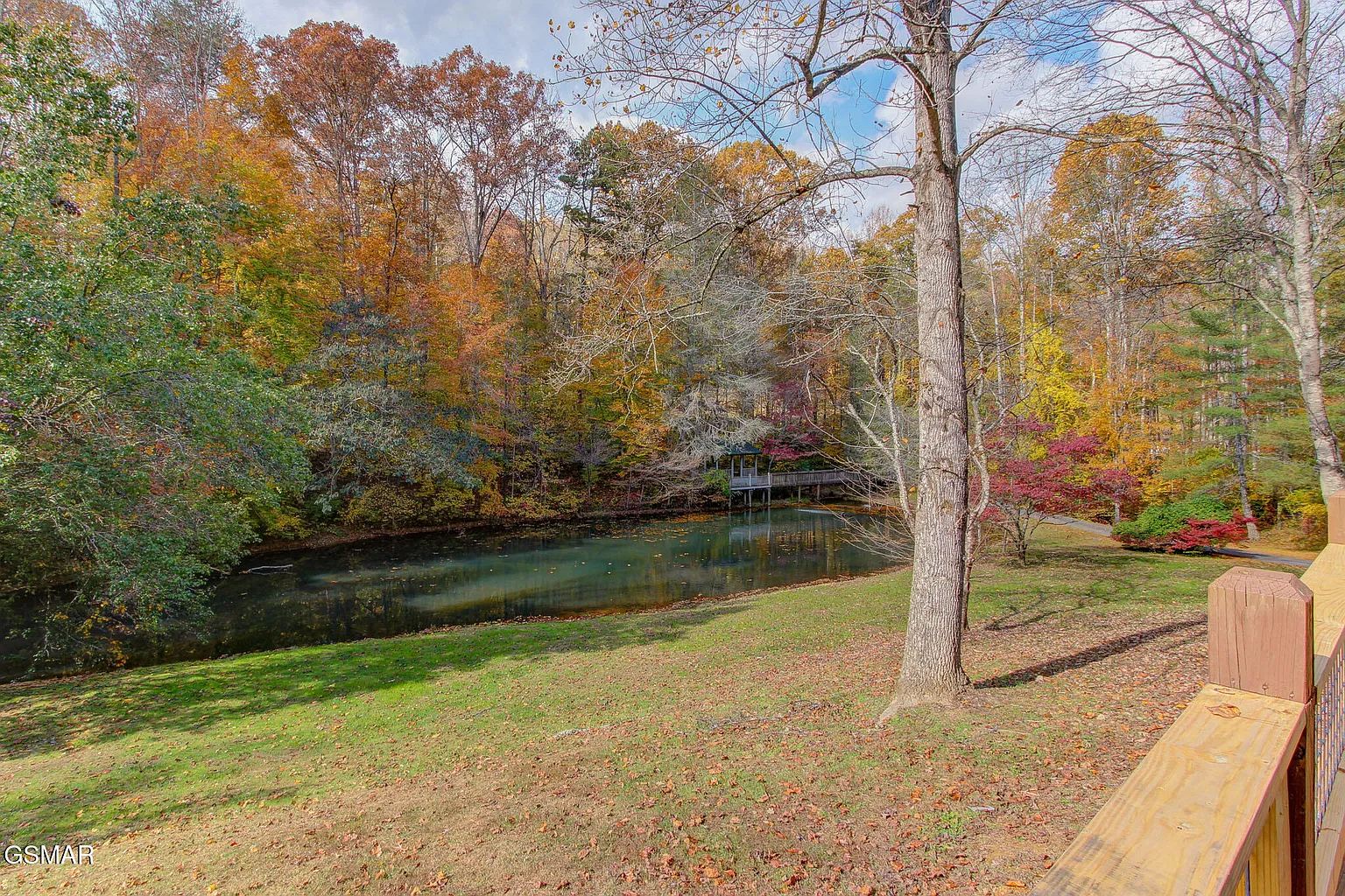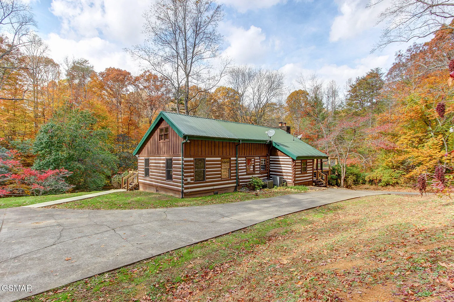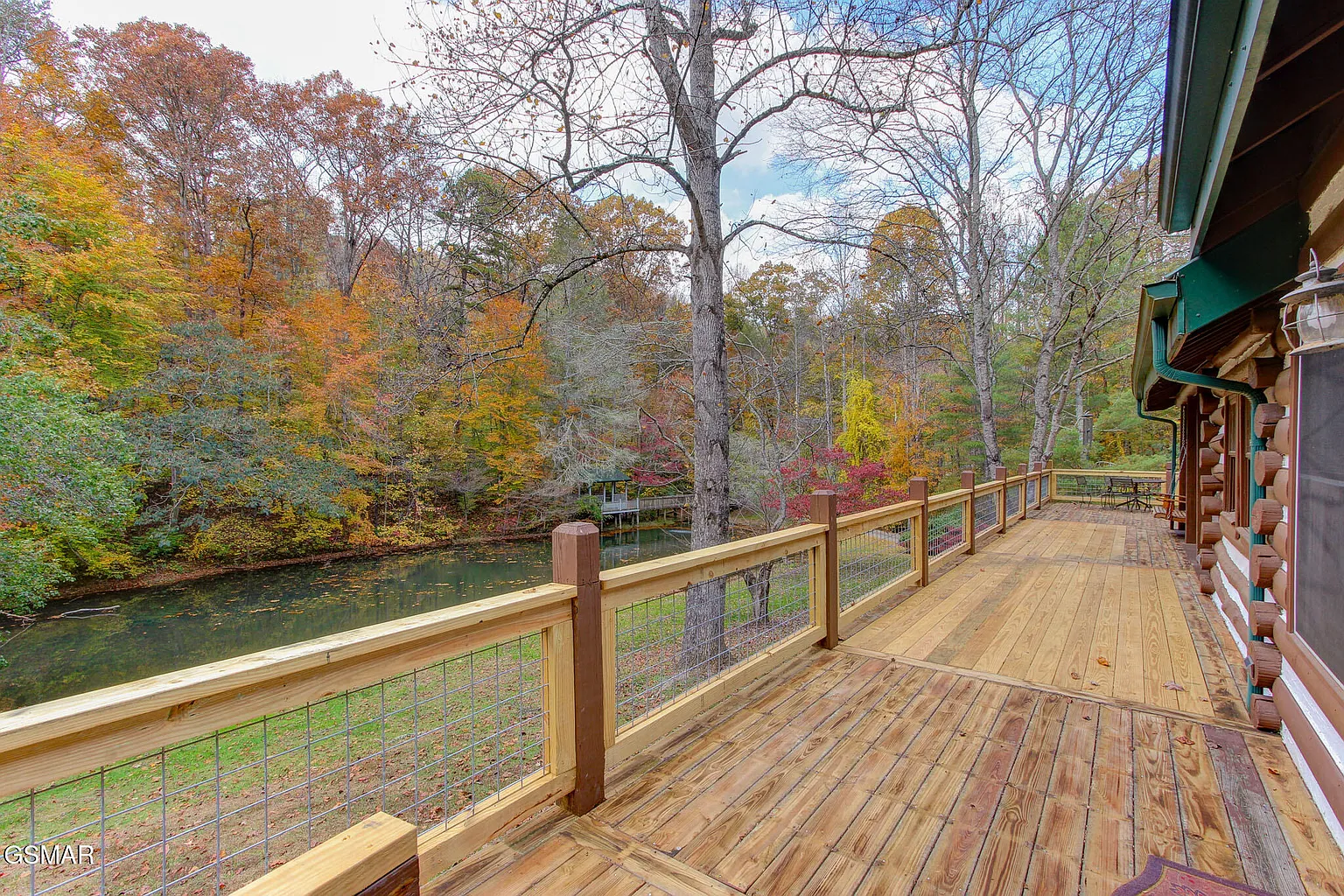 Nestled in the quiet Smoky Mountain Landscape, this 11.3-acre property at 1049 Alpine Road in Seymour, Tennessee, comes with a rustic log cabin graced with character, comfort, and ample space for recreation. Developed in 1979, the rustic cabin is set at the center of the property overlooking a spring-fed, stocked pond. Inside, the spacious layout offers 2,224 square feet of living space, featuring two bedrooms, four baths, a bright living room framed by large windows, a farmhouse-style kitchen, and a dining alcove beneath a vaulted, beamed ceiling. A cozy family room anchors the space with its woodstove-insert fireplace and full-size shuffleboard table, and a beautifully tiled full bath completes the floor. Upstairs, the two king bedrooms sit on either side of a central hallway, sharing a full bath with a vessel sink and tiled tub/shower. The lower level extends your options with a bonus queen room, a laundry area with a built-in bunk nook, and a third full bath featuring a luxe doorless shower. Outdoors, the half-wrap deck delivers a true mountain retreat experience with its hot tub, covered swing area, and dining space overlooking the pond and surrounding woods. Across the parking area, a charming guest cottage built from vintage logs adds even more flexibility, offering a king bed, breakfast area, and a bath with a clawfoot soaking tub. A short walk around the pond leads to a footbridge and a gazebo perfectly placed for quiet mornings and sunset views. Conveniently located just minutes from town and within easy reach of Pigeon Forge and Sevierville, this unique property is a perfect opportunity for anyone seeking a primary home, a natural retreat, or a successful rental. Don’t miss the chance to make it yours for a captivating price – schedule your private showing today!