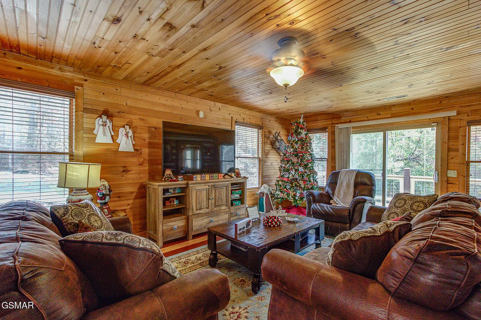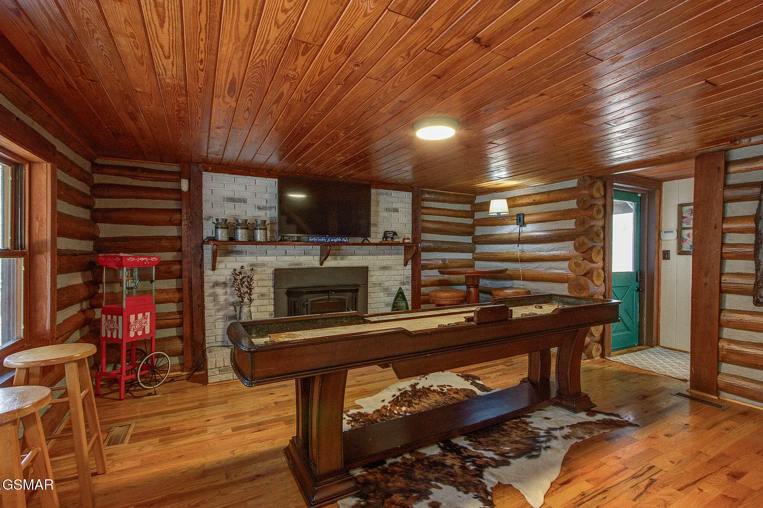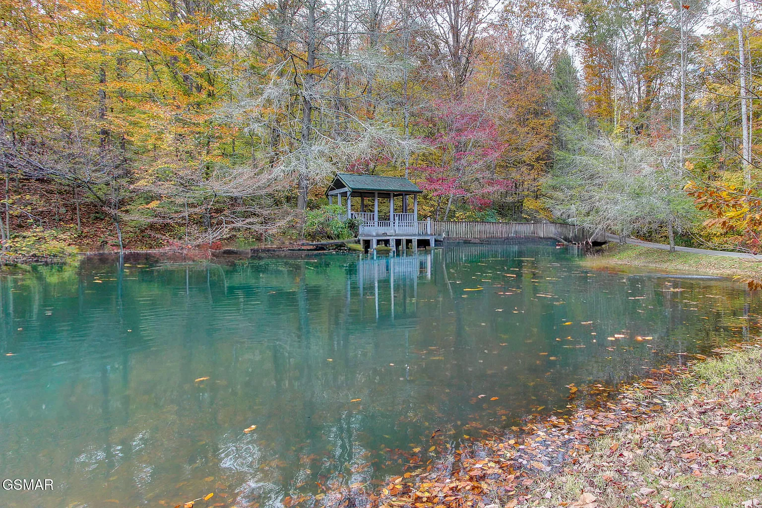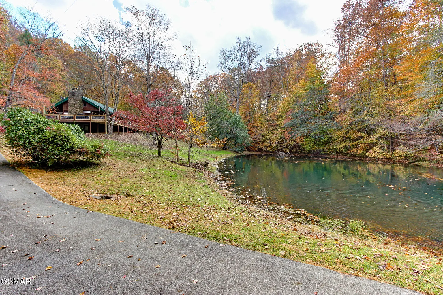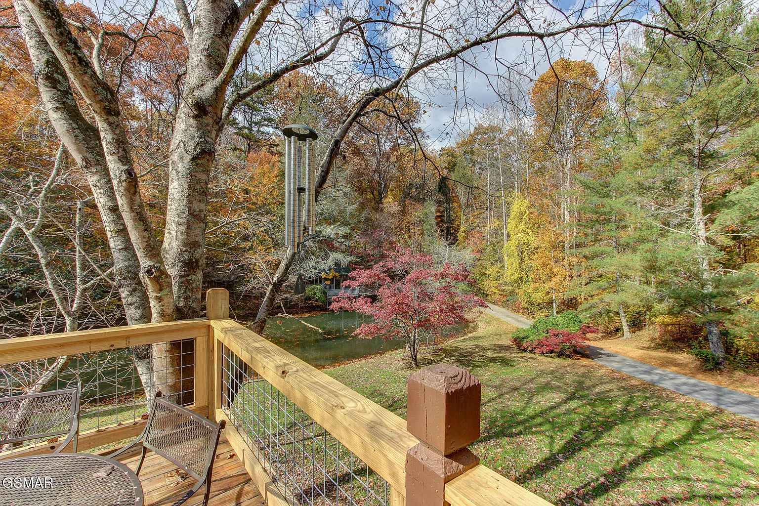 Nestled in the quiet Smoky Mountain Landscape, this 11.3-acre property at 1049 Alpine Road in Seymour, Tennessee, comes with a rustic log cabin graced with character, comfort, and ample space for recreation. Developed in 1979, the rustic cabin is set at the center of the property overlooking a spring-fed, stocked pond. Inside, the spacious layout offers 2,224 square feet of living space, featuring two bedrooms, four baths, a bright living room framed by large windows, a farmhouse-style kitchen, and a dining alcove beneath a vaulted, beamed ceiling. A cozy family room anchors the space with its woodstove-insert fireplace and full-size shuffleboard table, and a beautifully tiled full bath completes the floor. Upstairs, the two king bedrooms sit on either side of a central hallway, sharing a full bath with a vessel sink and tiled tub/shower. The lower level extends your options with a bonus queen room, a laundry area with a built-in bunk nook, and a third full bath featuring a luxe doorless shower. Outdoors, the half-wrap deck delivers a true mountain retreat experience with its hot tub, covered swing area, and dining space overlooking the pond and surrounding woods. Across the parking area, a charming guest cottage built from vintage logs adds even more flexibility, offering a king bed, breakfast area, and a bath with a clawfoot soaking tub. A short walk around the pond leads to a footbridge and a gazebo perfectly placed for quiet mornings and sunset views. Conveniently located just minutes from town and within easy reach of Pigeon Forge and Sevierville, this unique property is a perfect opportunity for anyone seeking a primary home, a natural retreat, or a successful rental. Don’t miss the chance to make it yours for a captivating price – schedule your private showing today!