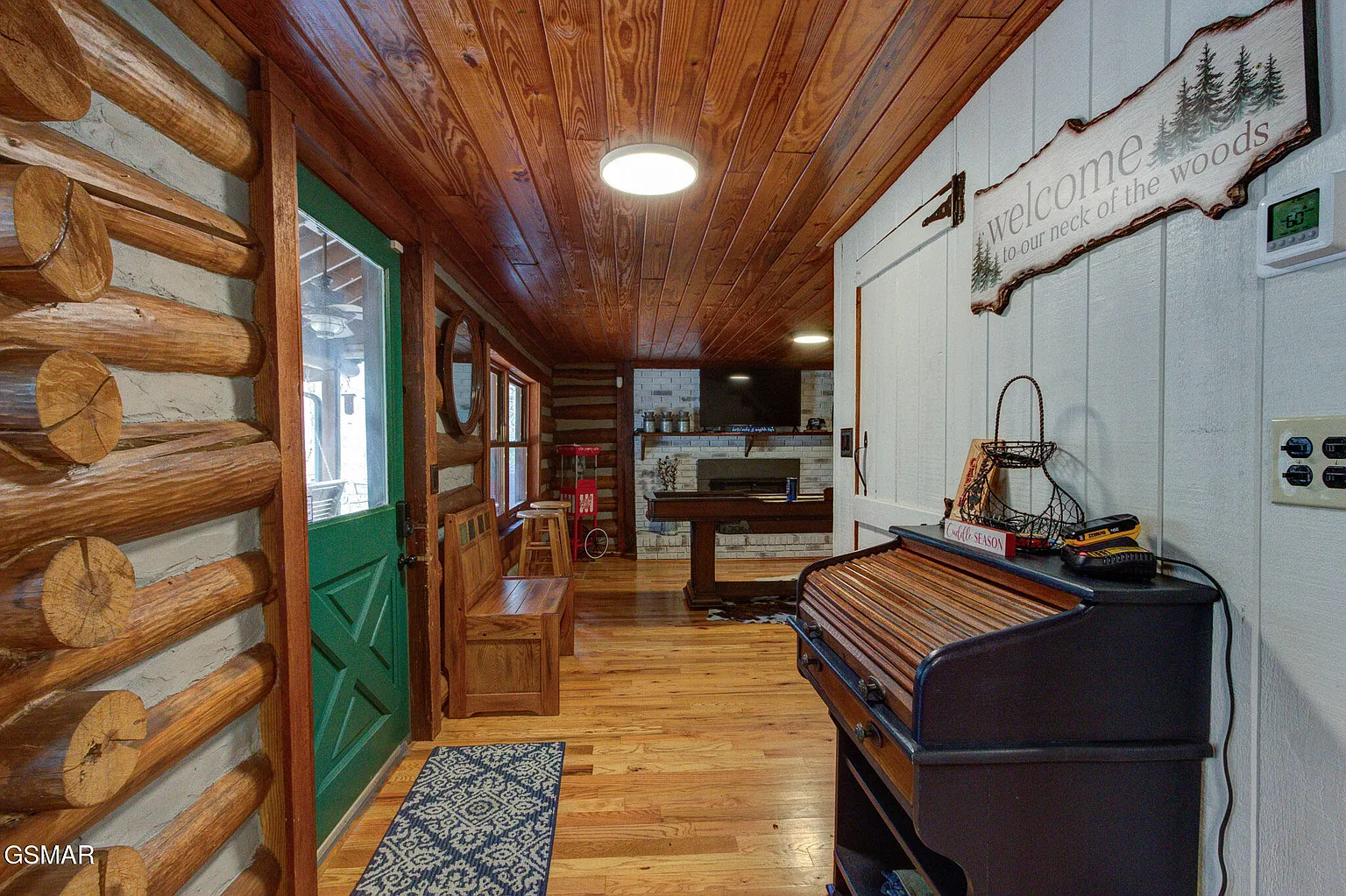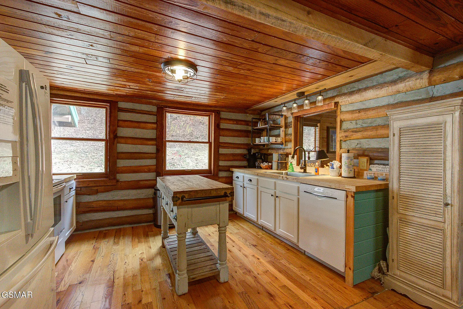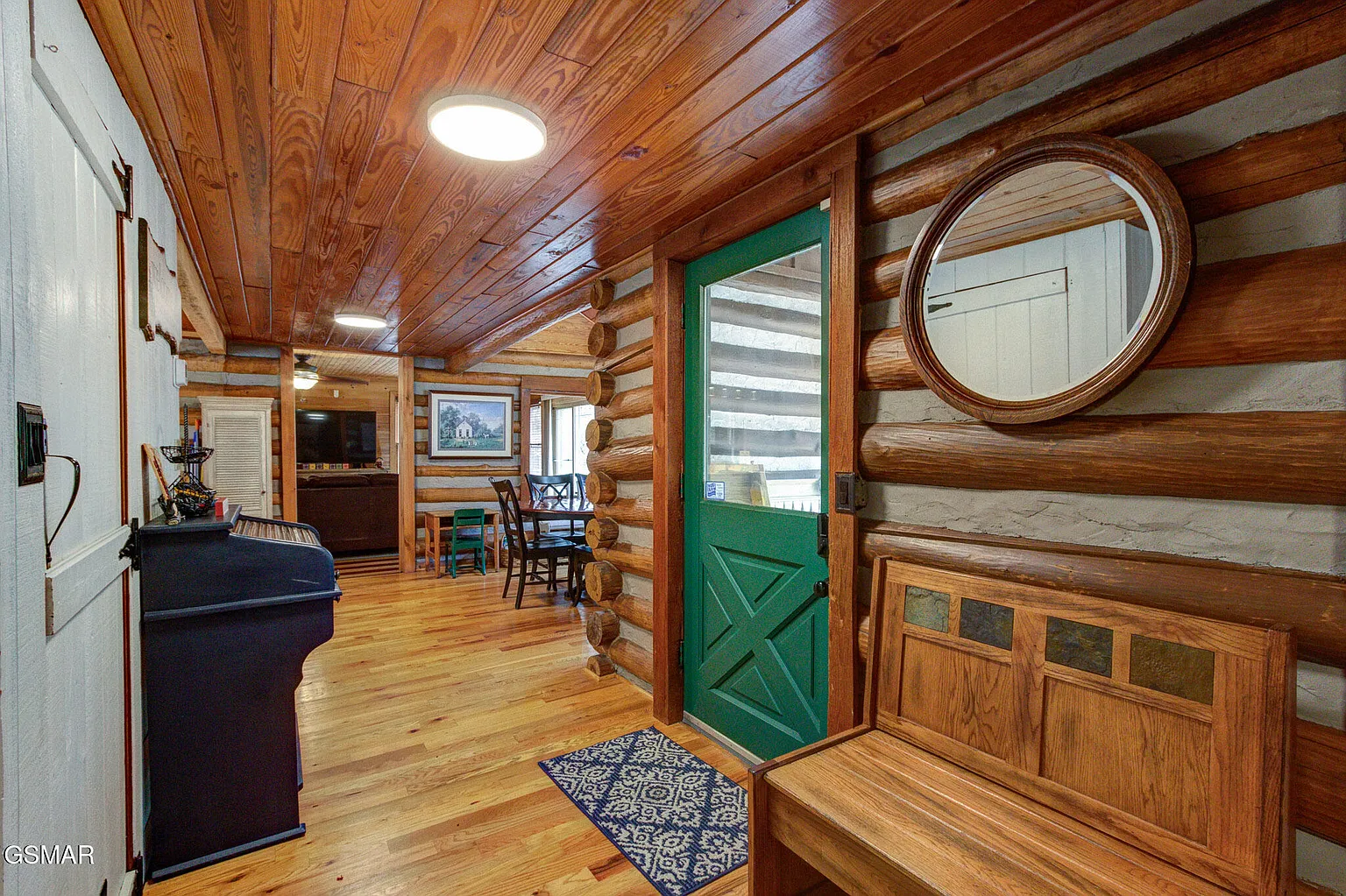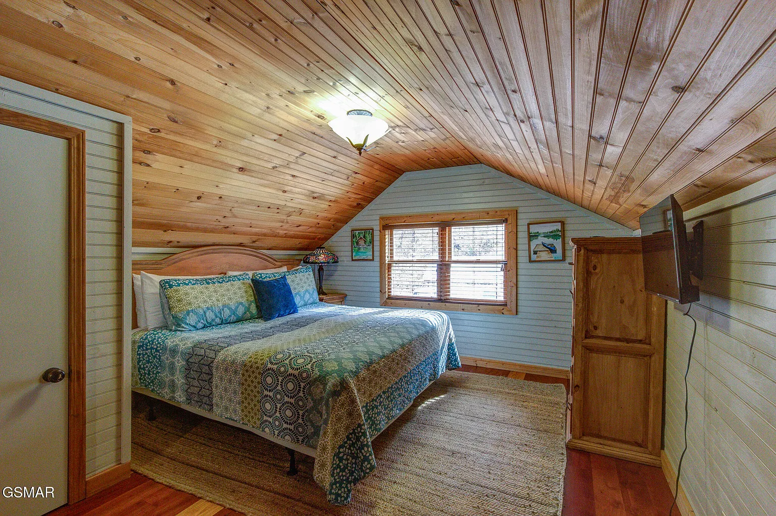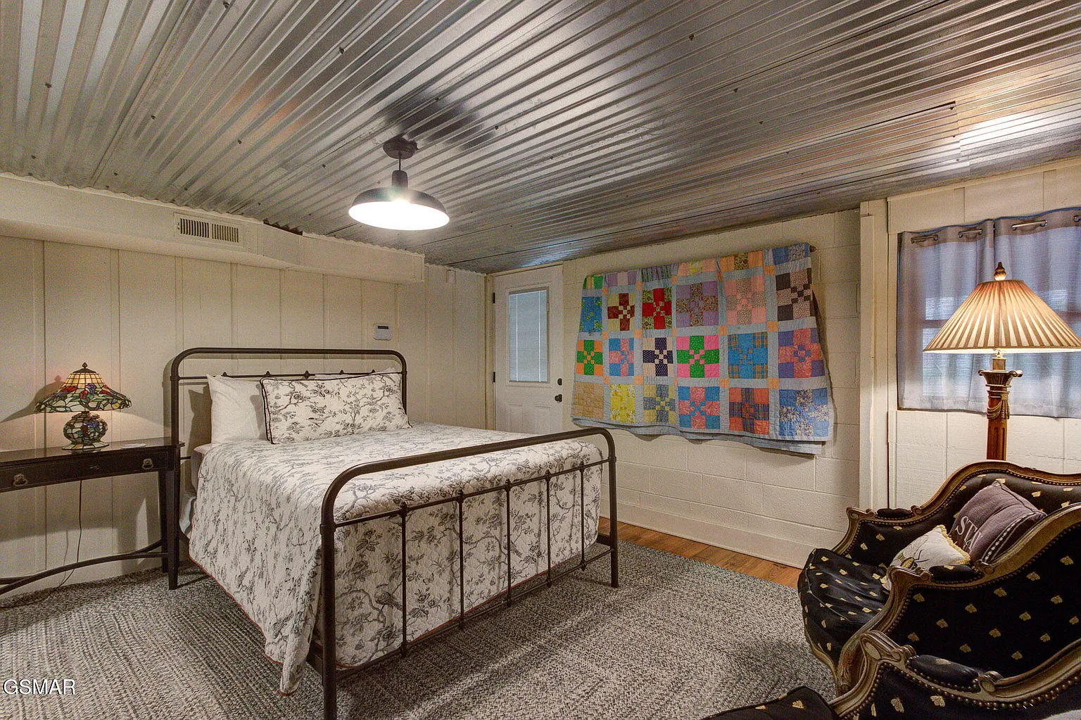 Nestled in the quiet Smoky Mountain Landscape, this 11.3-acre property at 1049 Alpine Road in Seymour, Tennessee, comes with a rustic log cabin graced with character, comfort, and ample space for recreation. Developed in 1979, the rustic cabin is set at the center of the property overlooking a spring-fed, stocked pond. Inside, the spacious layout offers 2,224 square feet of living space, featuring two bedrooms, four baths, a bright living room framed by large windows, a farmhouse-style kitchen, and a dining alcove beneath a vaulted, beamed ceiling. A cozy family room anchors the space with its woodstove-insert fireplace and full-size shuffleboard table, and a beautifully tiled full bath completes the floor. Upstairs, the two king bedrooms sit on either side of a central hallway, sharing a full bath with a vessel sink and tiled tub/shower. The lower level extends your options with a bonus queen room, a laundry area with a built-in bunk nook, and a third full bath featuring a luxe doorless shower. Outdoors, the half-wrap deck delivers a true mountain retreat experience with its hot tub, covered swing area, and dining space overlooking the pond and surrounding woods. Across the parking area, a charming guest cottage built from vintage logs adds even more flexibility, offering a king bed, breakfast area, and a bath with a clawfoot soaking tub. A short walk around the pond leads to a footbridge and a gazebo perfectly placed for quiet mornings and sunset views. Conveniently located just minutes from town and within easy reach of Pigeon Forge and Sevierville, this unique property is a perfect opportunity for anyone seeking a primary home, a natural retreat, or a successful rental. Don’t miss the chance to make it yours for a captivating price – schedule your private showing today!