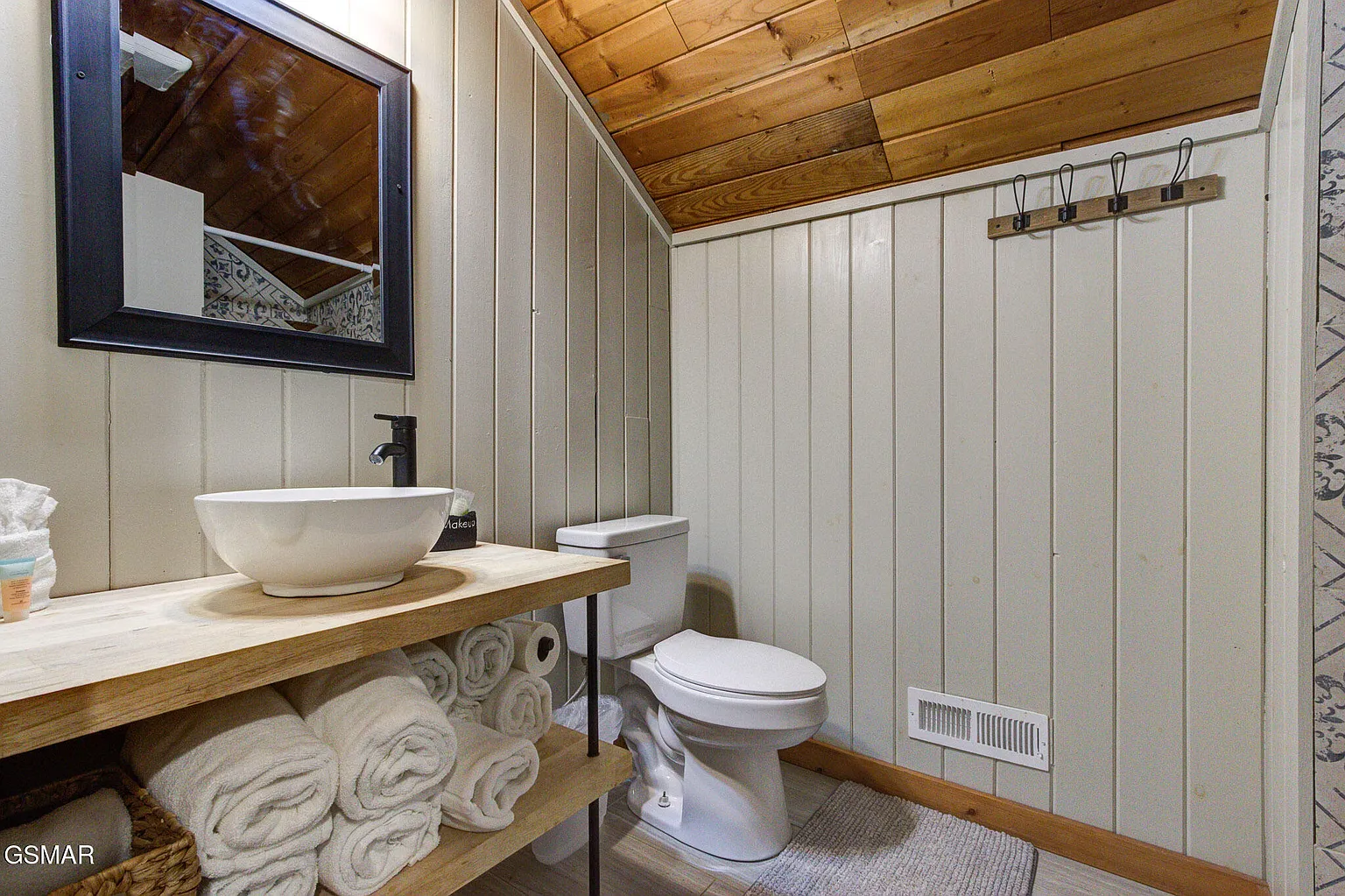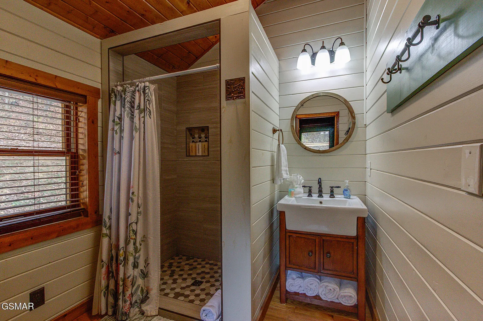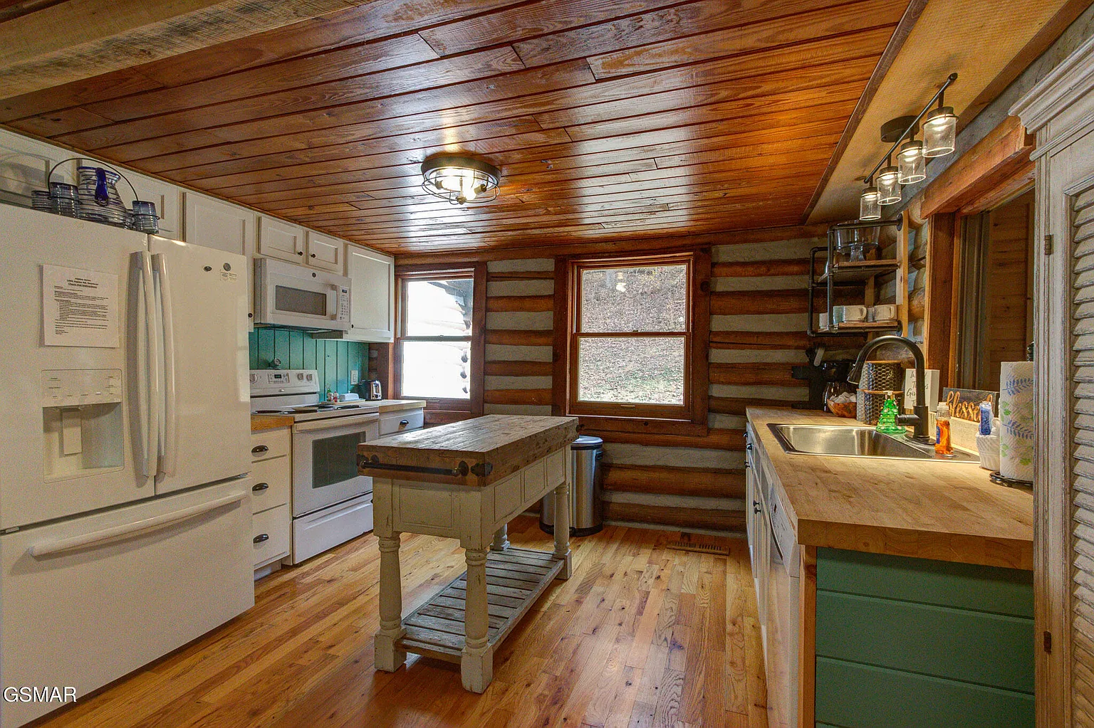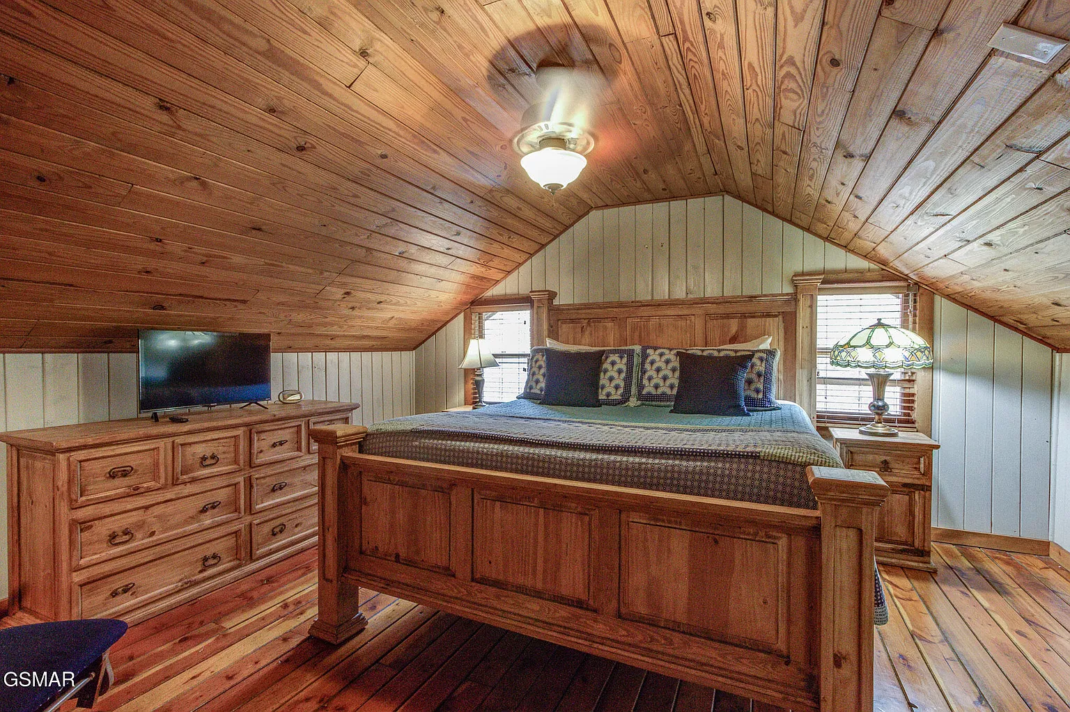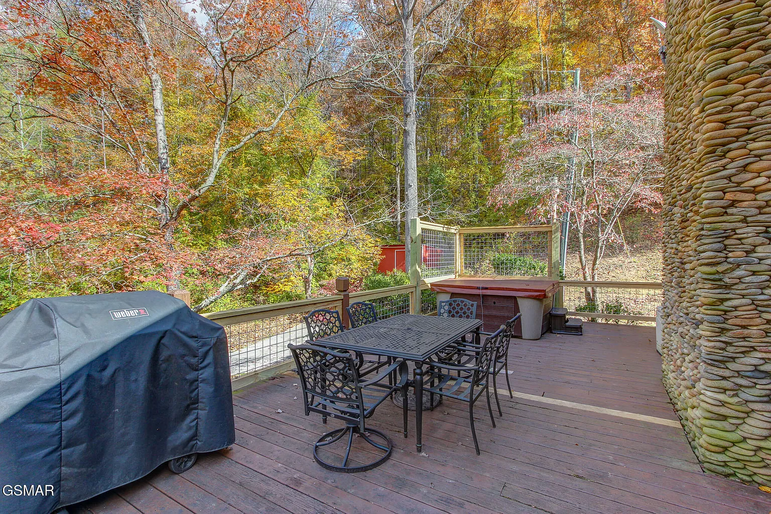 Nestled in the quiet Smoky Mountain Landscape, this 11.3-acre property at 1049 Alpine Road in Seymour, Tennessee, comes with a rustic log cabin graced with character, comfort, and ample space for recreation. Developed in 1979, the rustic cabin is set at the center of the property overlooking a spring-fed, stocked pond. Inside, the spacious layout offers 2,224 square feet of living space, featuring two bedrooms, four baths, a bright living room framed by large windows, a farmhouse-style kitchen, and a dining alcove beneath a vaulted, beamed ceiling. A cozy family room anchors the space with its woodstove-insert fireplace and full-size shuffleboard table, and a beautifully tiled full bath completes the floor. Upstairs, the two king bedrooms sit on either side of a central hallway, sharing a full bath with a vessel sink and tiled tub/shower. The lower level extends your options with a bonus queen room, a laundry area with a built-in bunk nook, and a third full bath featuring a luxe doorless shower. Outdoors, the half-wrap deck delivers a true mountain retreat experience with its hot tub, covered swing area, and dining space overlooking the pond and surrounding woods. Across the parking area, a charming guest cottage built from vintage logs adds even more flexibility, offering a king bed, breakfast area, and a bath with a clawfoot soaking tub. A short walk around the pond leads to a footbridge and a gazebo perfectly placed for quiet mornings and sunset views. Conveniently located just minutes from town and within easy reach of Pigeon Forge and Sevierville, this unique property is a perfect opportunity for anyone seeking a primary home, a natural retreat, or a successful rental. Don’t miss the chance to make it yours for a captivating price – schedule your private showing today!