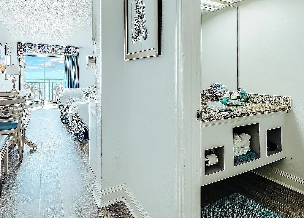 Sitting right next to the sand, this Myrtle Beach condo on 1207 S Ocean Blvd #20605 in Myrtle Beach, South Carolina, is a charming condo offering direct oceanfront views and a private balcony overlooking the Atlantic. Developed in 1977 and recently upgraded, this 375-square-foot unit features one bedroom and one full bathroom, perfect for a small family, a couple, or anyone looking for a low-maintenance vacation spot. The condo is fully furnished and comes with two queen beds, modern furniture, and fresh decor throughout. Inside, you’ll find a practical kitchen equipped with a stove, refrigerator, freezer, and microwave, along with granite countertops and a tiled backsplash. The flooring has been upgraded to durable laminate, and both the A/C and heating units have been replaced. The entire unit has been painted, and an electronic lock adds convenience for guests or renters. The building offers indoor and outdoor pools, a spa, and on-site laundry. Located within city limits and east of Highway 17, it’s just 10 minutes from the airport and close to Myrtle Beach’s top attractions, including the Boardwalk, Skywheel, Market Commons, and Broadway at the Beach. The property presents strong rental potential with a proven history and can be rented year-round or used part-time as a personal retreat. Schedule your private showing today and experience its practicality, its potential, and the breathtaking ocean views.