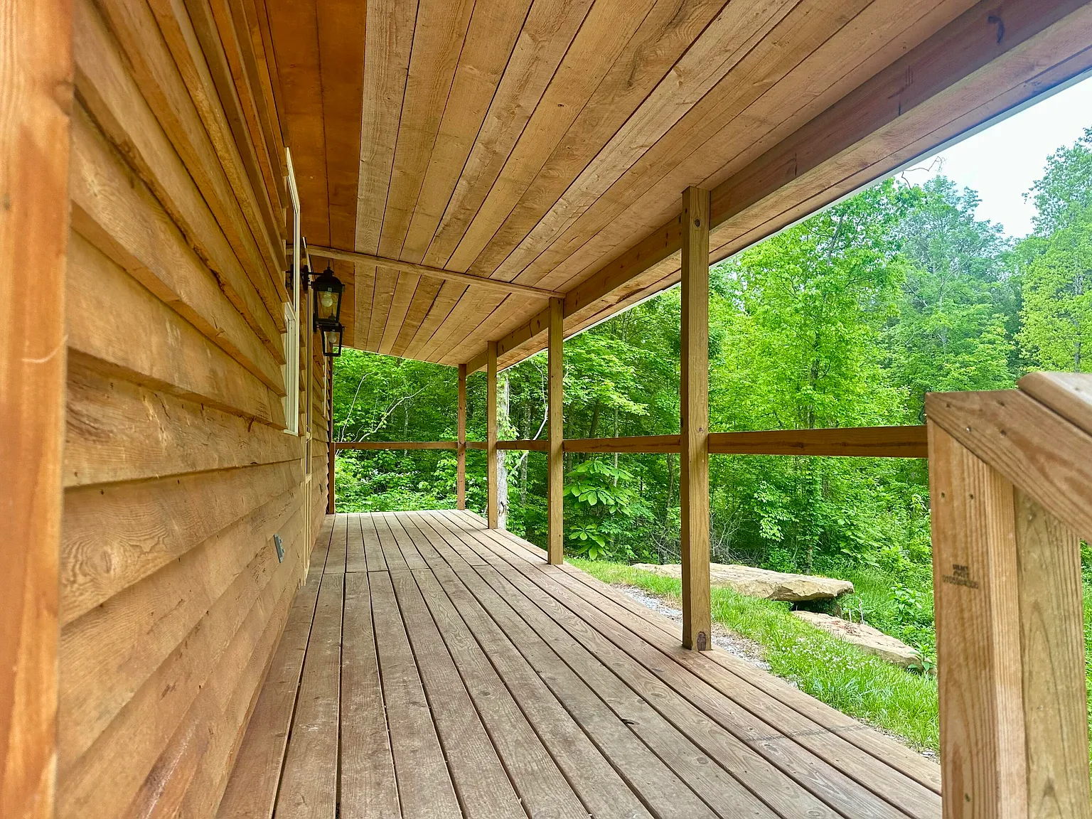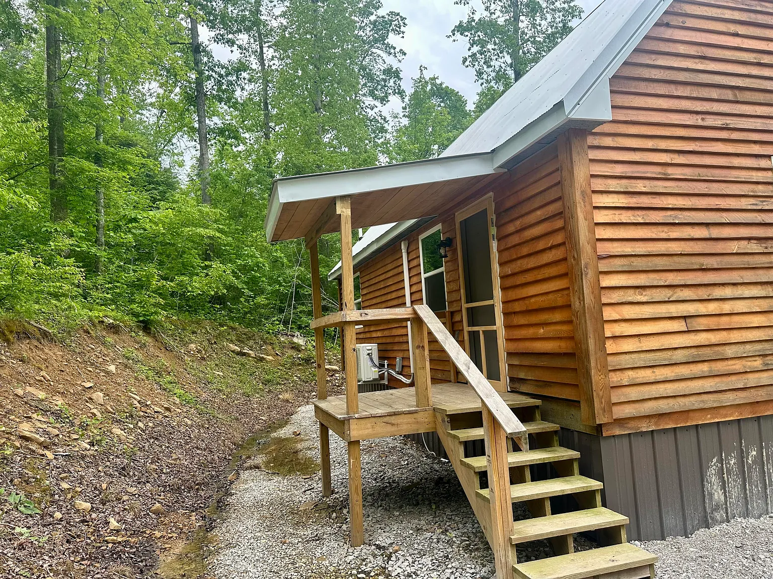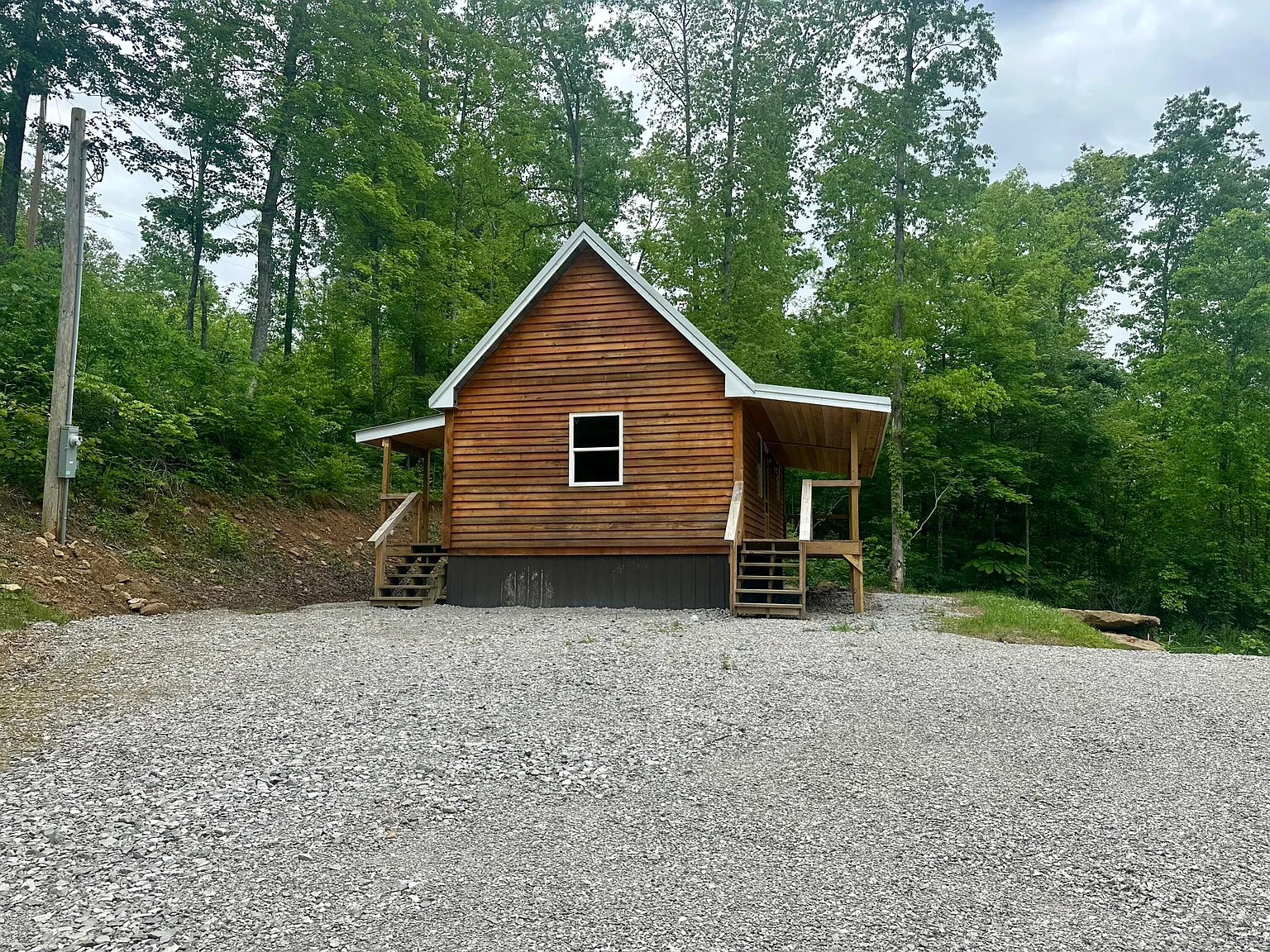 Nestled deep in the woods on 1807 Baldwind Road 7 in McKee, Kentucky, this brand-new 2025 cabin set on 8.78 acres offers a tranquil setting overlooking the North Fork of the Rockcastle River, delivering rustic charm and modern craftsmanship. Inside, the layout offers 600 square feet of living space featuring one spacious bedroom and one full bathroom, a warm and inviting atmosphere, barn-wood finishes, and vaulted ceilings. The living area flows into the kitchen with custom-made rustic cabinets, granite countertops, and appliances, including a refrigerator, a stove, a microwave, and a dishwasher. The main-level bathroom includes a shower, laundry area, and simple, practical finishes. Outside, you’ll find a full front porch where the view stretches across the treetops toward the river, offering the perfect spot to drink coffee, read, or just listen to the sounds of nature. The property’s 8+ acres are wooded and secluded, teeming with wildlife like deer and wild turkey. There’s even a campsite setup with electric and water hookups (30 & 50 amp) for guests or an RV. With public water, electricity, and a private septic system already in place, this cabin is move-in ready and low maintenance. Whether you’re dreaming of a weekend hideaway, a hunting retreat, or a simple place to unplug and recharge, this peaceful river-view cabin checks every box. Don’t miss the opportunity to make it yours – schedule your private showing today!
