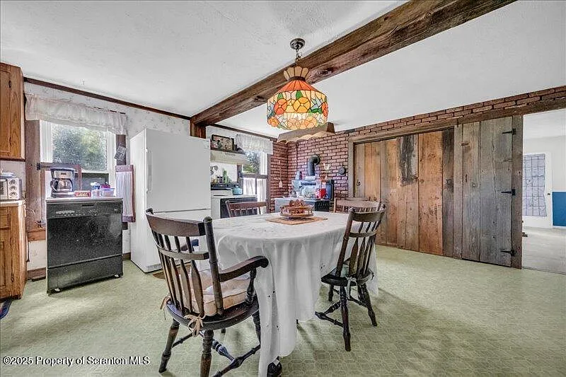 Outdoor enthusiasts, nature lovers, investors, hunters, and explorers alike – the property on 10846 Forest Lake Road in Montrose, Pennsylvania, is seeking new owners and calling your name. Set across 17.4 scenic acres in a quiet rural setting, this two-story home offers space, privacy, and a landscape ready for your vision. Developed in the 1900s, the home offers 2,000 square feet of living space, blending classic layout with room to spread out both indoors and out. Inside, you’ll find three spacious bedrooms, one full bath, one half bath, and a spacious eat-in kitchen with views overlooking the pond, creating a natural gathering spot for daily living. Multiple living areas include a large living room and a separate family room, along with a bonus room that offers flexibility for hobbies, office space, or storage. Main-floor laundry adds everyday convenience. Flooring throughout includes a mix of carpet, wood, vinyl, and laminate. Heating is oil-fired forced air, with ceiling fans providing air circulation. The home includes a full walk-out basement with a dirt floor and crawl opening attic access. Appliances included are a refrigerator, dishwasher, free-standing electric range, washer, and dryer. The outside land is a true highlight, featuring a meandering creek, a pond, open areas, and pockets of mature woods perfect for exploration, outdoor recreation, or hobby farming. A large barn provides ample storage or future use options, and a covered side porch offers a quiet place to enjoy the views. The property is served by a well and septic system and is zoned R1. Sold as-is, this property presents a rare opportunity for buyers seeking acreage, natural beauty, and a versatile rural retreat with long-term potential.