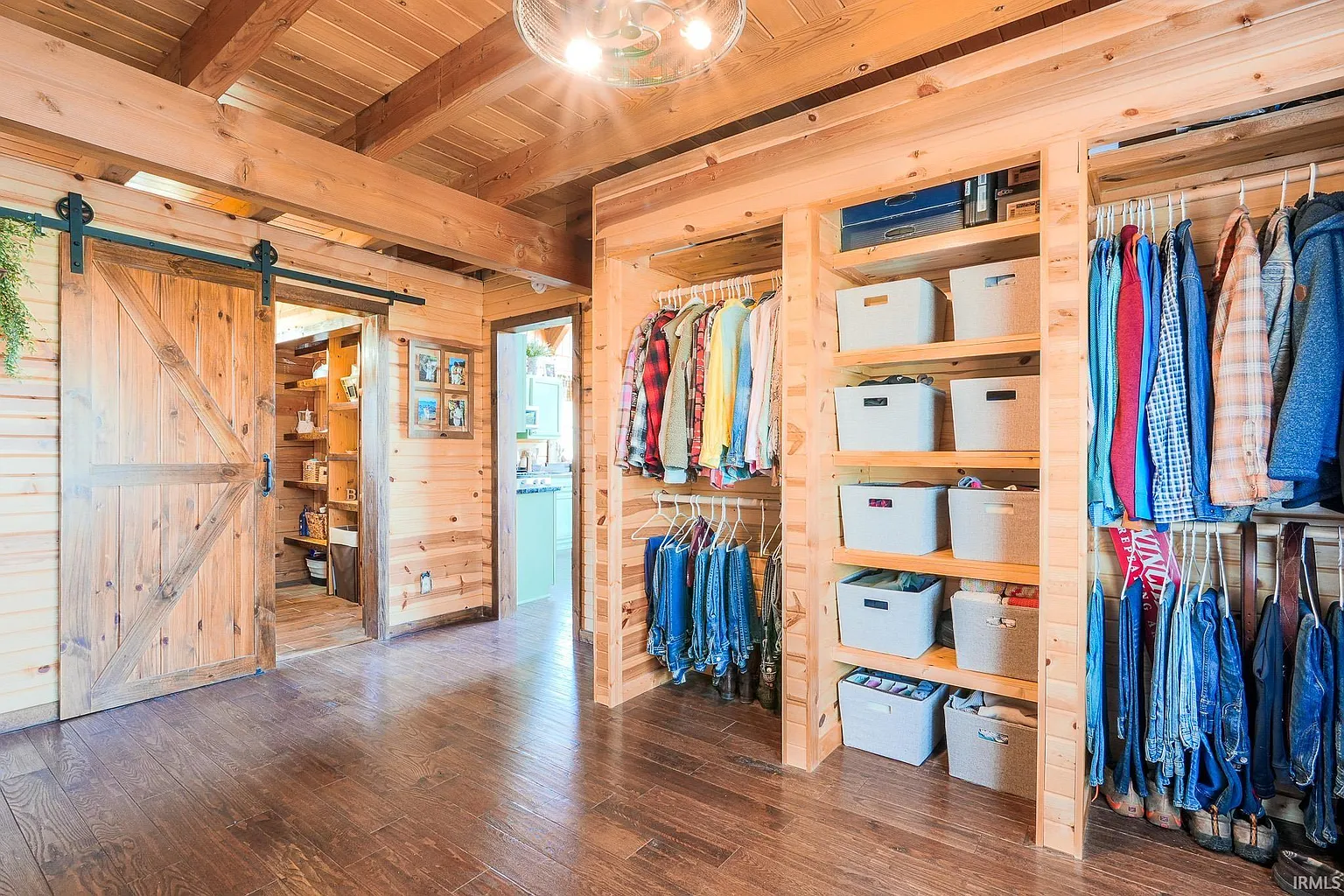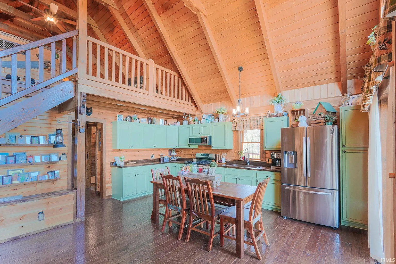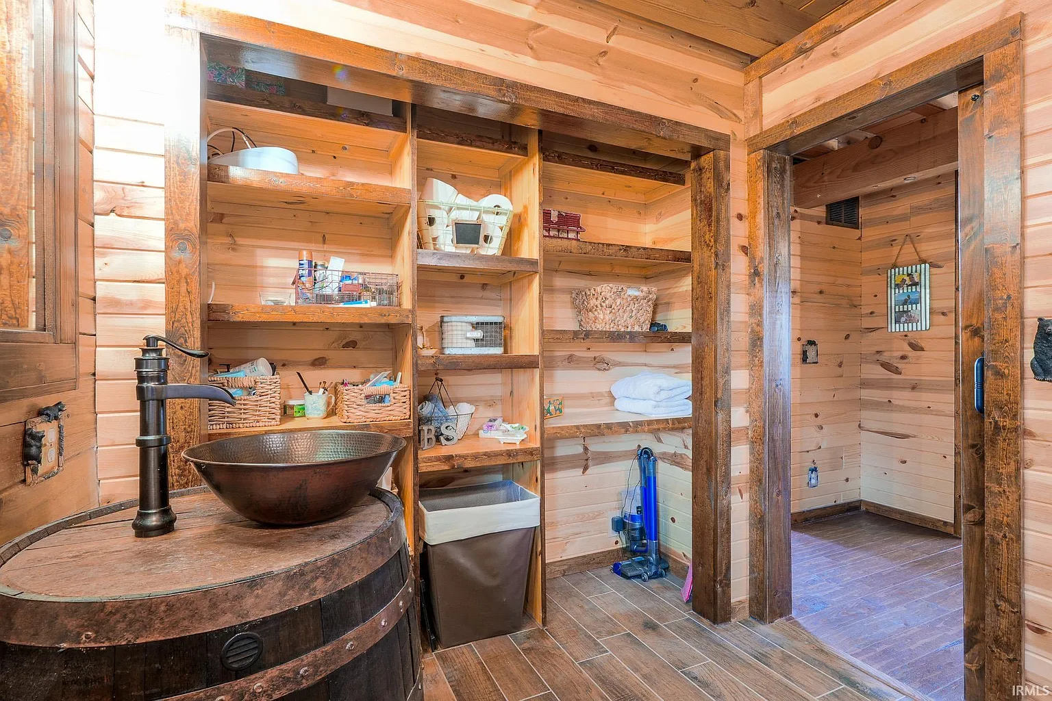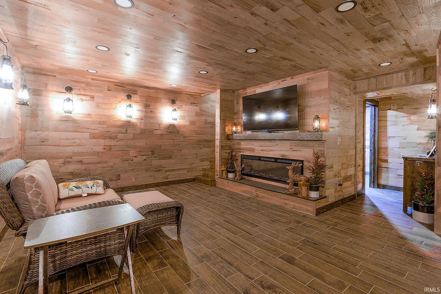 Nestled back from the road on a quiet 1.59-acre lot, on 1247 North Wayne Street in Warren, Indiana, this warm and welcoming log cabin offers a unique blend of privacy, charm, and easy access to town. Developed in 1999, the home has been thoughtfully maintained and updated, backing up to a wooded area with tranquil pond views from multiple vantage points, including the great room, loft bedroom, and wraparound decks. Frequent wildlife sightings add a sense of calm and connection with nature, perfect for outdoor enthusiasts, hunters, and explorers alike. Inside, you’ll find 1,944 square feet of warm and inviting living space, featuring two spacious bedrooms and two full baths. The main level features an open layout graced with walnut hardwood floors, large windows that flood the space with natural light, and a wood-burning fireplace that anchors the living area. The remodeled bathroom has a clean, modern look, while the kitchen and dining area maintain the cabin’s natural wood aesthetic. Upstairs, the loft bedroom overlooks the living space below, giving a cozy, tucked-away feeling. Downstairs, the finished basement adds flexibility and warmth with an electric fireplace, a walk-in closet, and a half bath. A newer HVAC system, metal roof, gas stove, washer, and dryer have all been recently updated, along with fresh landscaping and young trees planted for future privacy. The covered front porch and new back deck are perfect for relaxing, entertaining, or simply taking in the quiet views. An attached two-car garage makes daily life easy year-round. Whether seeking a private nature retreat, a hunting base, or an escape from the noise, this cabin offers the perfect mix of rustic living and modern comfort. Don’t miss the opportunity to make this ideal countryside retreat yours – schedule your private showing today!