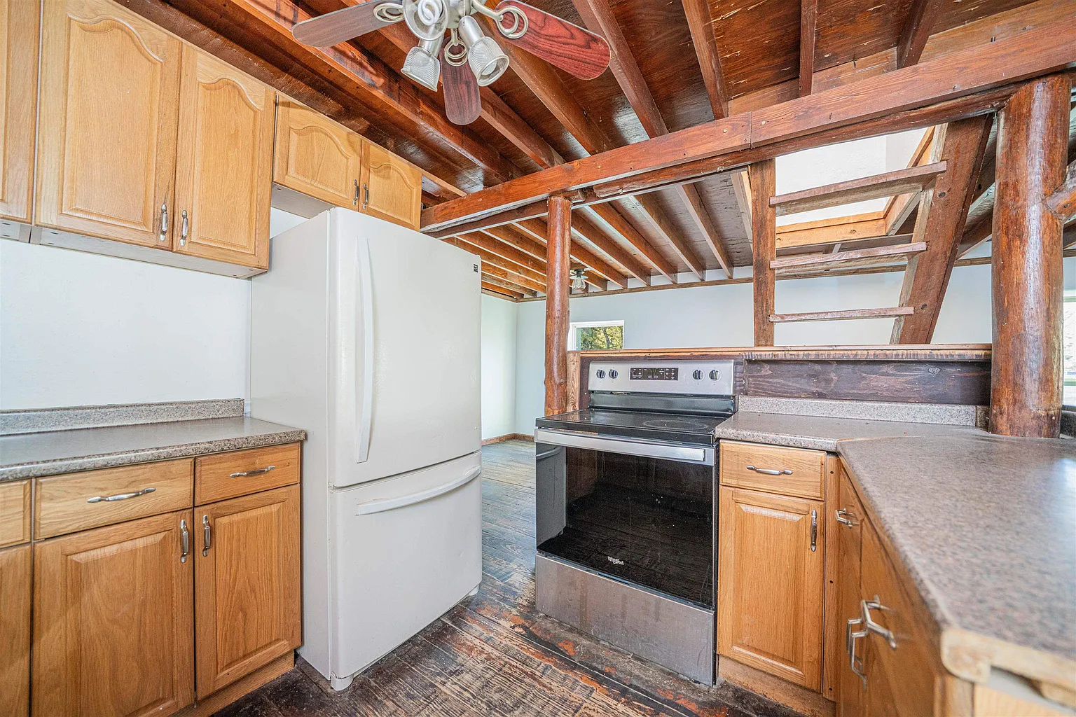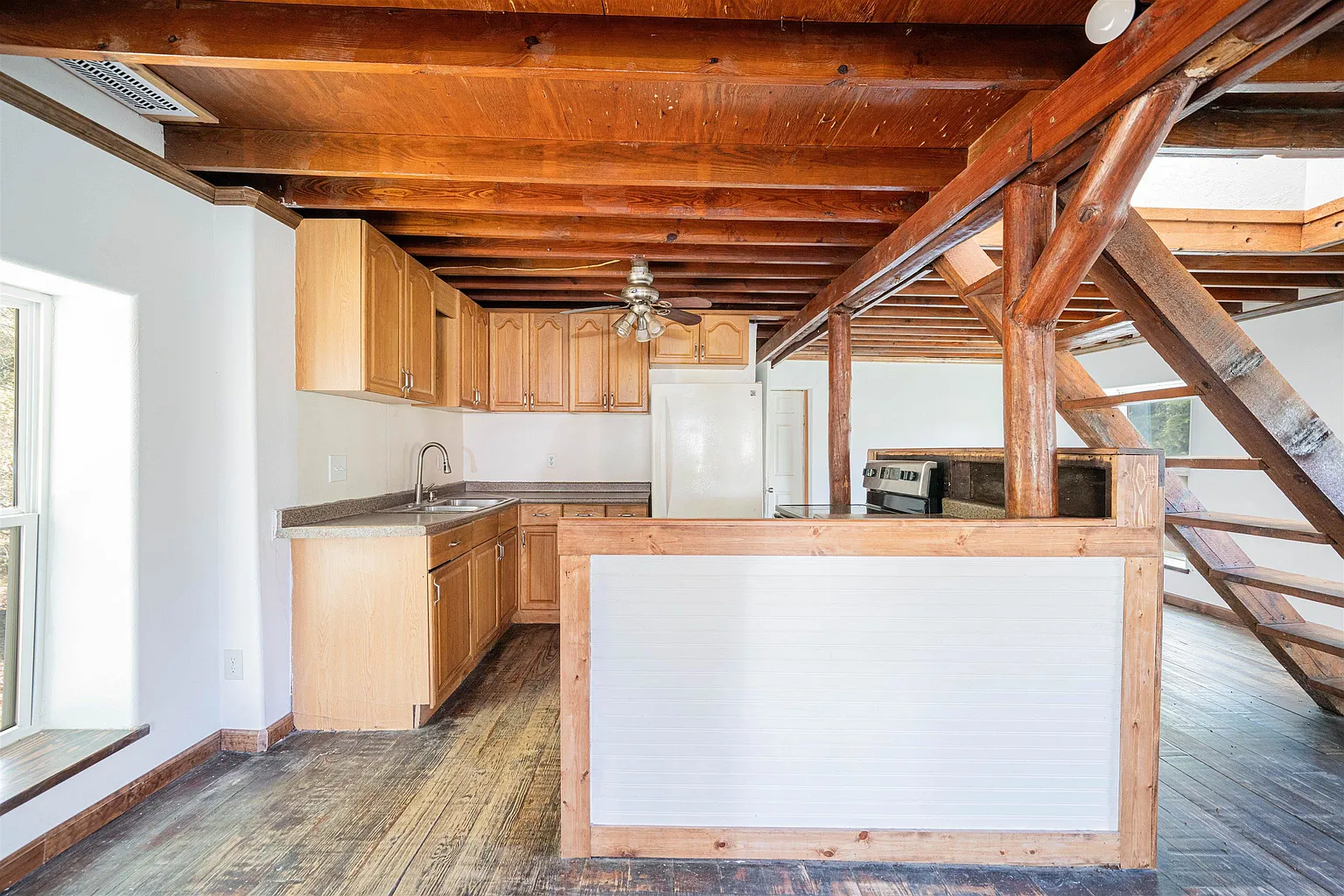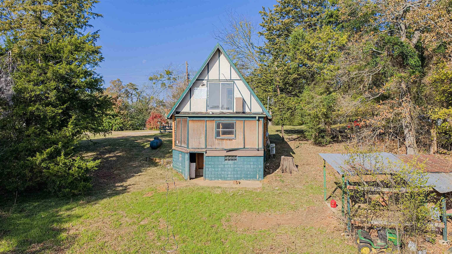 Nestled at the end of a quiet, secluded road, this rare log cabin on 13312 Mountainview Road S in Winona, Texas, offers a rare blend of privacy, character, and opportunity on 3.01 acres in East Texas. Developed in 1986, the home offers 900 square feet of living space featuring two generously sized bedrooms and two full bathrooms with a distinctive log cabin design. From the moment you arrive, you’ll be met with a charming front porch, while a metal roof adds durability to the rustic exterior. Inside, the cabin is graced with hardwood flooring and a functional layout across one and a half levels. The home has seen partial updates, including newer windows, some fresh chinking, new drywall in select areas, and updated paint. Heating and cooling are provided by a central electric system, and appliances include an electric range/oven and an electric water heater. A dedicated laundry room adds everyday convenience. Outside, the property overlooks a wooded slope in the back, creating a peaceful, scenic setting that enhances the cabin’s natural surroundings. The acreage is partially wooded with mixed vegetation and includes additional storage buildings for extra space. With no garage and a pillar/post/pier foundation, the focus here is on privacy, land, and the cabin’s unique character. Conveniently located near I-20 with access to Tyler, Kilgore, and Longview, this property offers a private setting with regional connectivity. With some remaining work needed, it presents a solid opportunity for buyers looking to renovate, customize, or explore future use as a weekend retreat or short-term rental.