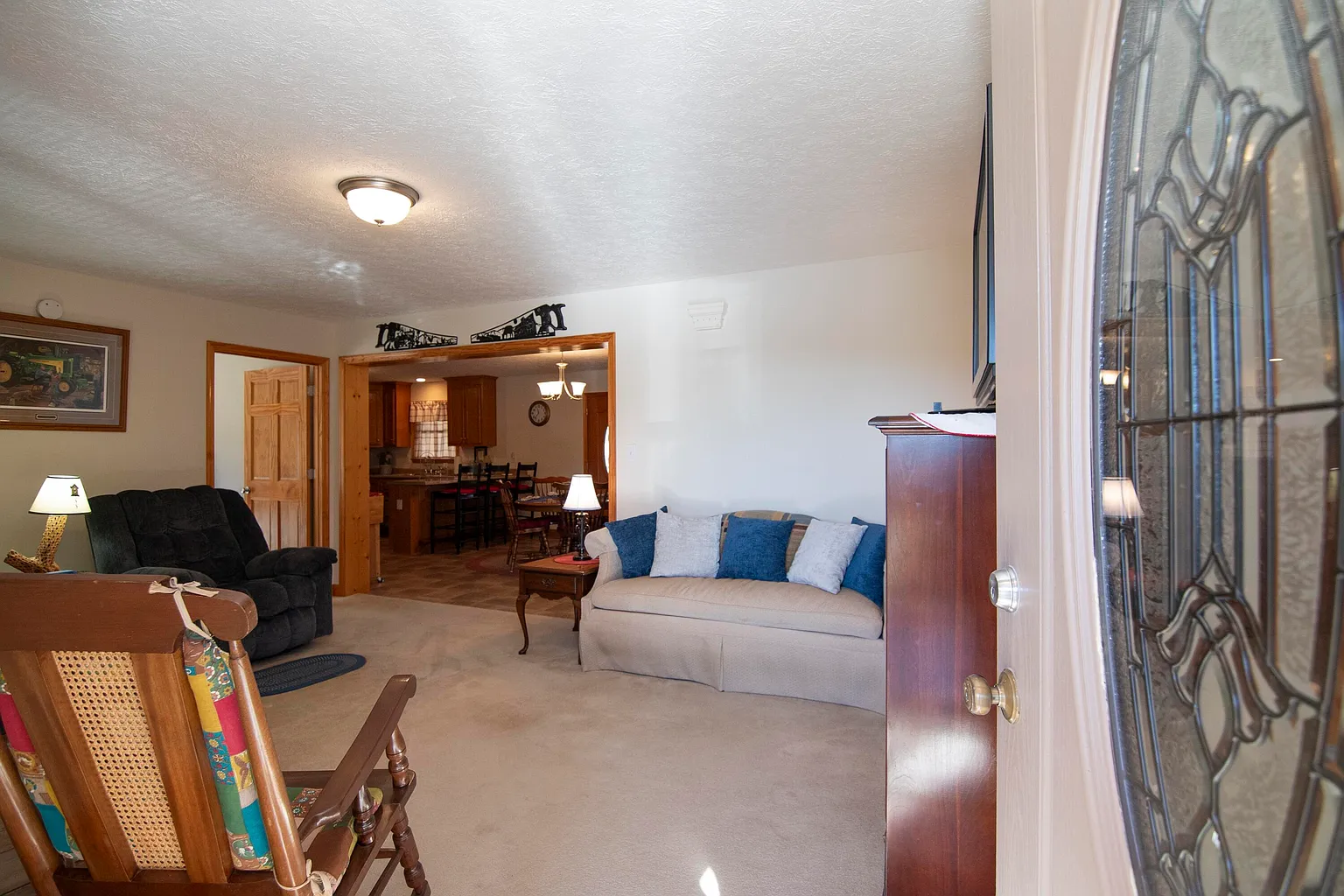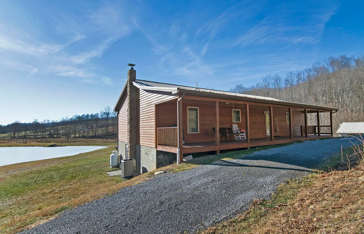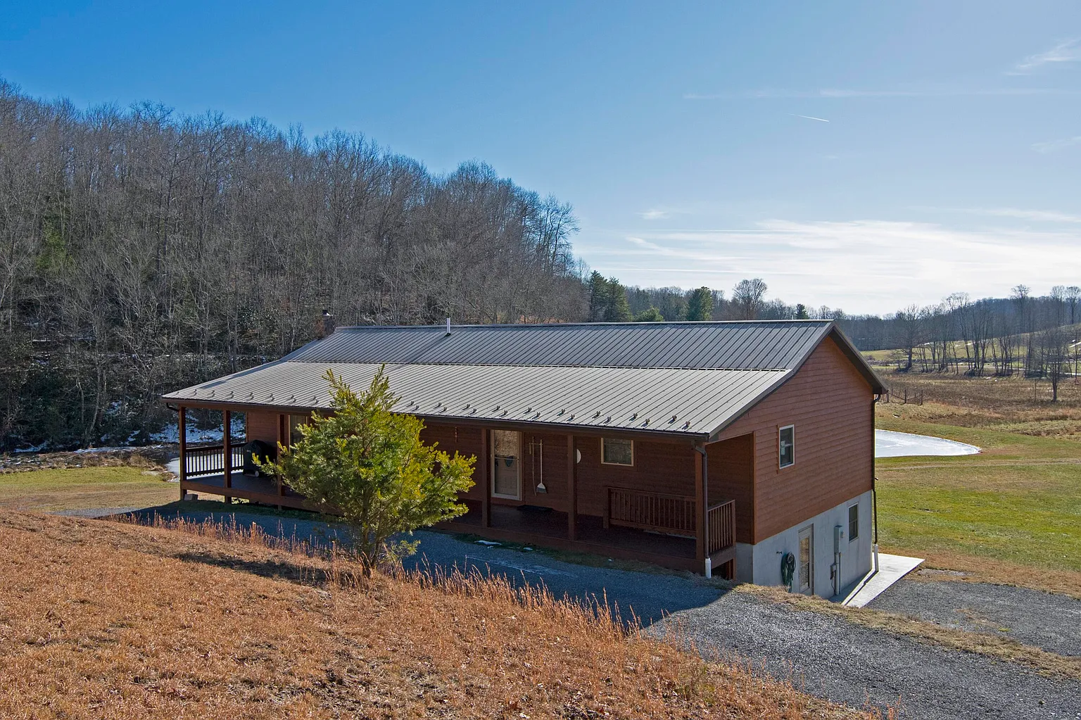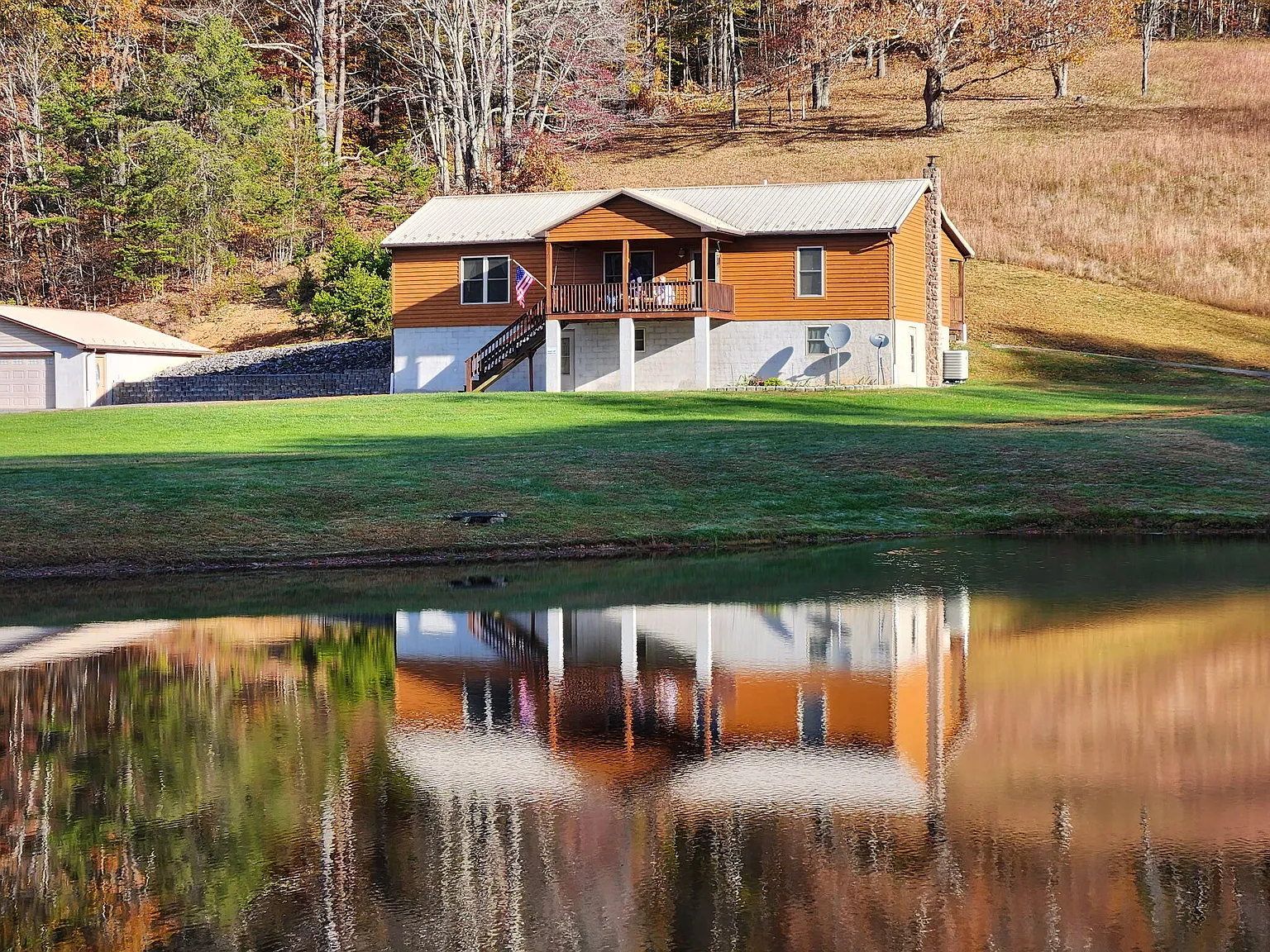 Nestled in the high hills of Renick, West Virginia, on 10571 Leonard Cordova Road, this private mountaintop farm offers 48.68 acres of peaceful West Virginia countryside with a cedar-sided residence. Developed in 2012, the land features approximately 10-12 acres of open meadows with the remaining acreage wooded, creating a quiet, secluded setting surrounded by abundant wildlife. Inside, the home features 1,600 square feet of living space, comprising four bedrooms and two and a half bathrooms. The main level features oak cabinets and trim throughout, a kitchen with a bar that opens to the dining area, and a primary bedroom with an attached full bath. Flooring features carpet and vinyl, with recessed lighting and solid-surface bath counters. An electric heat pump provides heating, and the home is equipped with central air conditioning. A full walk-out basement adds flexibility, with approximately 300 square feet partially finished using reclaimed wormy chestnut from the original early-1900s farm. A wood-burning stove is also located in the basement, providing supplemental heat. Outdoor features include a covered front porch overlooking a spring-fed pond with a floating dock, open meadows, and scenic mountain views. A covered back deck offers additional space for relaxing or entertaining. The property includes four site-built outbuildings: an oversized 30×40 block garage, a cellar with an upper structure, a storage building with an attached workshop, and a woodshed. With ponds, meadows, woods, and panoramic views, this move-in-ready farm offers a rare combination of usable land, privacy, and natural beauty with no HOA restrictions. Don’t miss the opportunity to make it yours for an incredible price – schedule your private showing today!