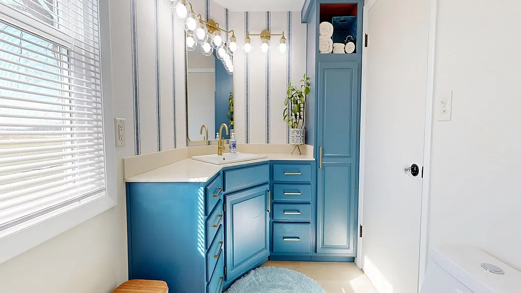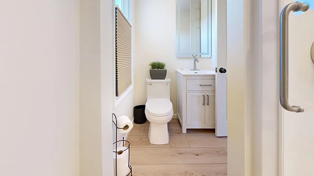 The kitchen has been upgraded with new cabinets, appliances, and plumbing, making it functional and modern.