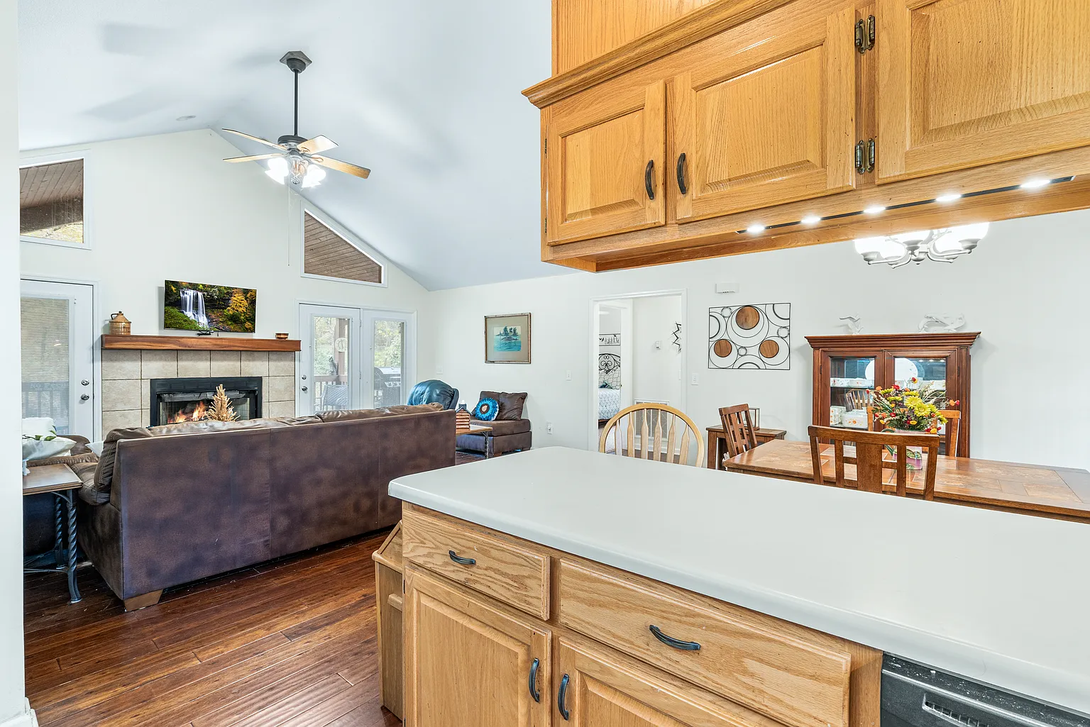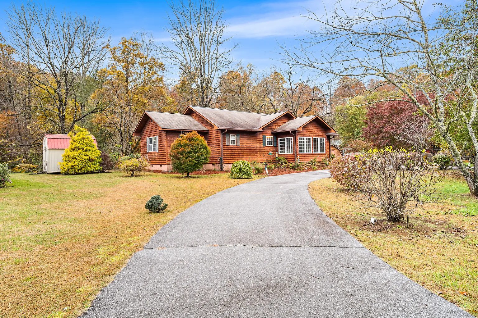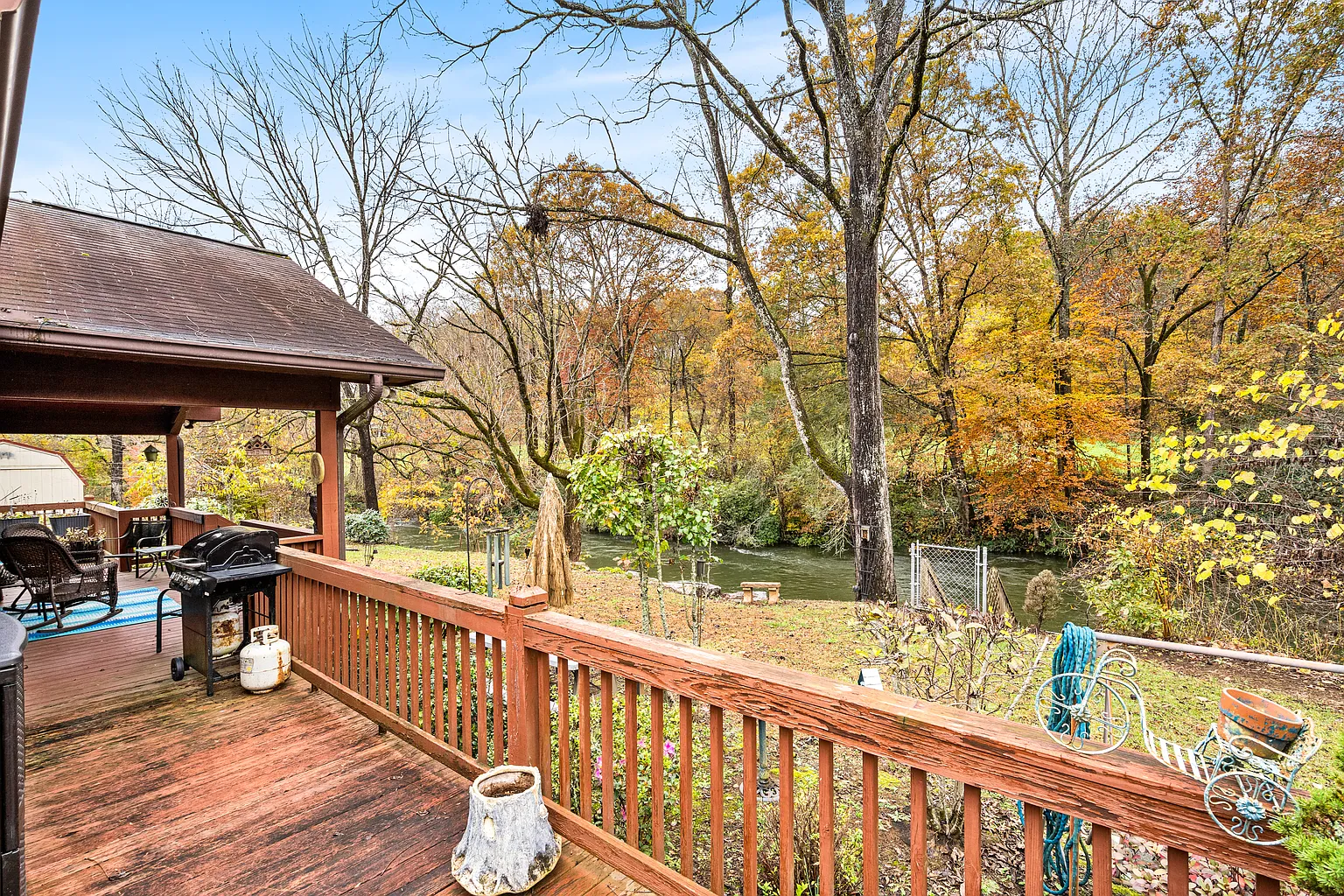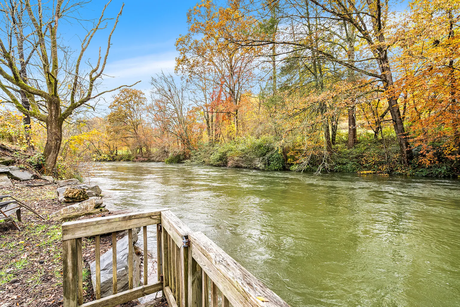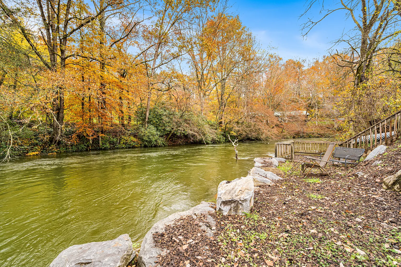 Nestled along the banks of the Hiwassee River, on 251 Rivers Edge Drive, in Hayesville, North Carolina, this charming cabin offers a cozy one-level living with mountain charm and natural beauty. Developed in 1999, the open floor plan brings together a spacious great room with a cathedral ceiling, a stone gas-log fireplace, and a dining area that flows easily into a well-appointed kitchen. Two bedrooms and two bathrooms sit on the main level, along with a den or office, a laundry room, and a bright sunroom. Outside, you’ll find a back deck and enjoy the scenic river views, or wander down to the deck built right over the riverbank, where you can relax, fish, or just listen to the water. The lot includes 0.59 acres with a mix of level and gently sloped ground, offering mountain and river views from multiple angles. Parking is off-street, utilities are available, and the property is connected to public water with septic in place. Tucked within the Rivers Edge community and conveniently located just minutes from local shops and dining, this cabin blends the tranquility of true riverfront living with convenience and practical updates. It’s move-in ready for anyone seeking comfort, scenery, and a peaceful mountain pace without giving up on essentials. Don’t miss the opportunity to make it yours – schedule your private showing today!