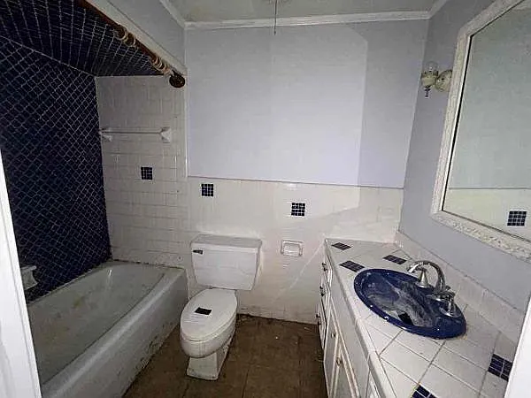 The single-family home features 4 bedrooms and 3.5 bathrooms with approximately 2,474 square feet of living space, making it ideal for a large family or flexible living arrangements. The interior has a traditional layout and is being sold as-is, offering a great opportunity for buyers looking to update and add value.