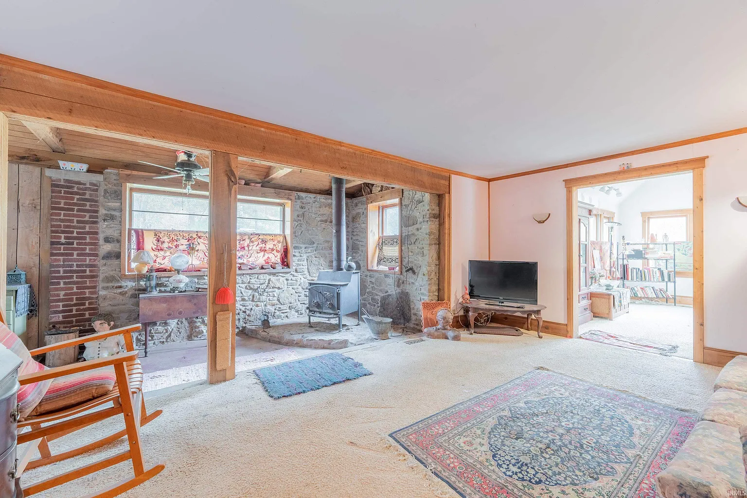 Outdoor enthusiasts, investors, hunters, and nature lovers alike – discover the property at 8612 East McVille Road in Solsberry, Indiana, offering peace and tranquility on 20 pristine wooded acres. Developed in 1987, the home carries a unique sense of character and thoughtful design throughout, offering 1.746 square feet of living space featuring three spacious bedrooms, one full bath, a spacious family room, a cozy living room, and an upstairs loft perfect for an office or creative studio. The kitchen and main living areas offer endless potential for customization. While the home does need some TLC and won’t qualify for FHA, USDA, or VA financing, it’s easy to see the promise in every corner. The property’s natural surroundings, including intentional plantings around the home, blend seamlessly into a forest filled with mature trees, a meandering creek, and even a seasonal waterfall. Every direction offers a peaceful view, with space to explore, garden, or simply enjoy the quiet. In addition, you’ll find a detached two-car garage, private well, and septic system to complete the setup, keeping things simple and self-sufficient. Sold as-is for a captivating price, the home is perfect for anyone looking to restore a property with soul and history. Don’t miss the opportunity to make it yours – schedule your private showing today!