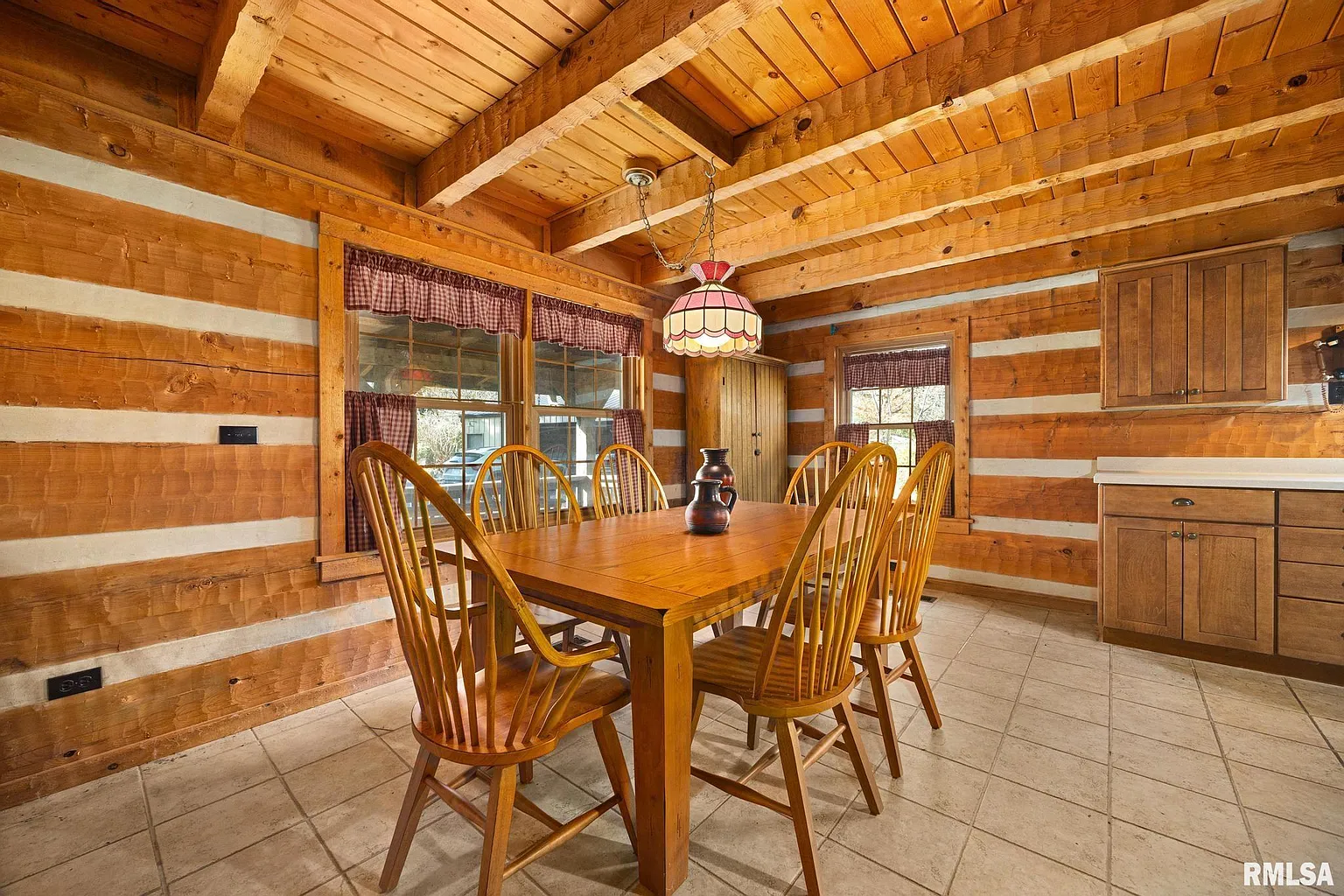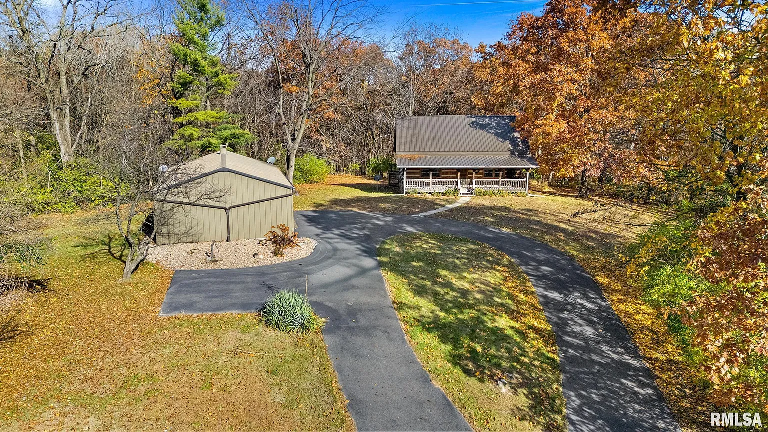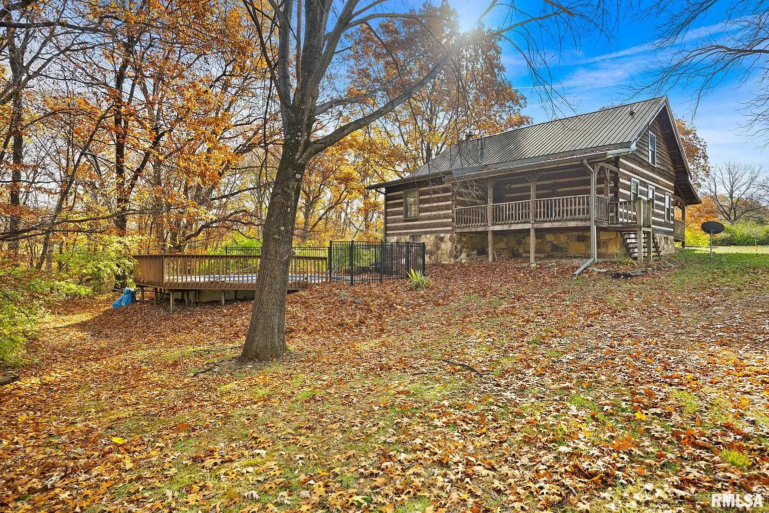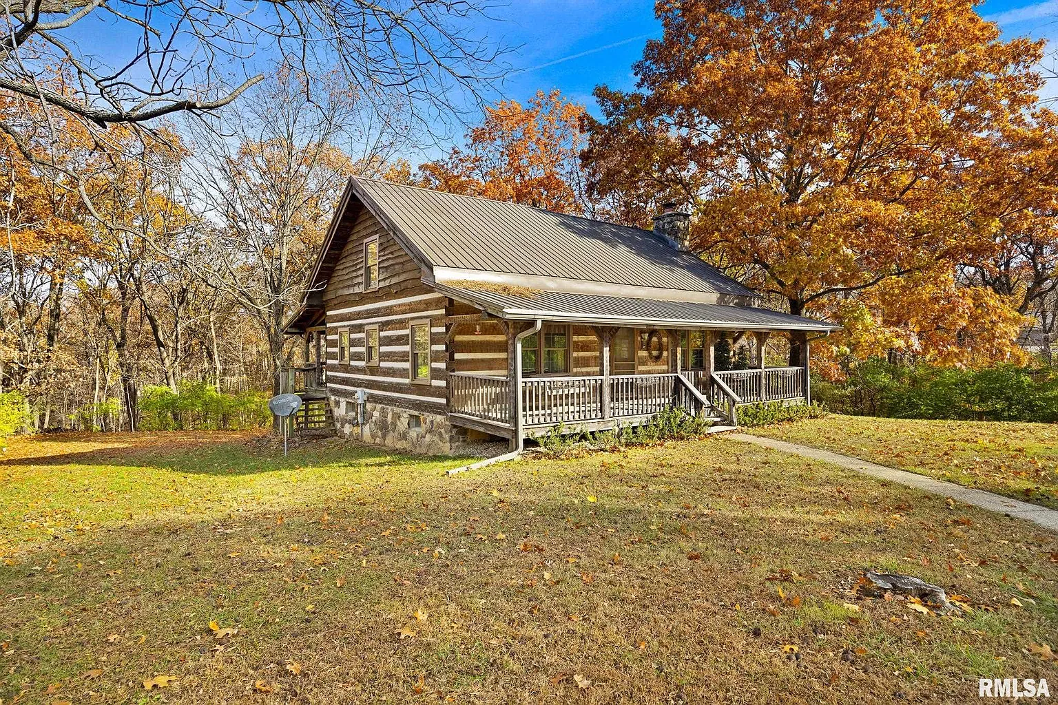 Nestled on 5 wooded acres on 438 Tazewood Road in Metamora, Illinois, this hand-crafted log cabin blends rustic character with everyday comfort, perfect for nature lovers, outdoor enthusiasts, investors, and adventure-seekers alike. Developed in 1988 with timeless craftsmanship, the home spans 1,986 square feet of warm wood tones, natural light, and thoughtful spaces. Inside, the main level features a cozy living room with exposed beams and a wood-burning fireplace, a spacious kitchen perfect for gatherings, and a comfortable bedroom. In addition, a mudroom adds convenience for outdoor seasons and daily life. The upper floor offers a generous 34’x25′ open loft offering endless possibilities for a guest area, studio, office, or a quiet retreat overlooking the living room, adding flexibility. The full unfinished basement provides additional storage space or room for future expansion. The home is equipped with propane forced-air heat, central air, and included appliances. Outside, the setting delivers everything people hope for in a private cabin escape. Mature trees surround the property, a porch offers a spot to watch wildlife drift through, and the level acreage makes the land easy to use. An oversized 2.5-car detached garage provides space for vehicles, tools, and hobbies, and an above-ground pool adds a fun touch for warm weather. Conveniently secluded yet within easy reach of town, this property offers a rare chance to own a true log-cabin retreat where comfort, history, beauty, and potential come together. Don’t miss the opportunity to make it yours – schedule your private showing now!