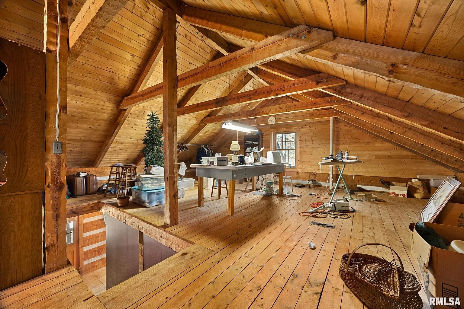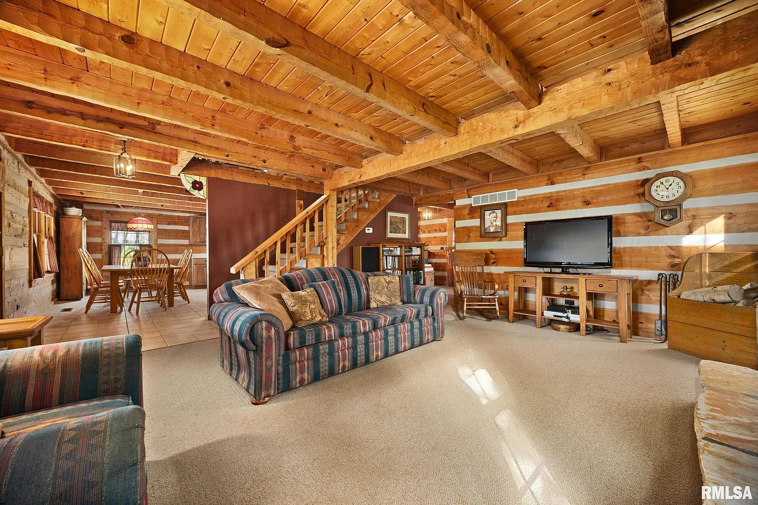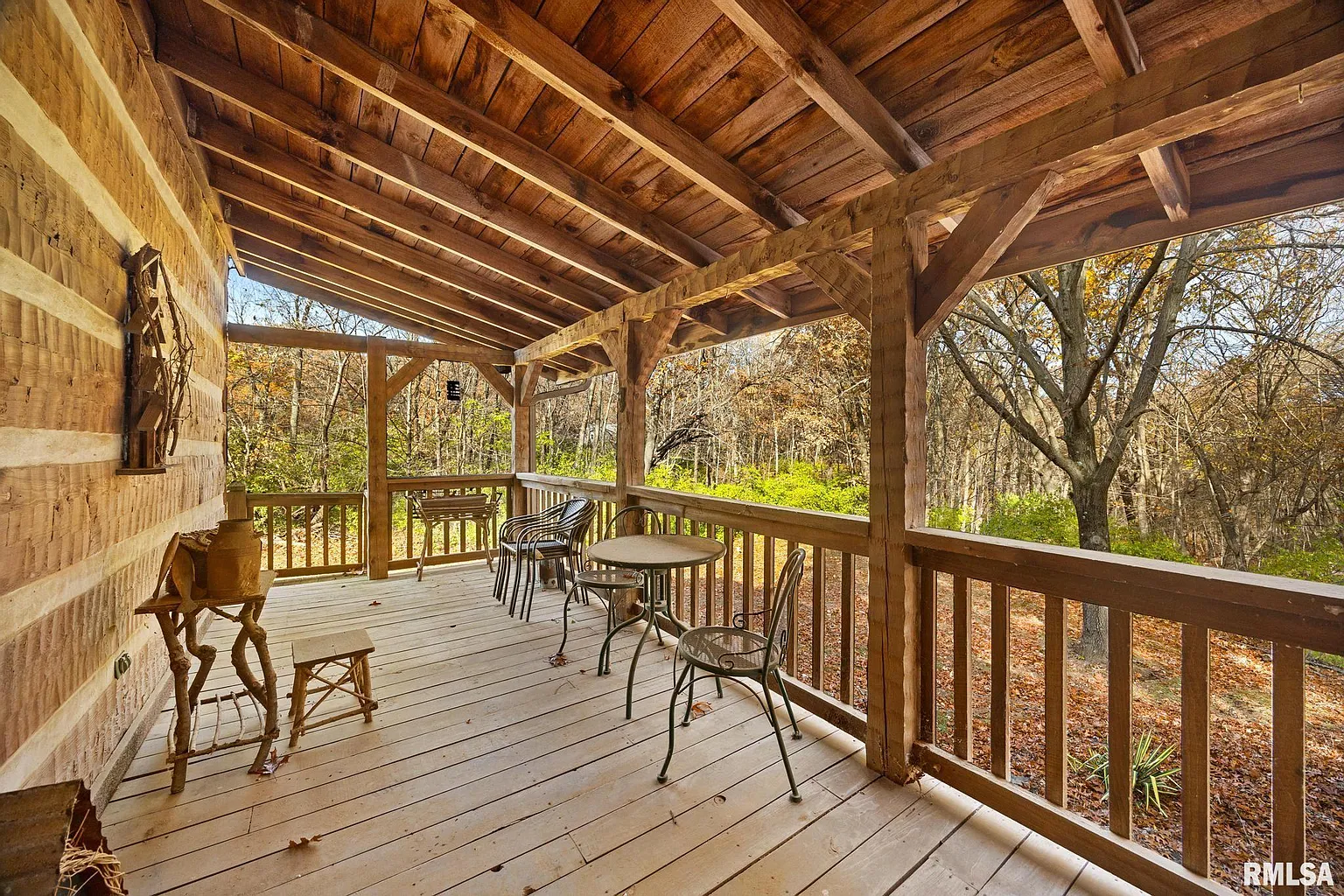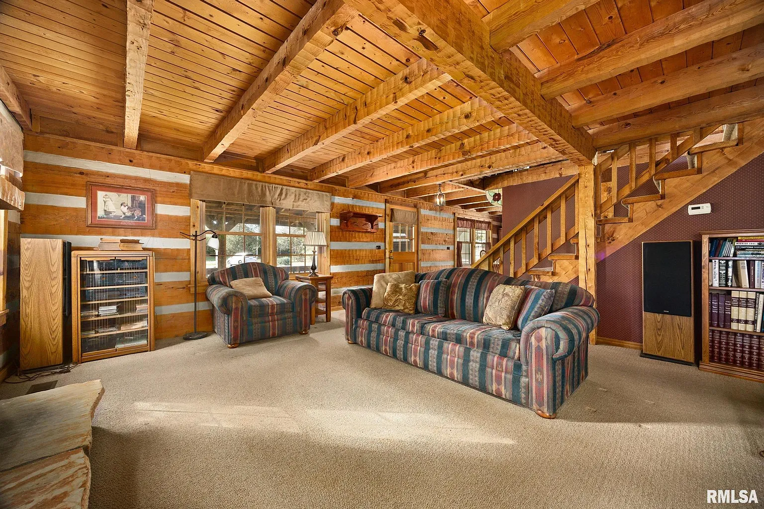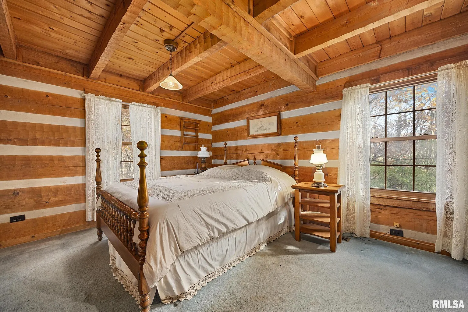 Nestled on 5 wooded acres on 438 Tazewood Road in Metamora, Illinois, this hand-crafted log cabin blends rustic character with everyday comfort, perfect for nature lovers, outdoor enthusiasts, investors, and adventure-seekers alike. Developed in 1988 with timeless craftsmanship, the home spans 1,986 square feet of warm wood tones, natural light, and thoughtful spaces. Inside, the main level features a cozy living room with exposed beams and a wood-burning fireplace, a spacious kitchen perfect for gatherings, and a comfortable bedroom. In addition, a mudroom adds convenience for outdoor seasons and daily life. The upper floor offers a generous 34’x25′ open loft offering endless possibilities for a guest area, studio, office, or a quiet retreat overlooking the living room, adding flexibility. The full unfinished basement provides additional storage space or room for future expansion. The home is equipped with propane forced-air heat, central air, and included appliances. Outside, the setting delivers everything people hope for in a private cabin escape. Mature trees surround the property, a porch offers a spot to watch wildlife drift through, and the level acreage makes the land easy to use. An oversized 2.5-car detached garage provides space for vehicles, tools, and hobbies, and an above-ground pool adds a fun touch for warm weather. Conveniently secluded yet within easy reach of town, this property offers a rare chance to own a true log-cabin retreat where comfort, history, beauty, and potential come together. Don’t miss the opportunity to make it yours – schedule your private showing now!