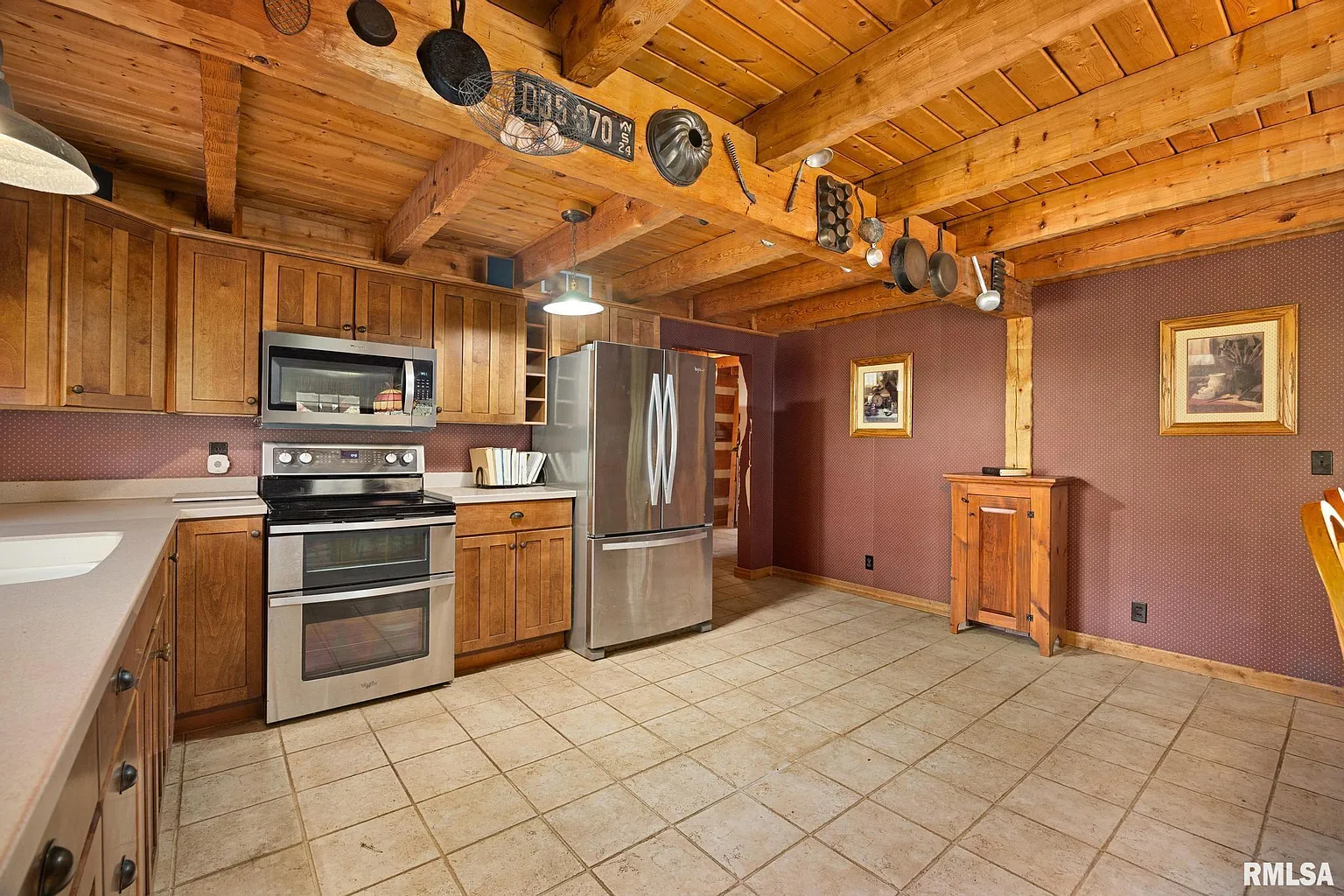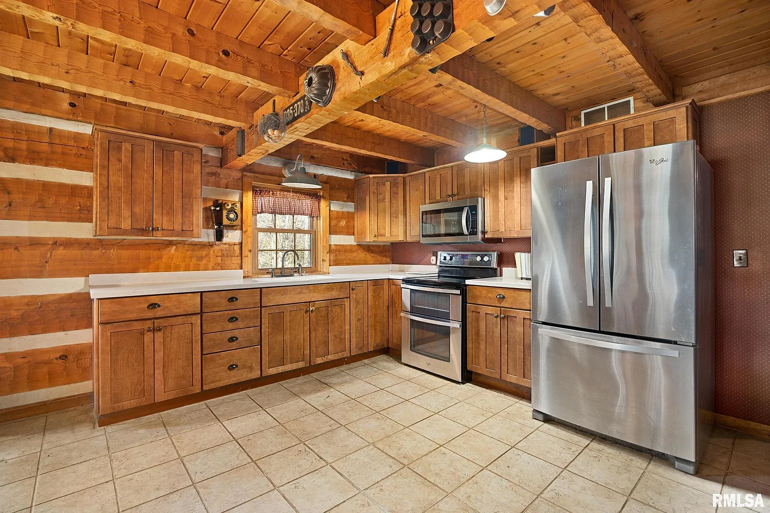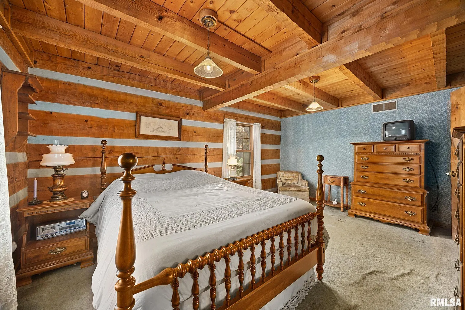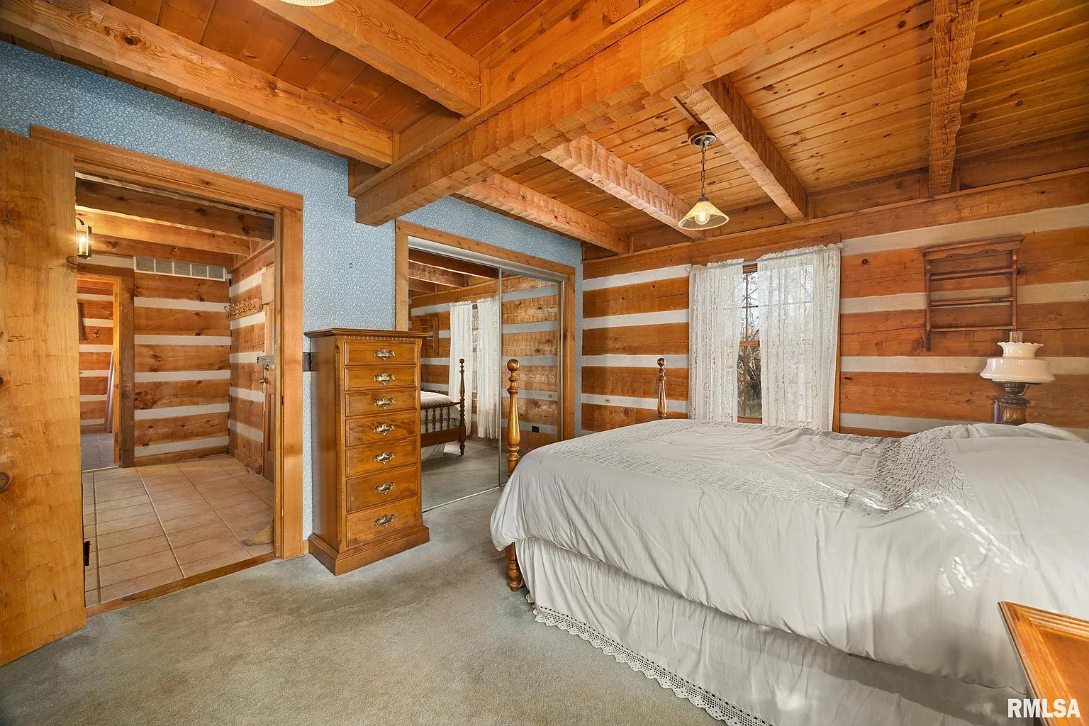 Nestled on 5 wooded acres on 438 Tazewood Road in Metamora, Illinois, this hand-crafted log cabin blends rustic character with everyday comfort, perfect for nature lovers, outdoor enthusiasts, investors, and adventure-seekers alike. Developed in 1988 with timeless craftsmanship, the home spans 1,986 square feet of warm wood tones, natural light, and thoughtful spaces. Inside, the main level features a cozy living room with exposed beams and a wood-burning fireplace, a spacious kitchen perfect for gatherings, and a comfortable bedroom. In addition, a mudroom adds convenience for outdoor seasons and daily life. The upper floor offers a generous 34’x25′ open loft offering endless possibilities for a guest area, studio, office, or a quiet retreat overlooking the living room, adding flexibility. The full unfinished basement provides additional storage space or room for future expansion. The home is equipped with propane forced-air heat, central air, and included appliances. Outside, the setting delivers everything people hope for in a private cabin escape. Mature trees surround the property, a porch offers a spot to watch wildlife drift through, and the level acreage makes the land easy to use. An oversized 2.5-car detached garage provides space for vehicles, tools, and hobbies, and an above-ground pool adds a fun touch for warm weather. Conveniently secluded yet within easy reach of town, this property offers a rare chance to own a true log-cabin retreat where comfort, history, beauty, and potential come together. Don’t miss the opportunity to make it yours – schedule your private showing now!